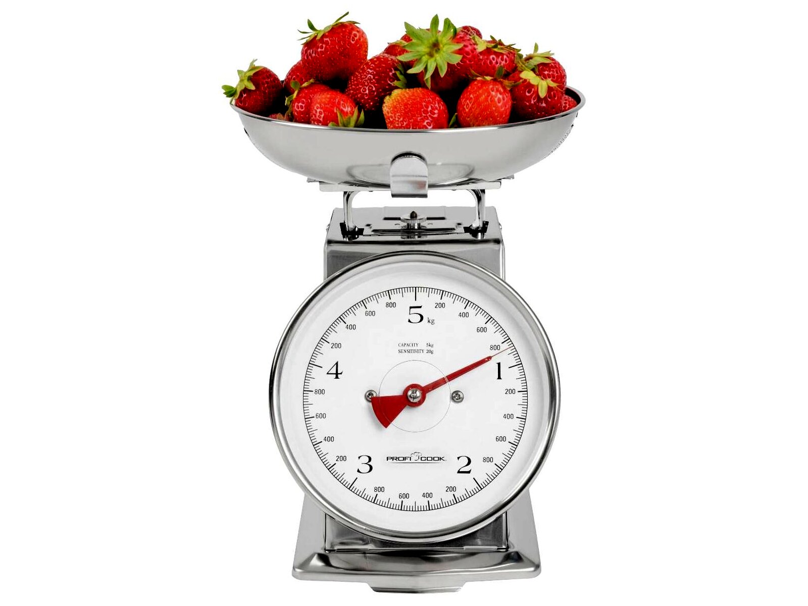 A Profi Cook PC-KW 1247 egy mechanikus, analóg konyhai mérleg rozsdamentes acél kivitelben, retro megjelenéssel. Ételek és hozzávalók pontos kimérésére készült, kivehető mérőtállal és tára funkcióval, így több összetevő egymás utáni mérését is megkönnyíti.