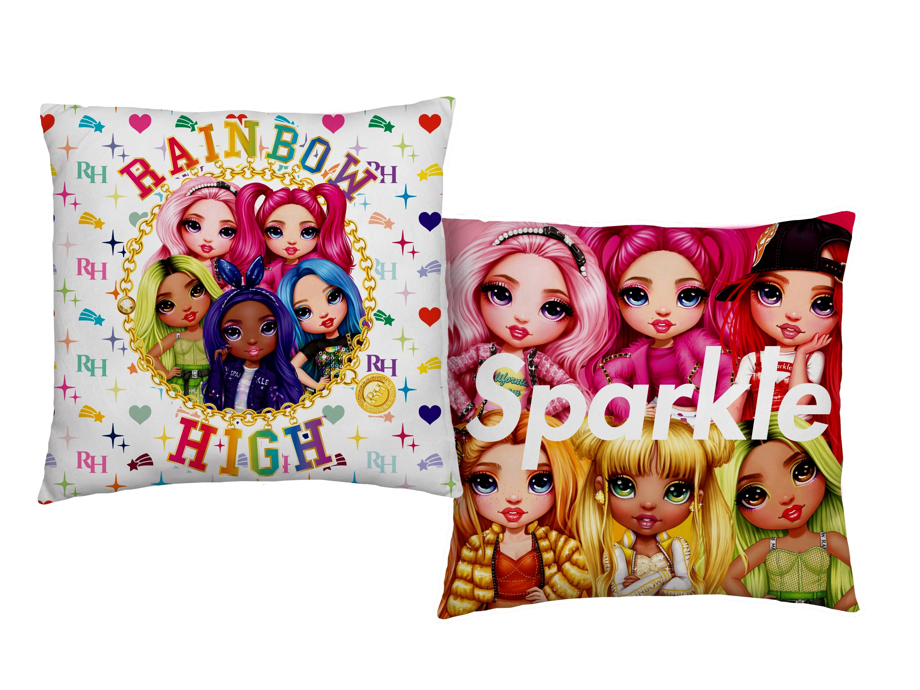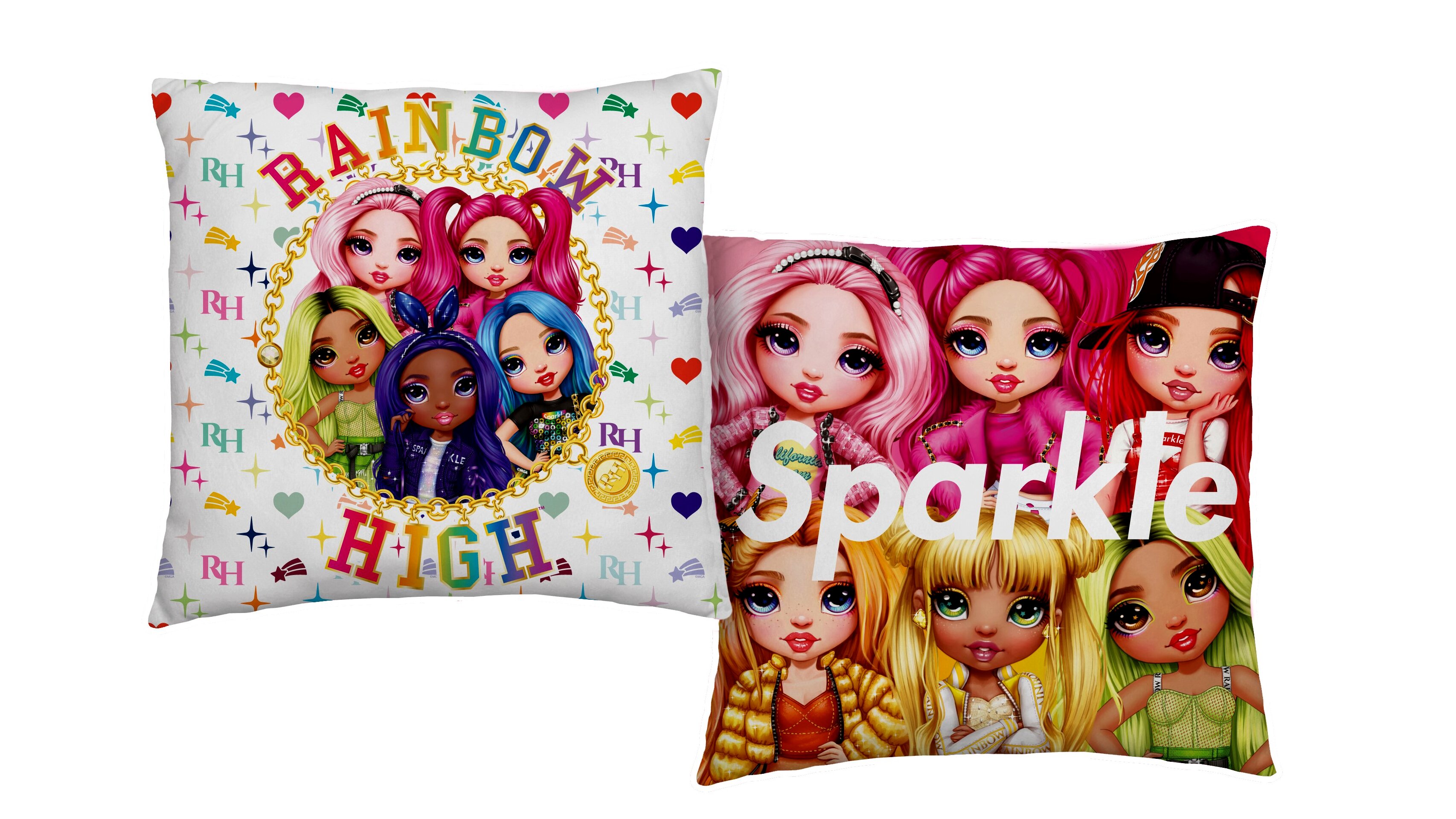 Igazi csajos díszpárna a Netflix egyik népszerű animációs műsora, a Rainbow High sorozat rajongóinak.