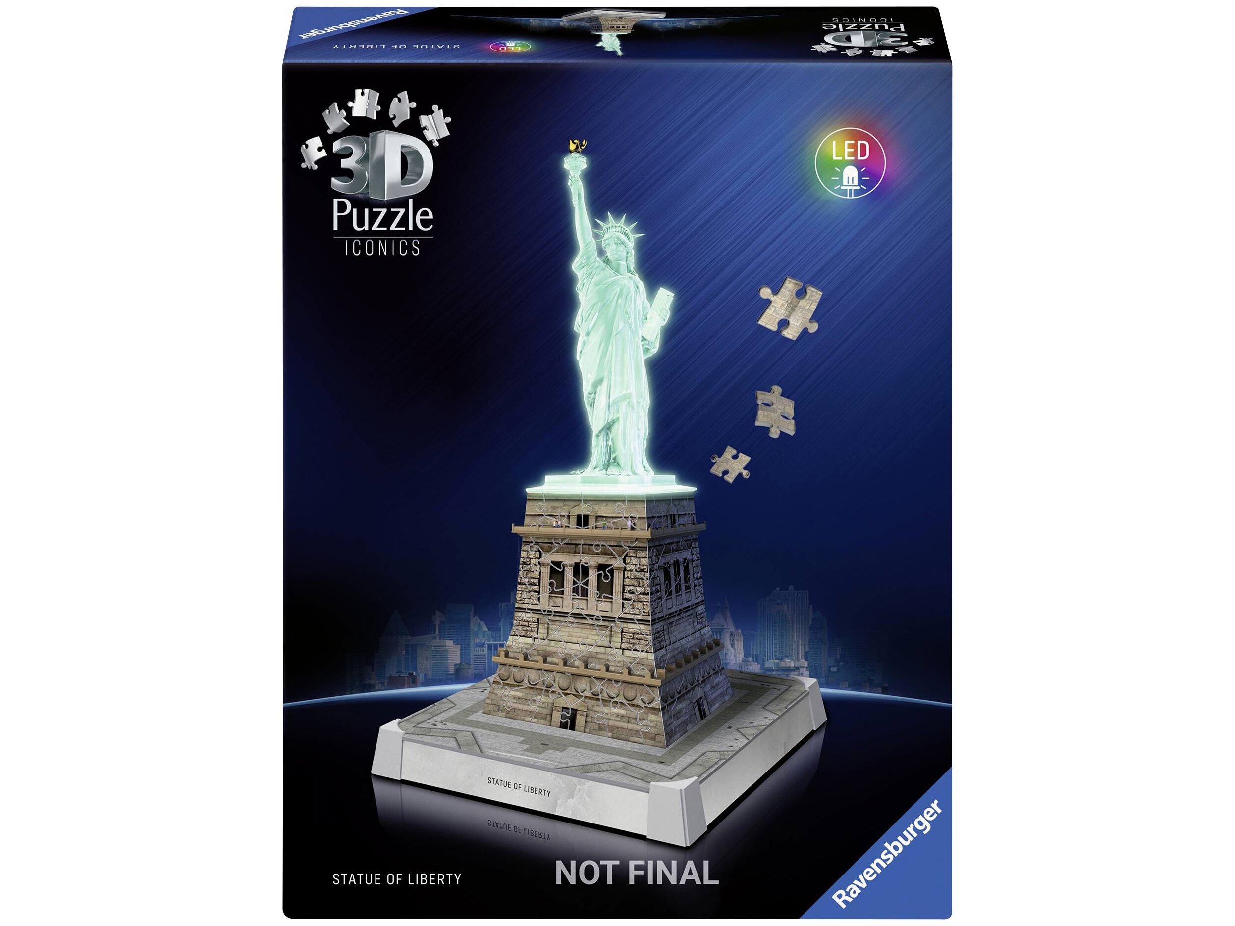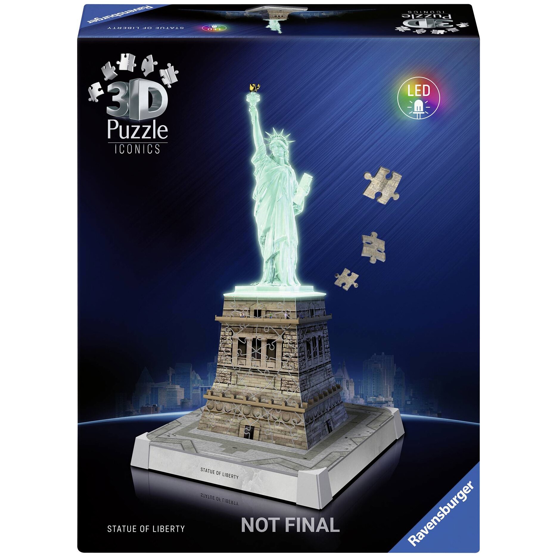 Ravensburger 3D Puzzle Iconics: Szabadság-szobor LED-del, 108 darabos