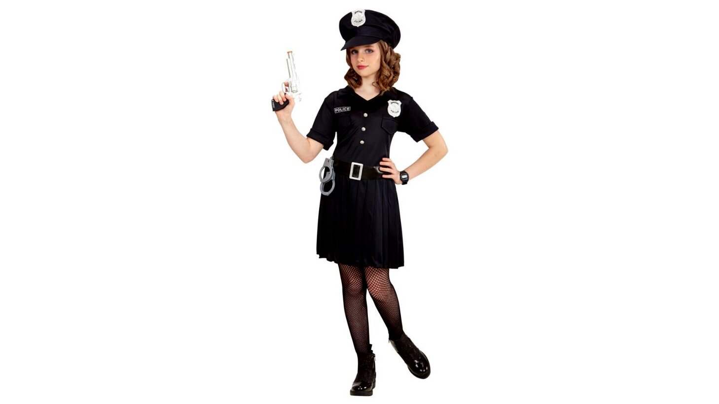 A jelmez klasszikus, mégis csajos megjelenésű: a fekete színű ruha mellett a szett tartalmaz egy övet és egy rendőrsapkát is, amelyek tovább fokozzák a hiteles megjelenést. Kényelmes szabásának köszönhetően ideális egész estés viselethez is.