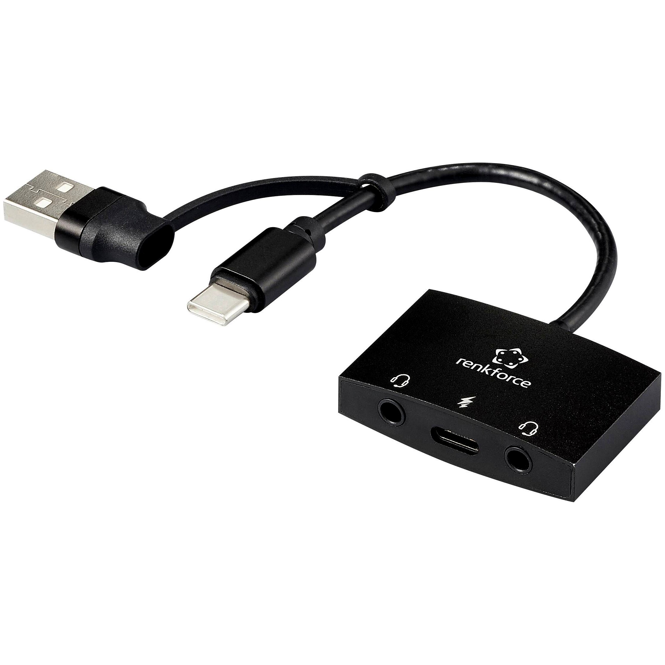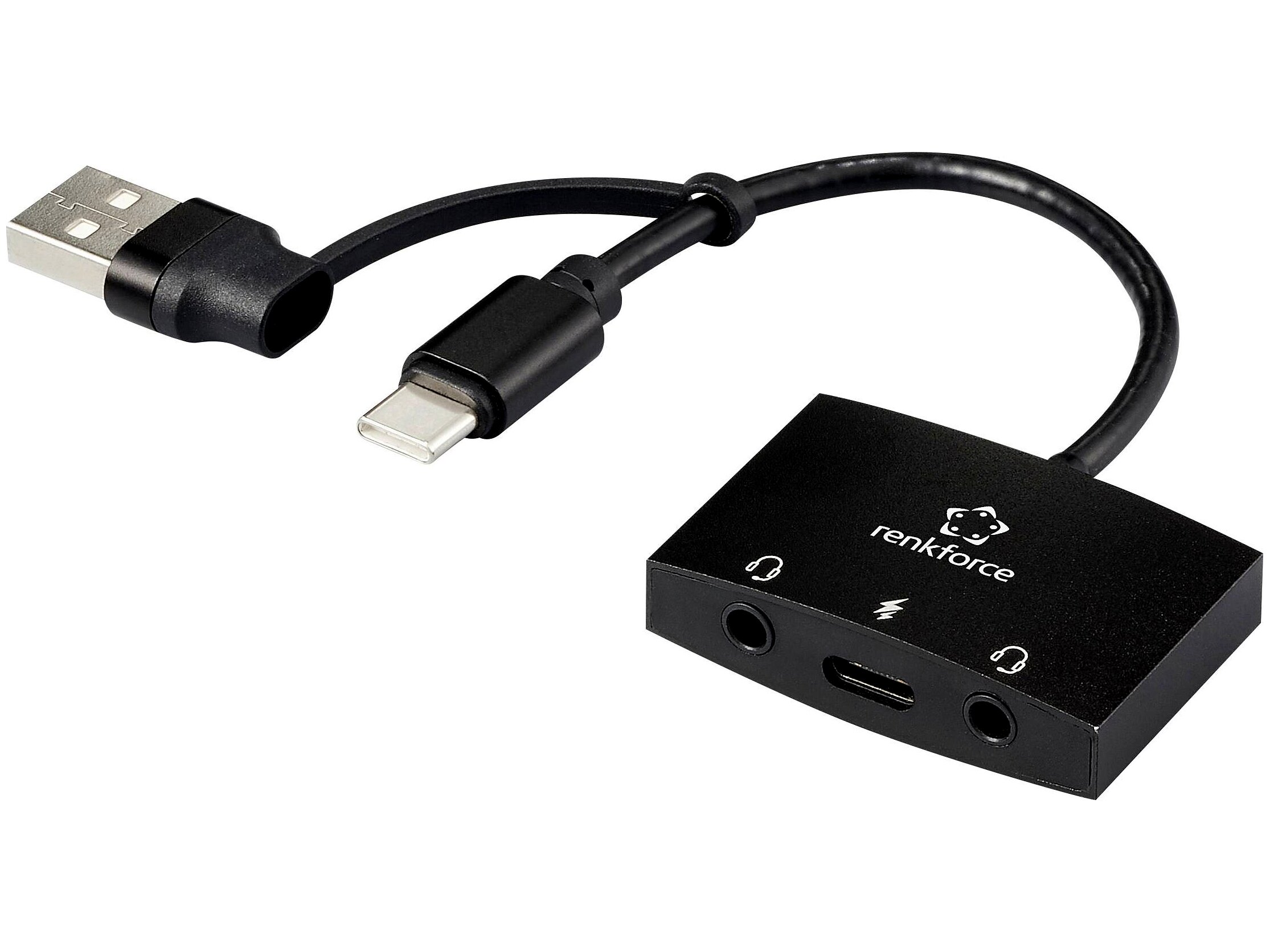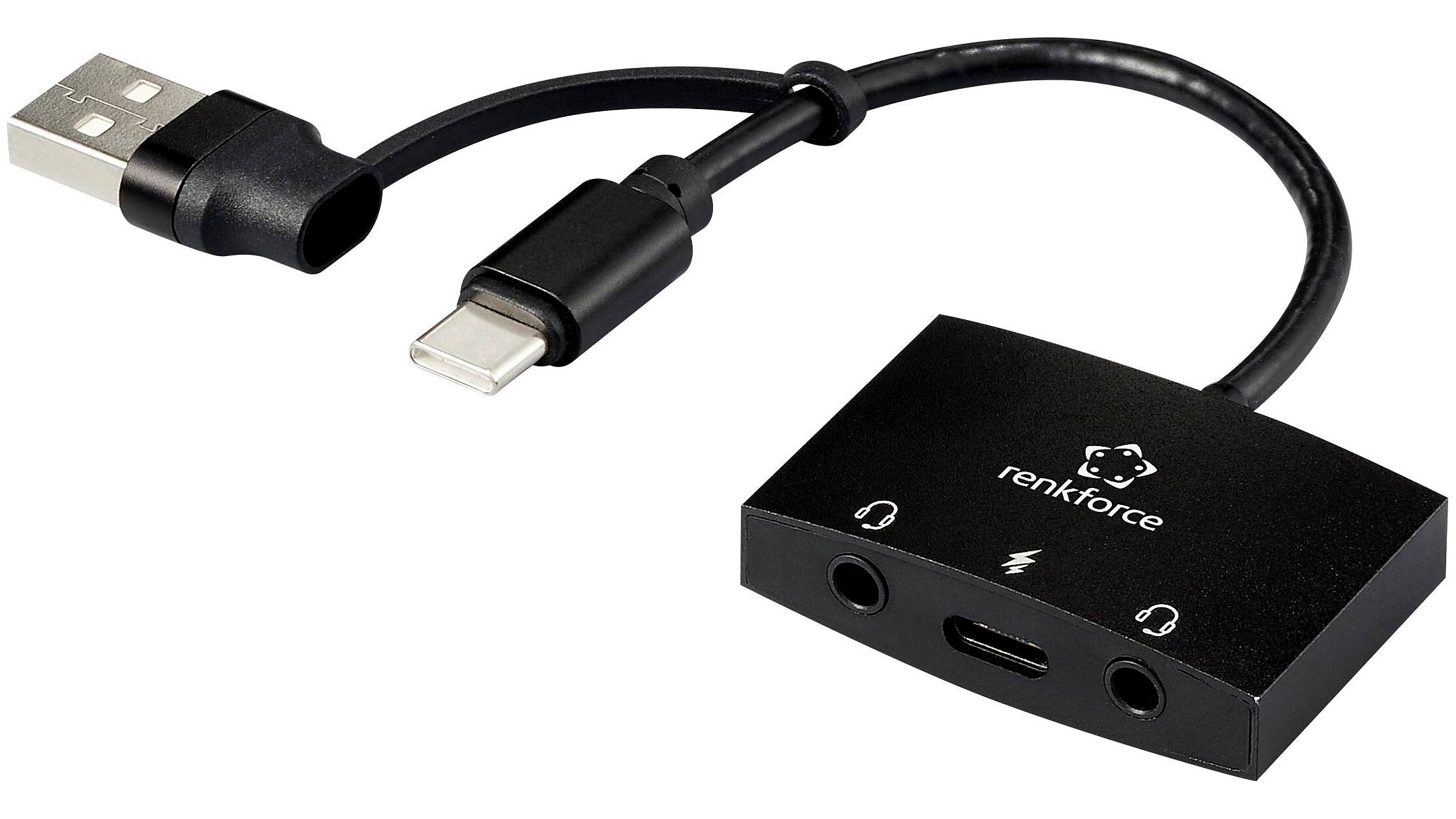 Renkforce RF-AA-200 USB Type-C® és Type-A audio adapter töltési funkcióval, alumínium, fekete