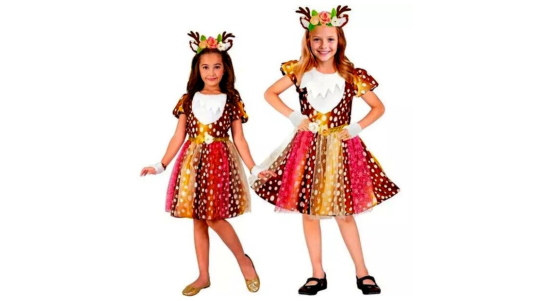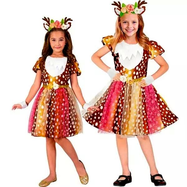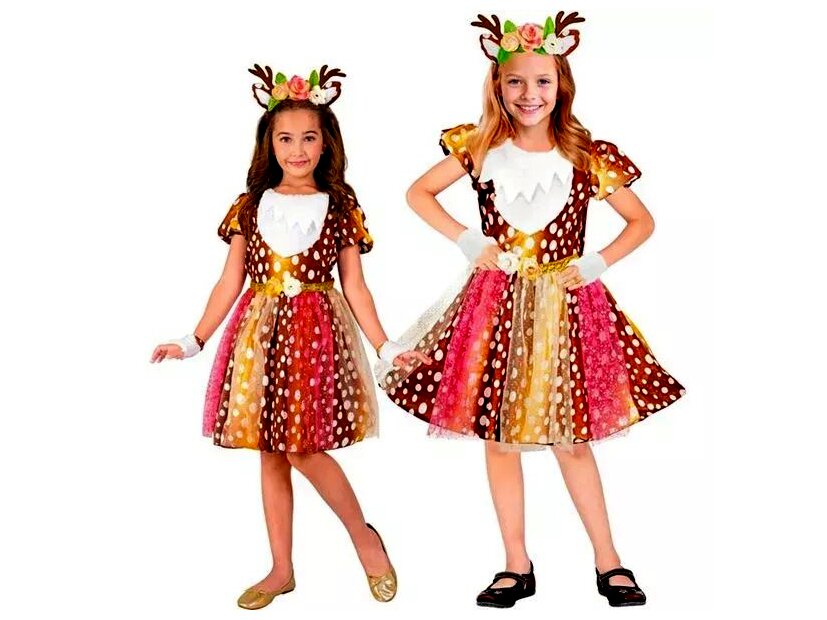 Ez az őzike jelmez tökéletes választás a kreatív játékhoz, jelmezbálokhoz vagy ünnepi alkalmakhoz. A színes, pöttyös dizájn és az elegáns tüll szoknyarész varázslatos, természetközeli hangulatot kölcsönöz a viselőjének. A rugalmas anyag és a gondosan összeválogatott kiegészítők biztosítják, hogy a megjelenés egyszerre legyen fenséges és kényelmes az egész esemény alatt.