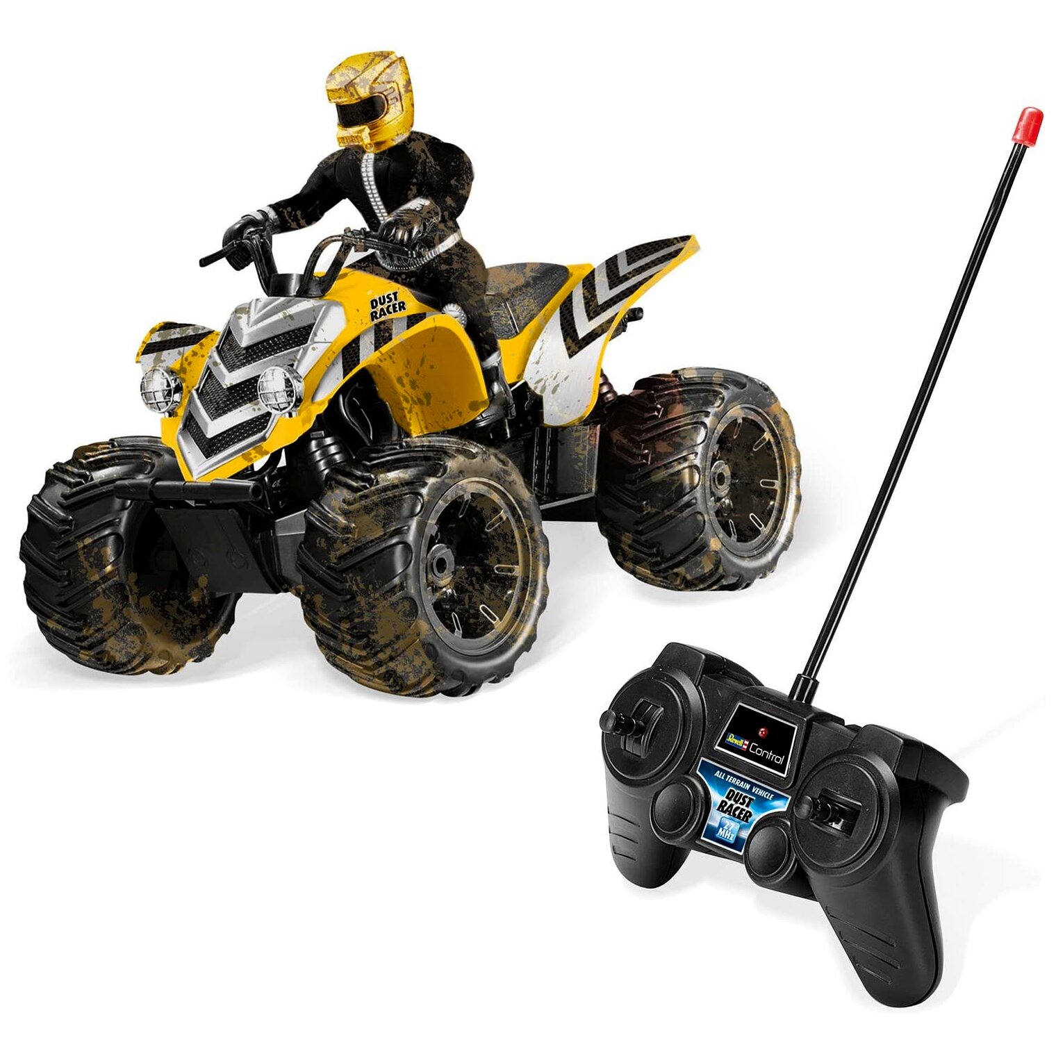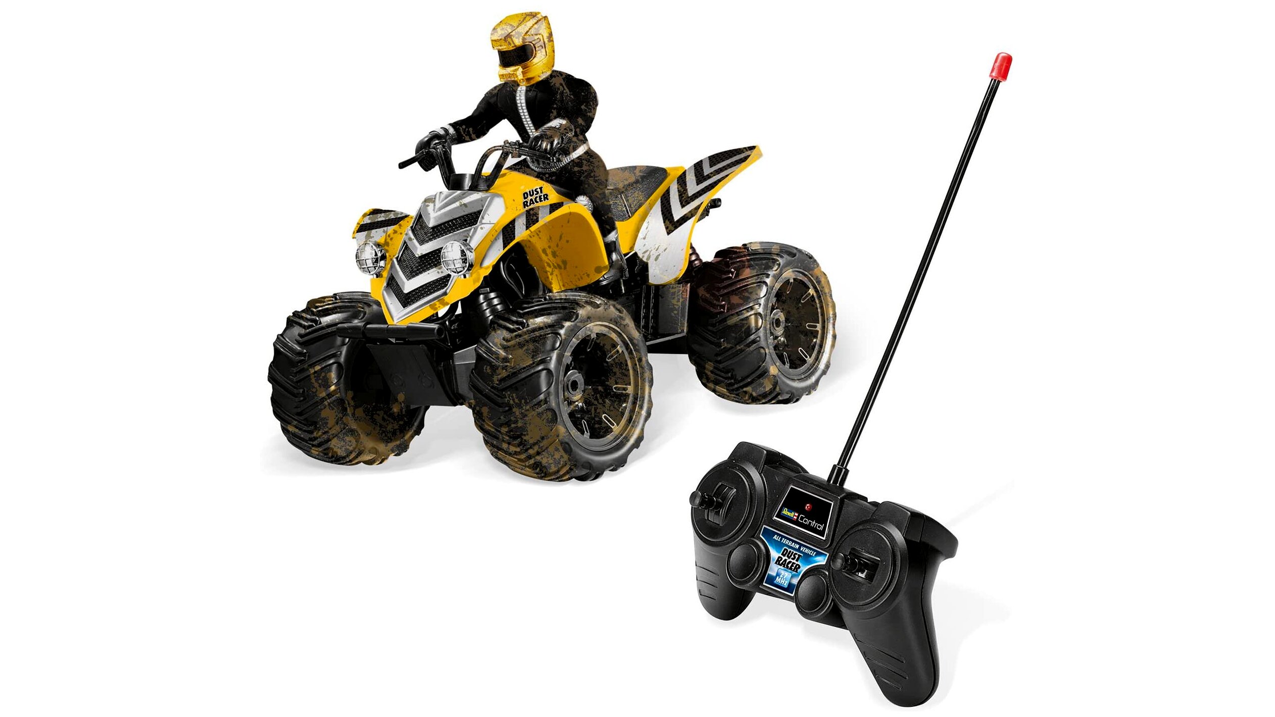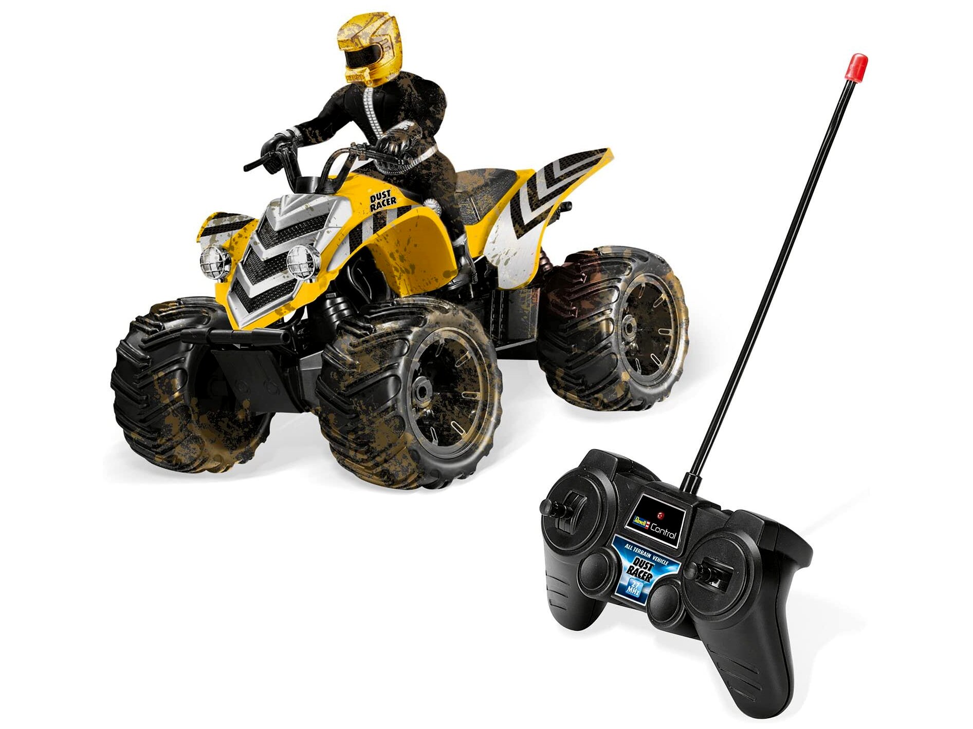 - Az 1:10 arányú race quad nagy abroncsokkal, rugós első kerekekkel, nagy teljesítményű elektromotorral és 2 csatornás 27 MHz-es távirányítóval rendelkezik és nagyon jól fekszi az utat, emellett egyszerűen kezelhető minden helyzetben
