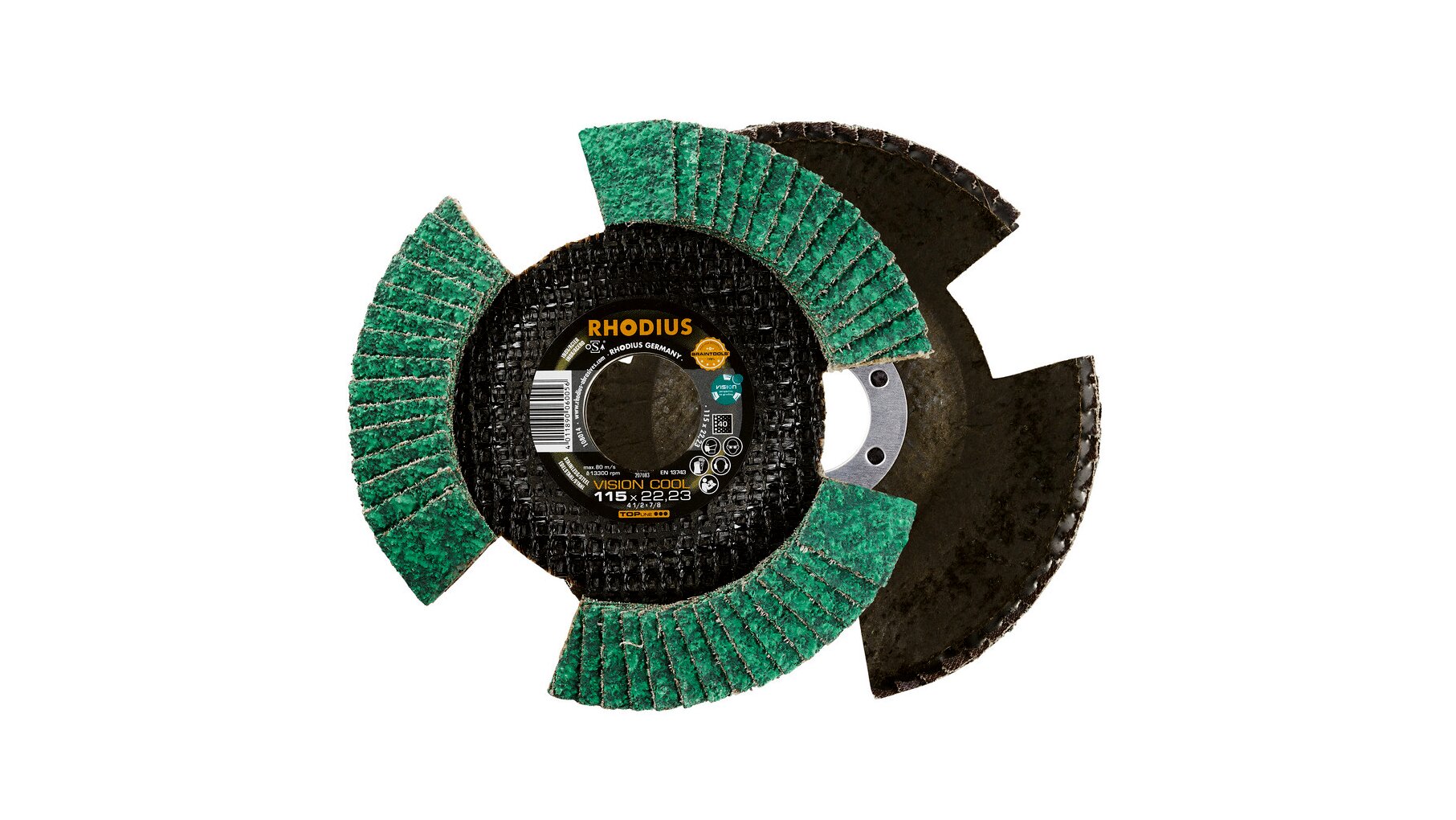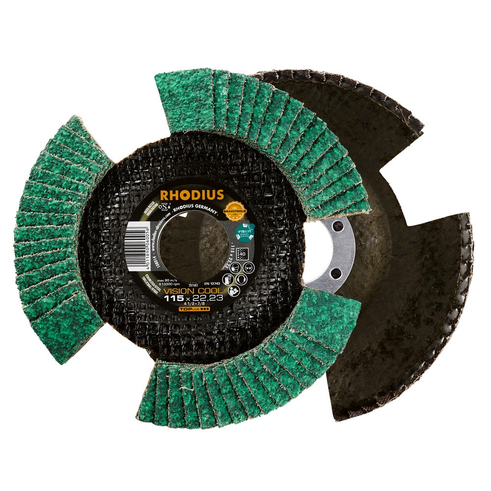 Lamellás csiszolótárcsa cirkonnal. Három nyílásának köszönhetően a VISION COOL forgásakor állátszóvá válik. Lehetővé teszi a munka eredményének folyamatos ellenőrzését.