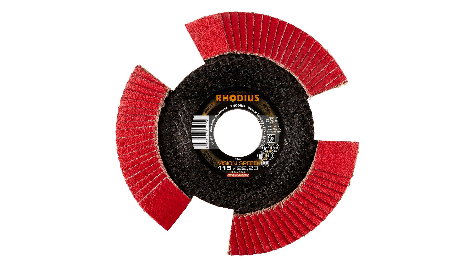 Nyílásainak köszönhetően a VISION SPEED forgásakor állátszóvá válik. Szabad rálátást biztosít a munkadarabra, így a használó látja hogy mennyit és hol csiszol. Ez lehetővé teszi a munka eredményének a gép lerakása nélkül történő folyamatos ellenőrzését: Ezáltal célirányosan lehet szabályozni az anyagleválasztást és csökkenthető a vékony karosszériaelemeken a költséges megmunkálási hibák kockázata. A hűtőhatás jelentősen csökkenti az elszíneződések kockázatát. Üvegszálas hordozó, kerámiaszemcsék.