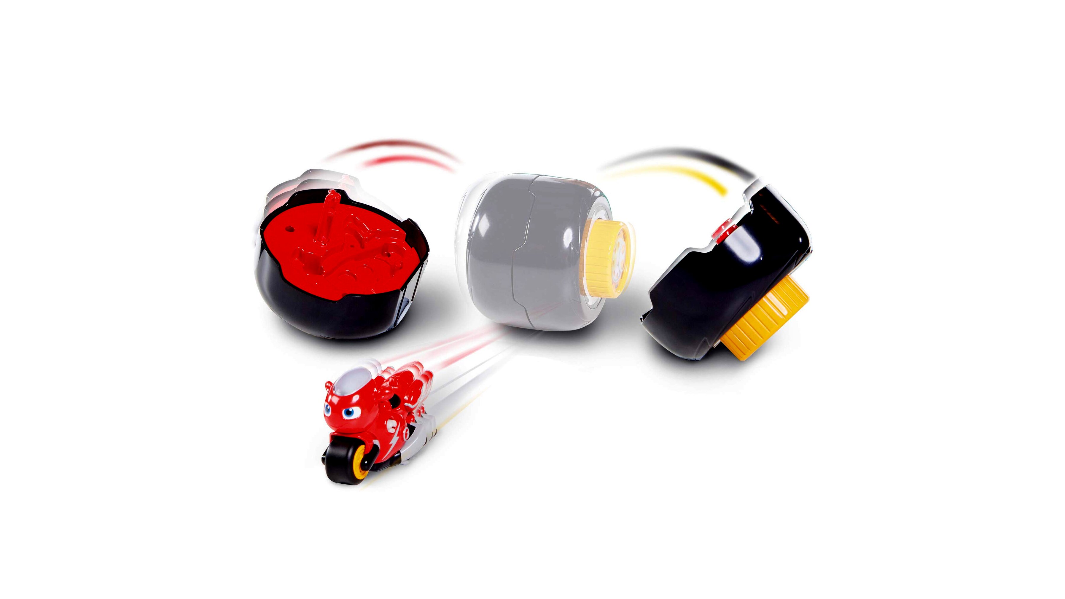 A száguldás élményét egy felhúzható, tekerhető kerék kilövő biztosítja, így még valósághűbb lesz motorozás élménye.