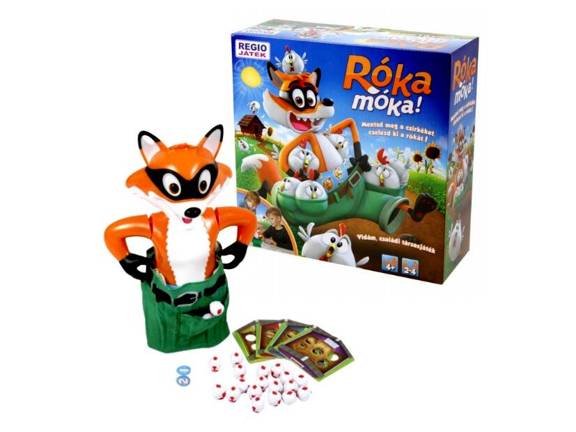 A Róka móka társasjáték egy vidám családi játék, amelyben a ravasz róka épp a csirkékkel igyekszik meglógni a farmról. Vajon sikerül megmenteni a csirkéket, vagy a róka koma jól lakik ma?