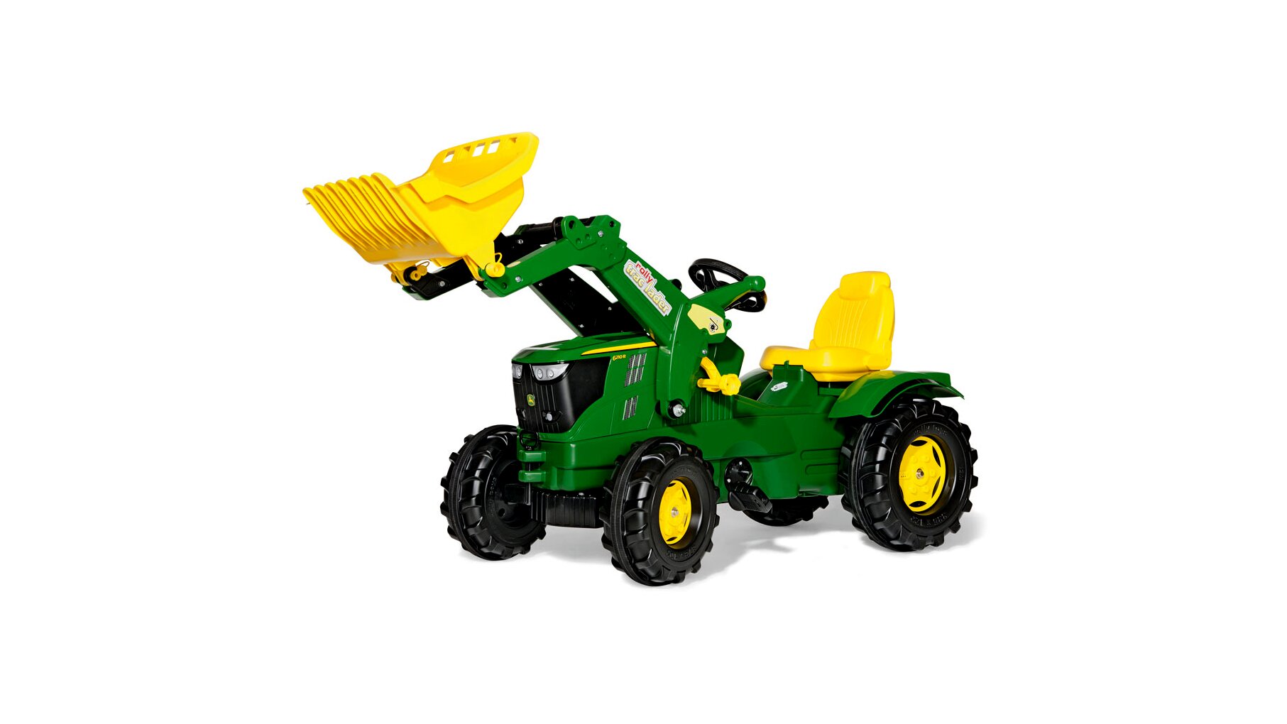 - Kiváló minőségű, Rolly FarmTrac John Deere 6210 R márkájú pedálos traktor, markolóval