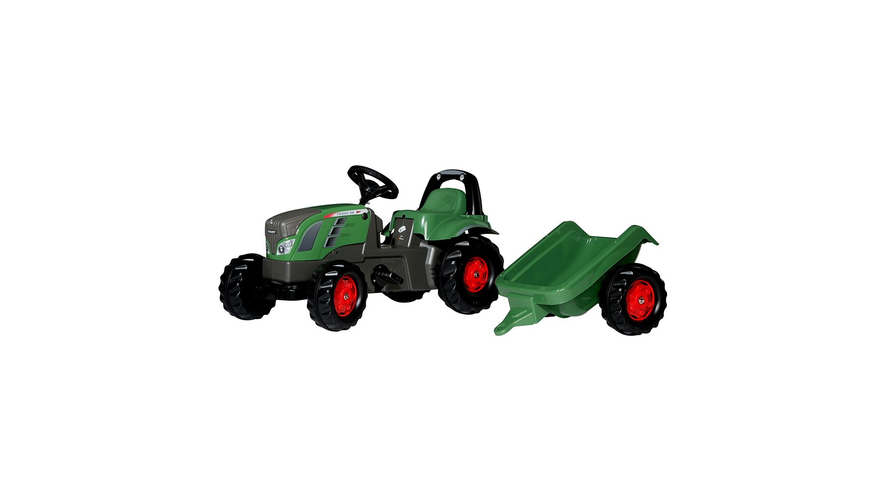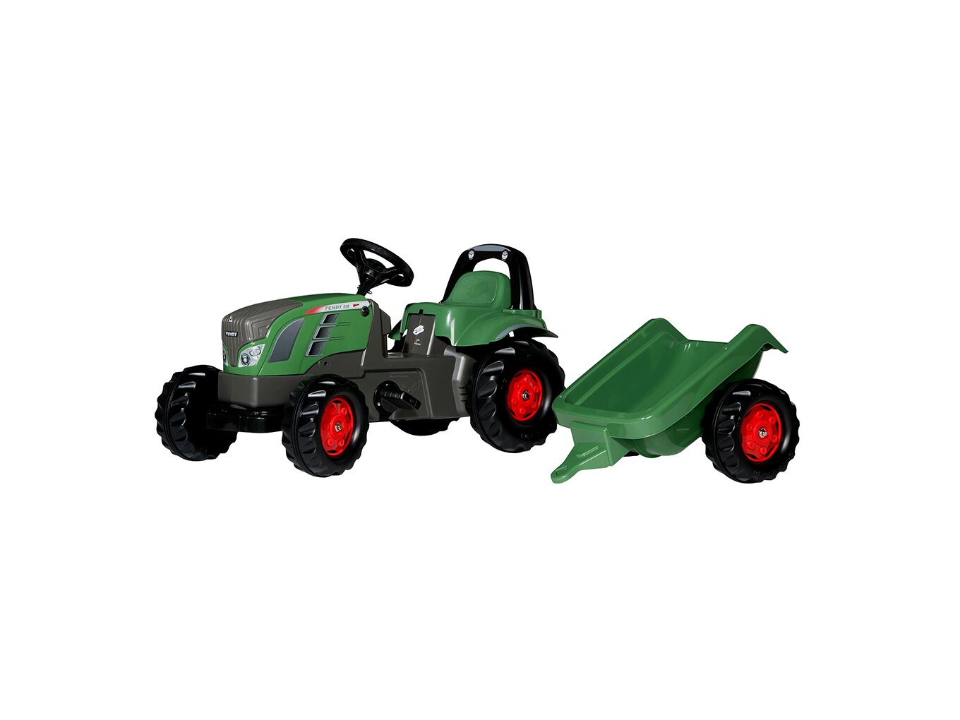 Kiváló minőségű, Rolly Kid Fendt 516 Vario márkájú pedálos markolós traktor utánfutóval.