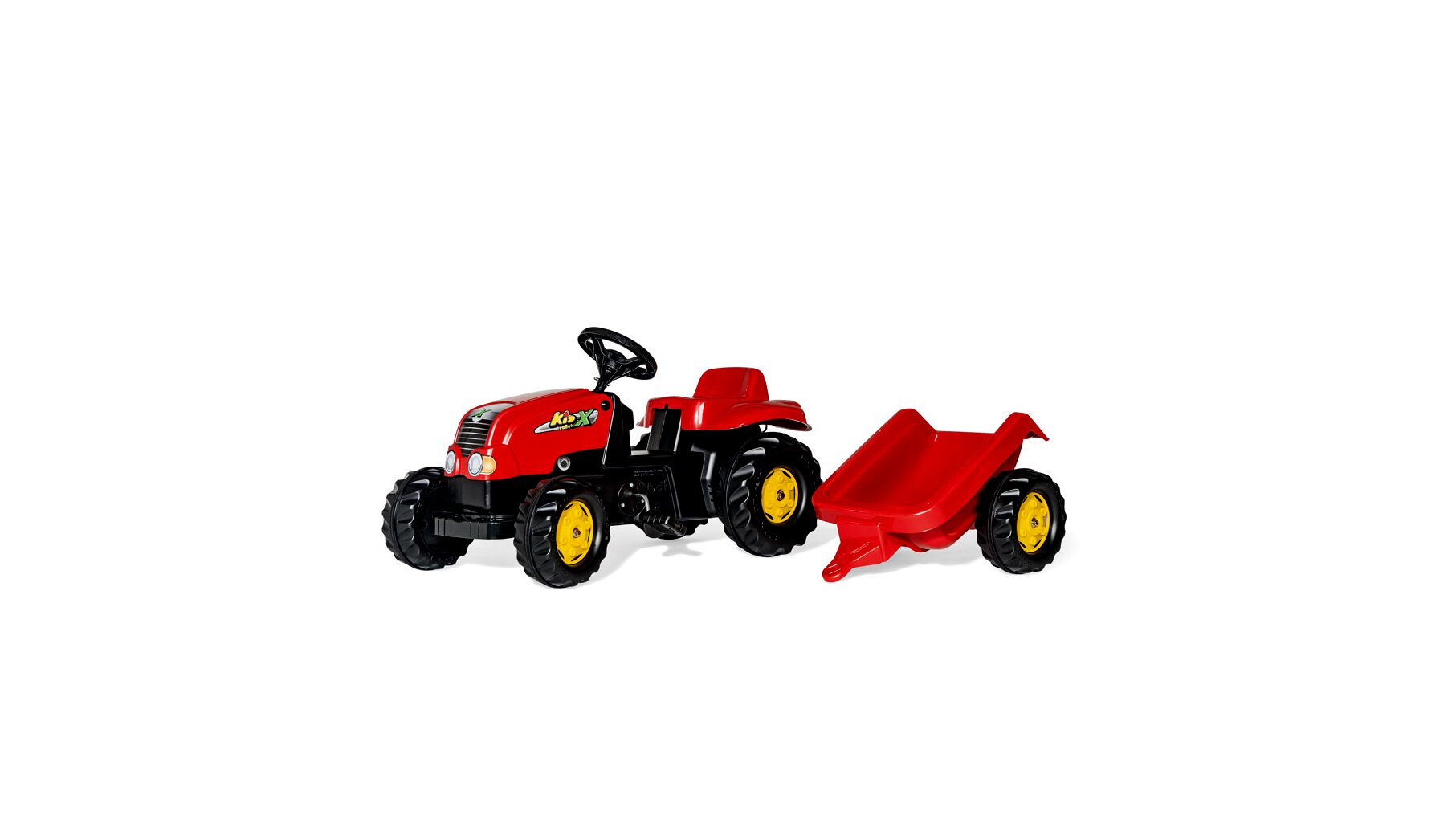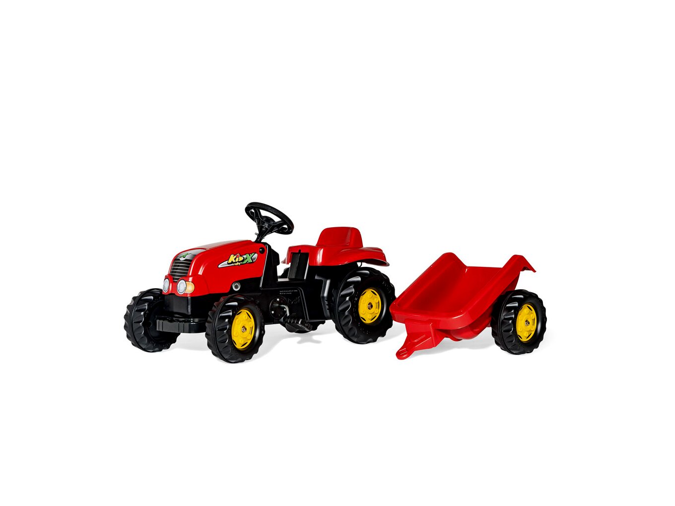 Rolly Kid-X pedálos traktor utánfutóval. A traktor láncszerkezete rejtett így biztonságosan használható.