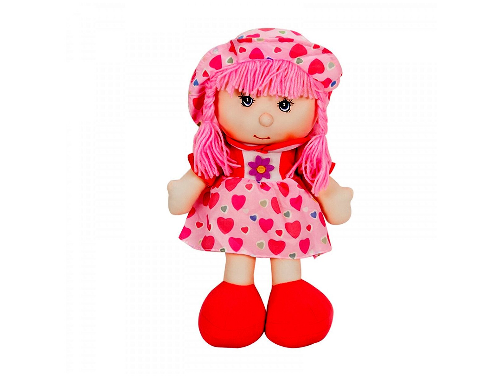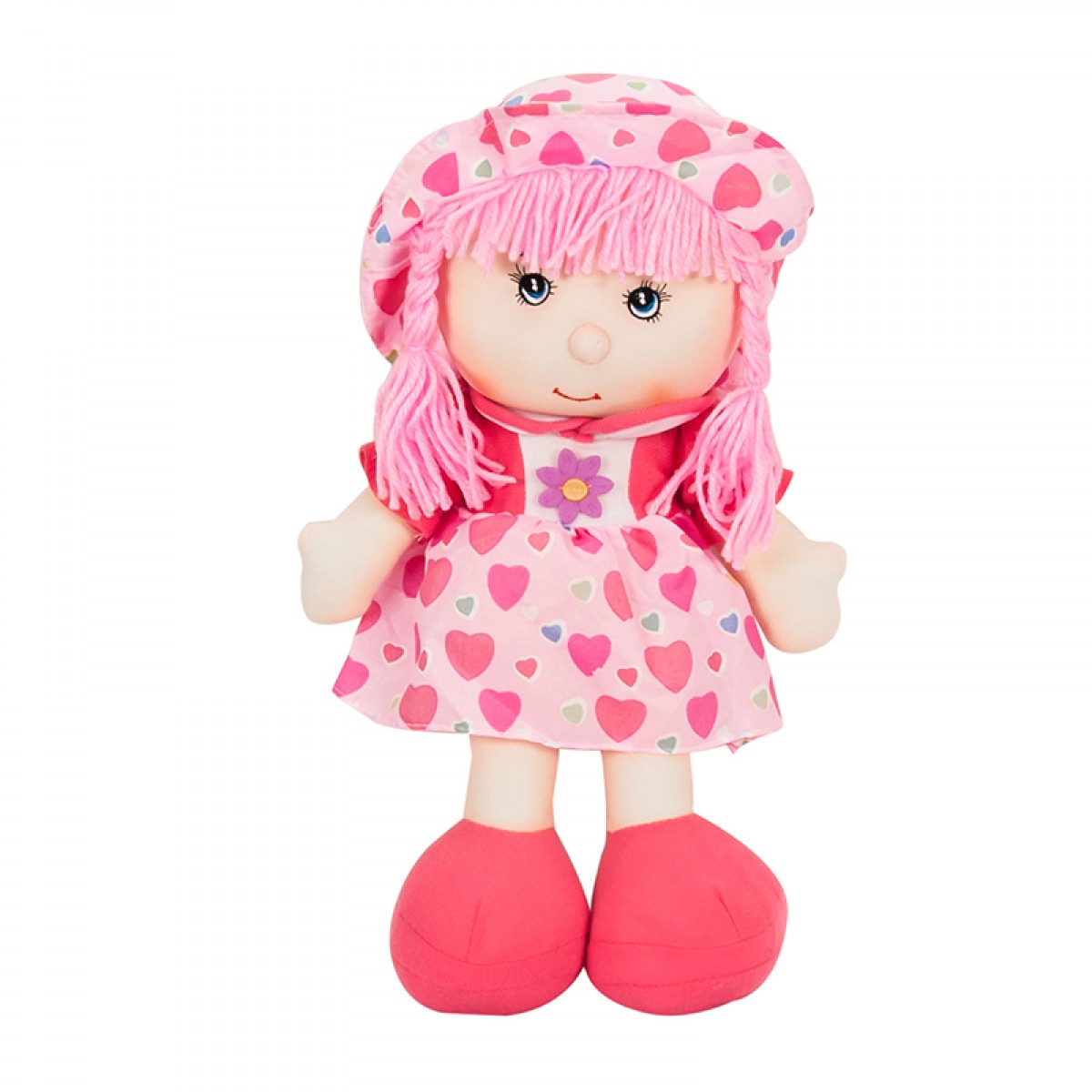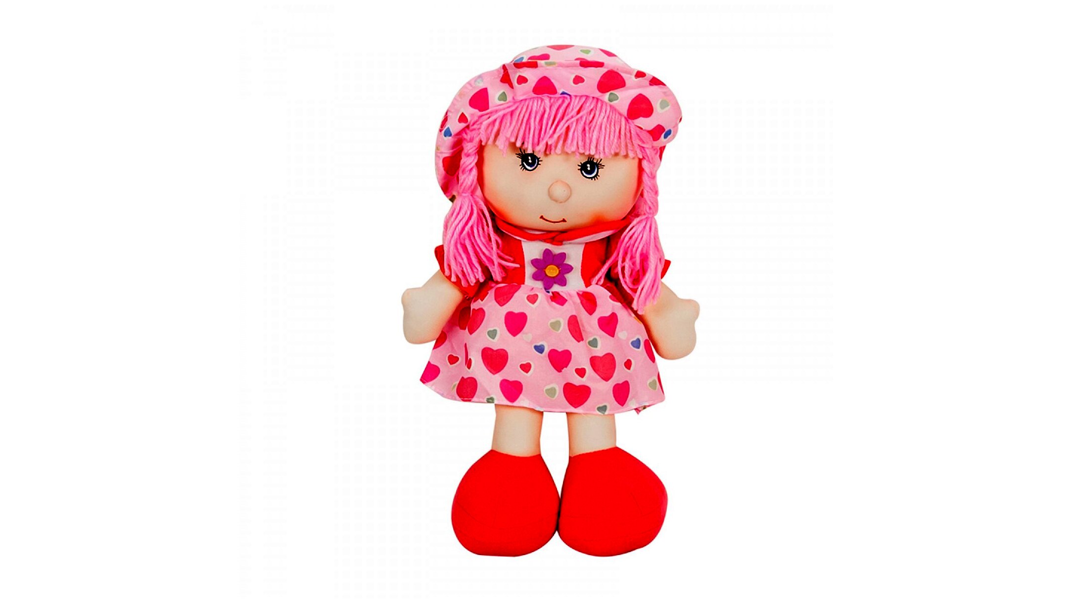 Ez a kedves arcú, rózsaszín szívecskékkel mintázott ruhájú, fonalhajú rongybaba, puha és ölelni való teste miatt hamar a kislányok kedvence lesz.