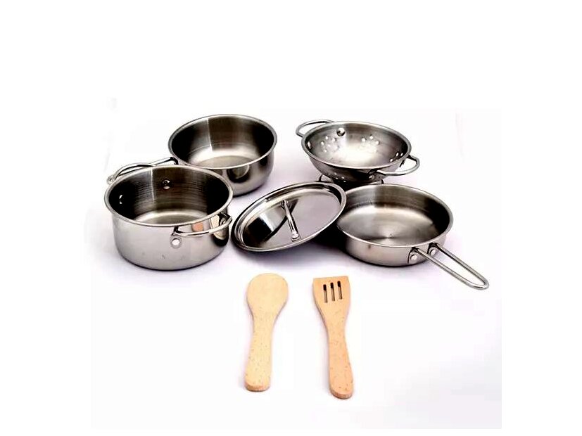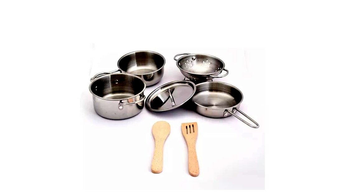 Ha megvan a gasztronómiai vágy, akkor szükség lesz egy edénykészletre is. Ezzel a szettel a kis kukták ínycsiklandó falatokat főzhetnek, és akár egy családi vacsorát is tarthatnak. A szerepjátékhoz még talán konyhára sincs szükség, hiszen a szórakozásnak csak a képzelet szab határt. A készletben található fémedények mellett 2 darab fakanál is megtalálható.A játék lehetőséget teremt a szerepjátékra, amely során fejlődik a gyerekek képzelete, fantáziája, kreativitása és kommunikációja.