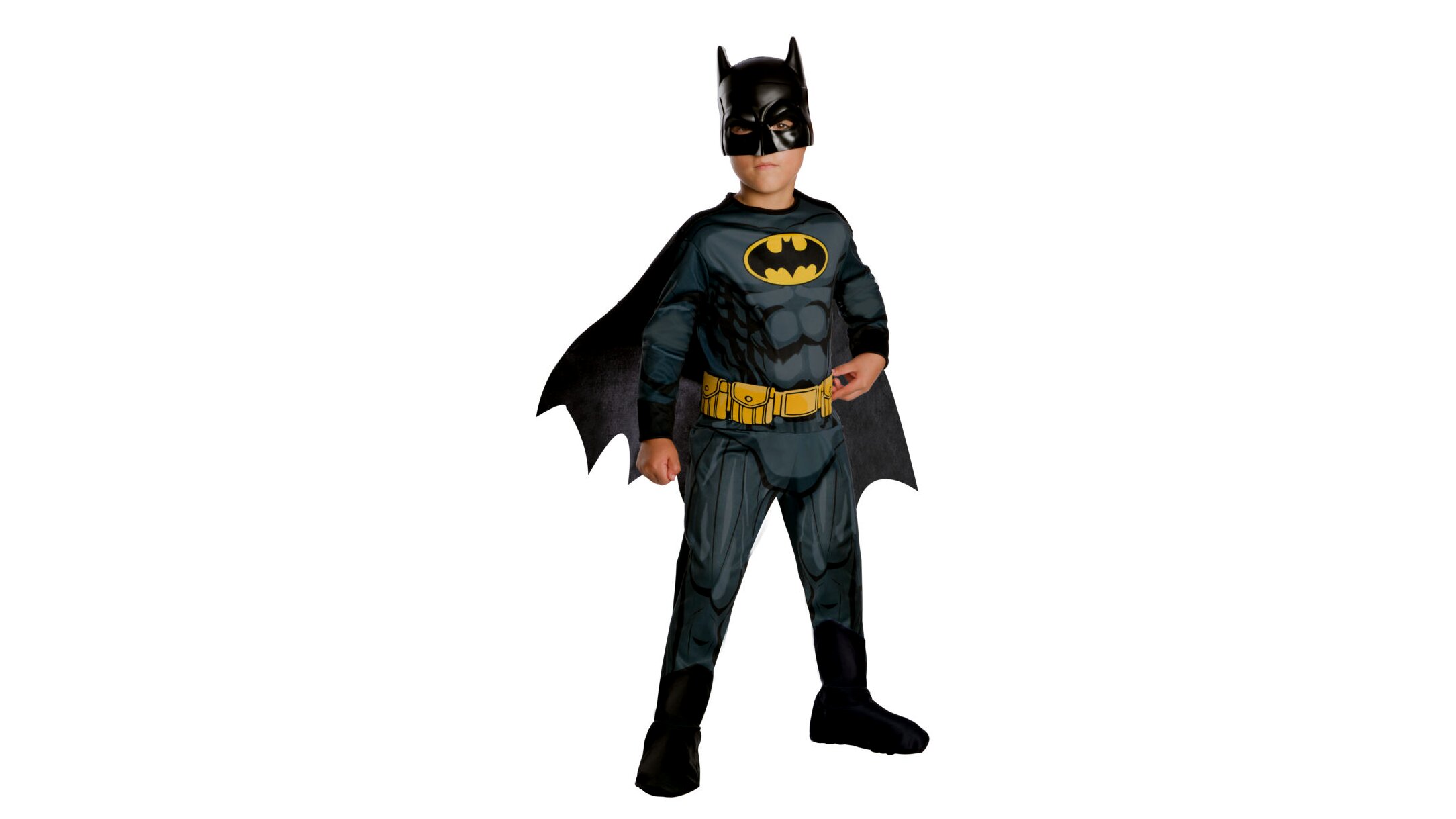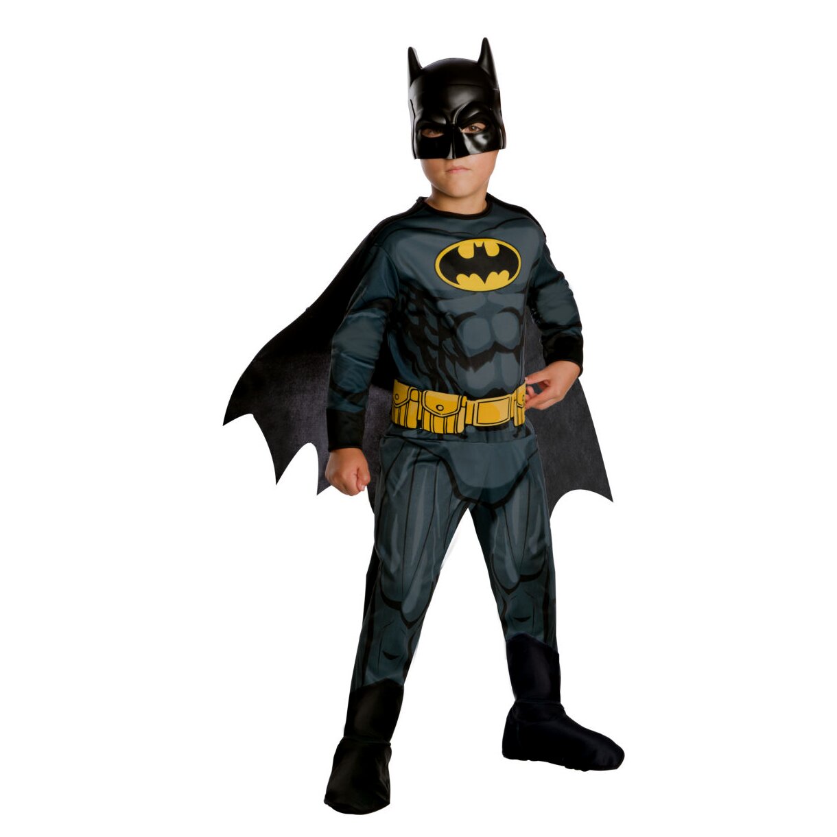 Batman kis rajongói garantáltan szívesen viselik majd a beöltözős bulin ezt a kiváló minőségű Batman jelmezt. A szett az igényesen kidolgozott, nyomtatott mintával díszített jelmez mellett egy sárga, szintén nyomtatott övet, csizmahuzatot, köpenyt, valamint egy rugalmas gumival rögzíthető maszkot is tartalmaz, hogy teljes legyen a szett. A jelmez jó választás farsangi mulatságra, Halloweenre, beöltözős buliba vagy egy mókás, játszós délutánra.A jelmez 8-10 éves gyerekek számára ideális.