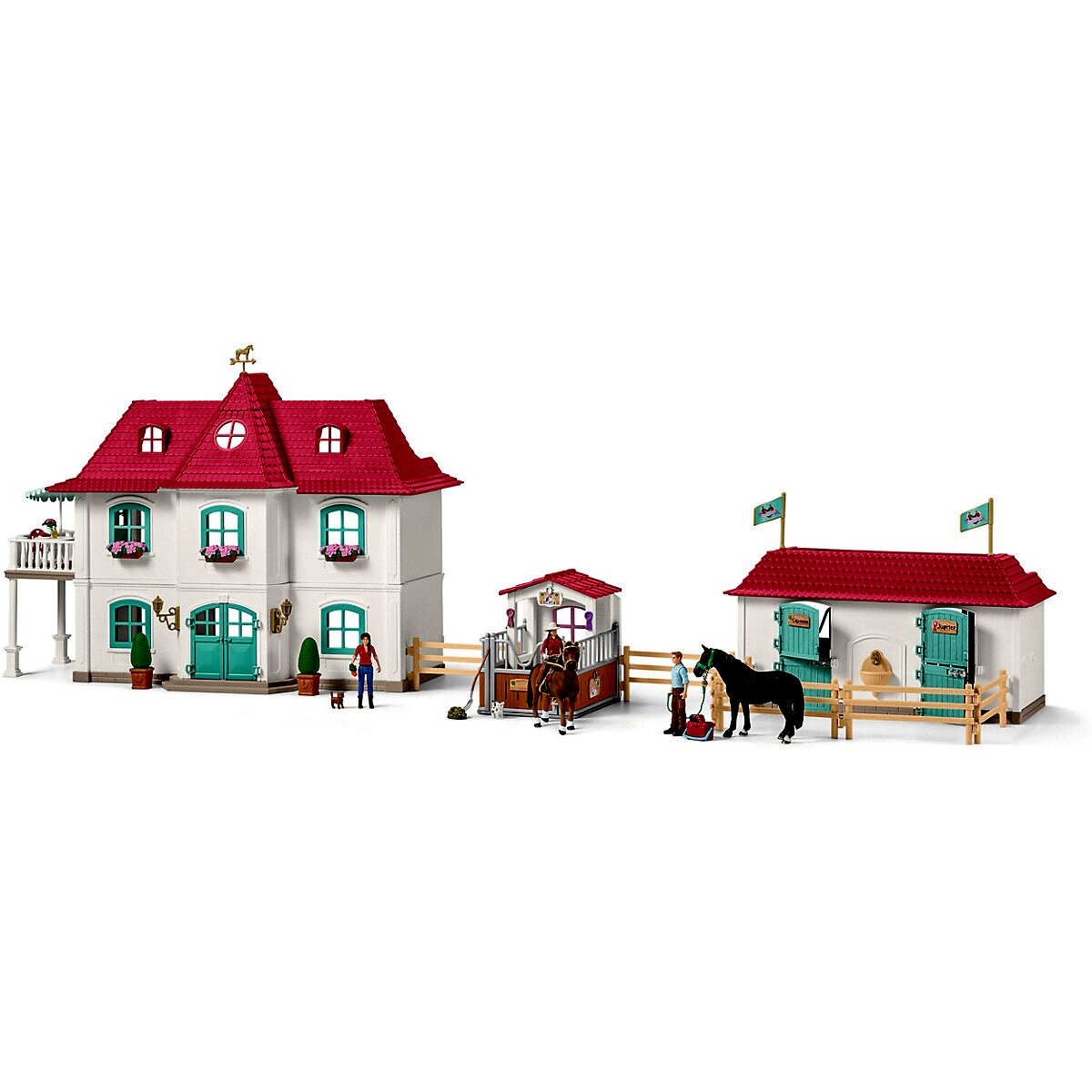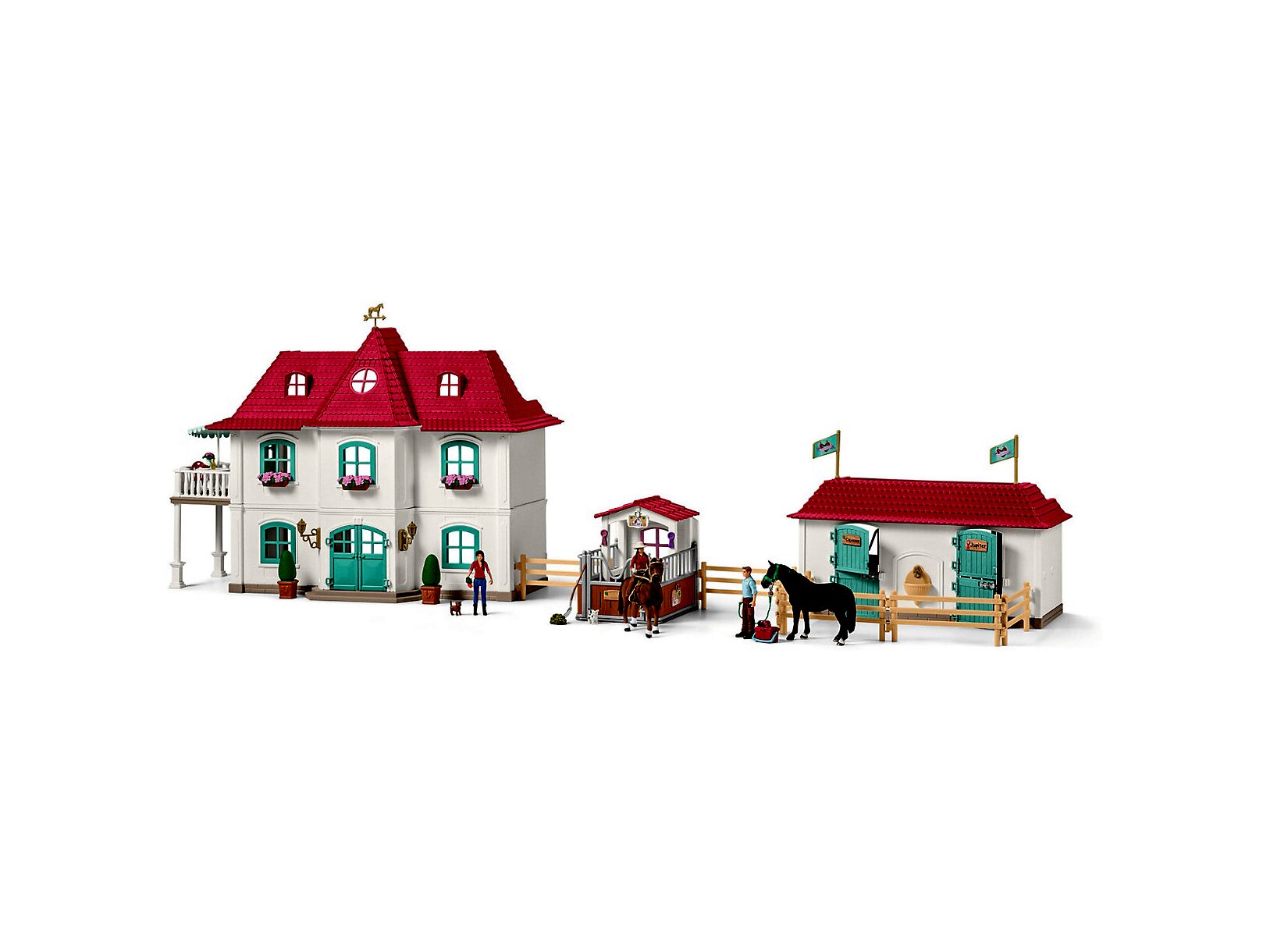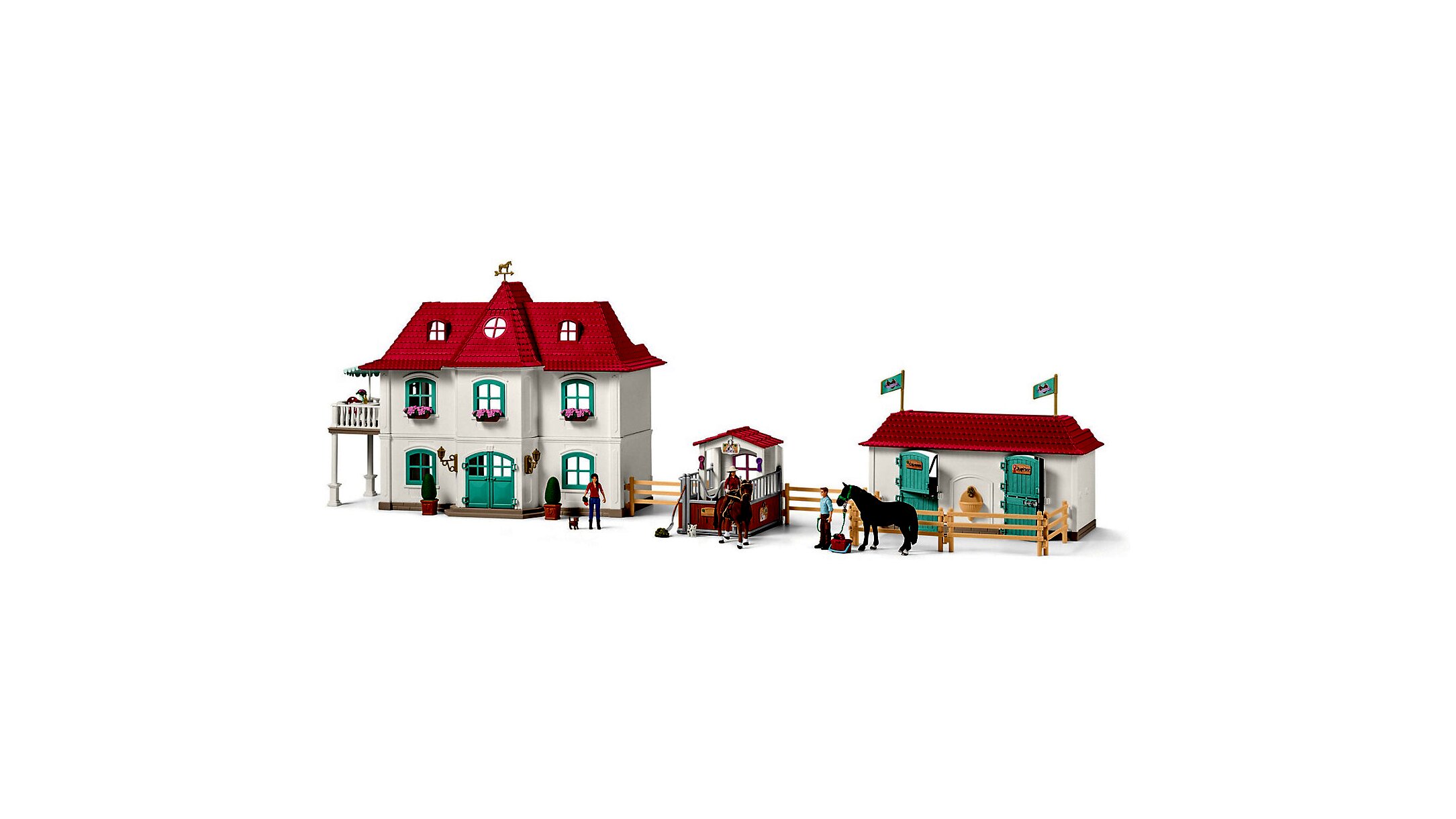 A lovarda részletesen kidolgozott épületei élethűen ábrázolják a vidéki házat és az istállót, ahol a gyerekek szerepjátékok során élhetik át a lovas kalandokat. A készletben található figurák és kiegészítők lehetővé teszik a kreatív játékot, így a gyerekek saját történeteket alkothatnak.