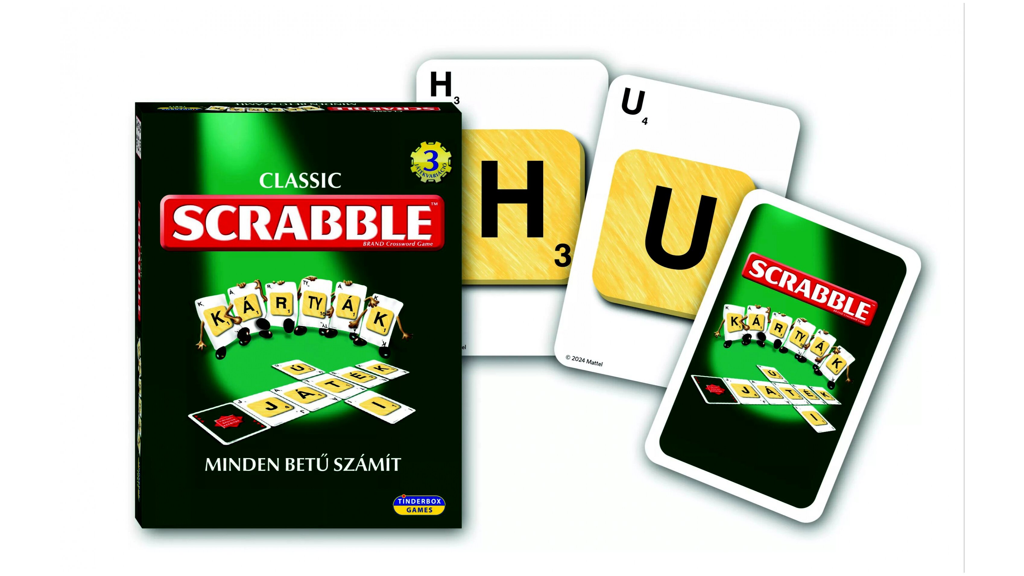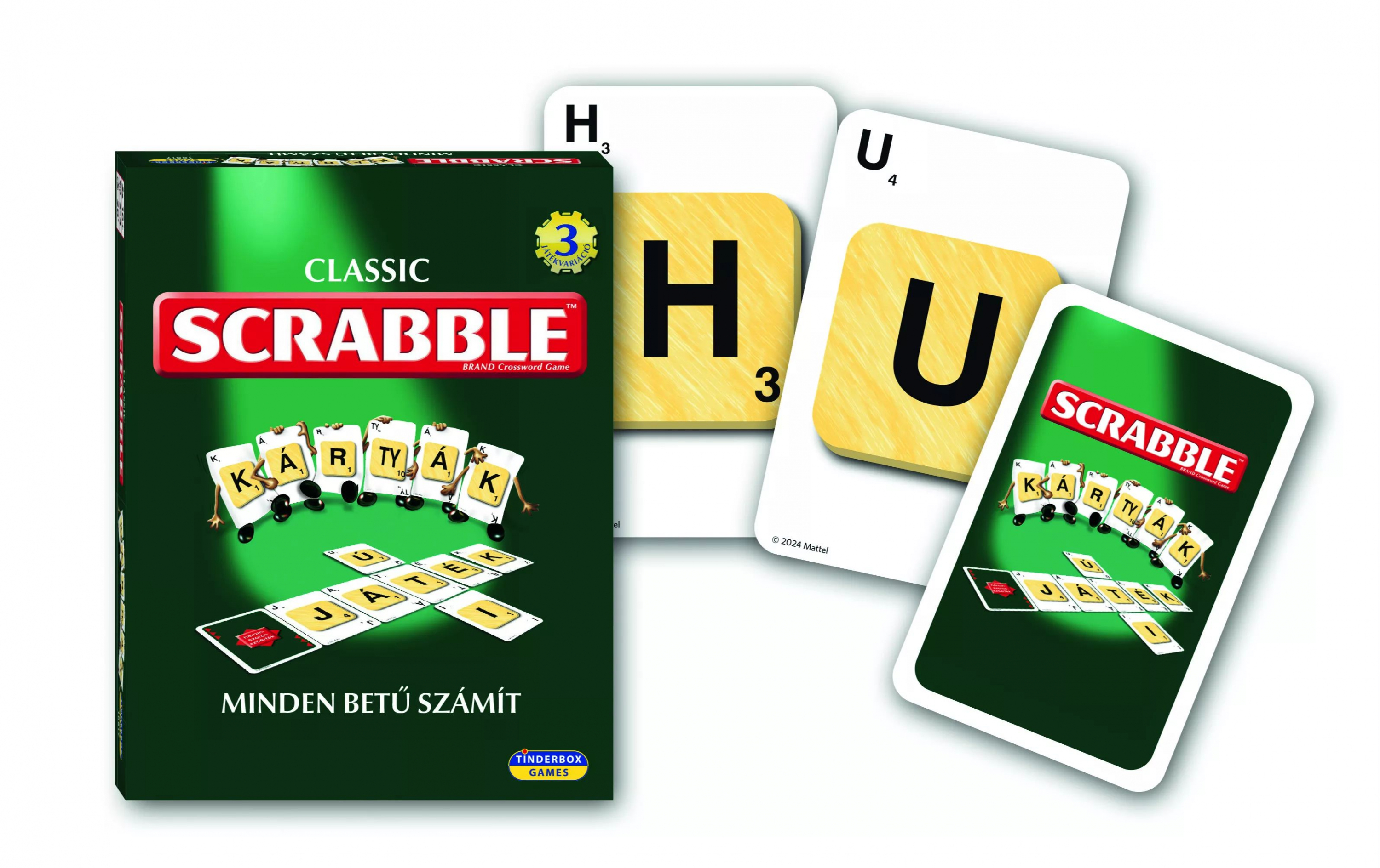 A klasszikus Scrabble kártyajáték változata. A cél az, hogy a játék végére a lehető legtöbb pontot szerezzétek a betűkből alkotott legértékesebb szavakkal és jutalomkártyákkal.Doboz mérete: 10 x 12 x 2 cm