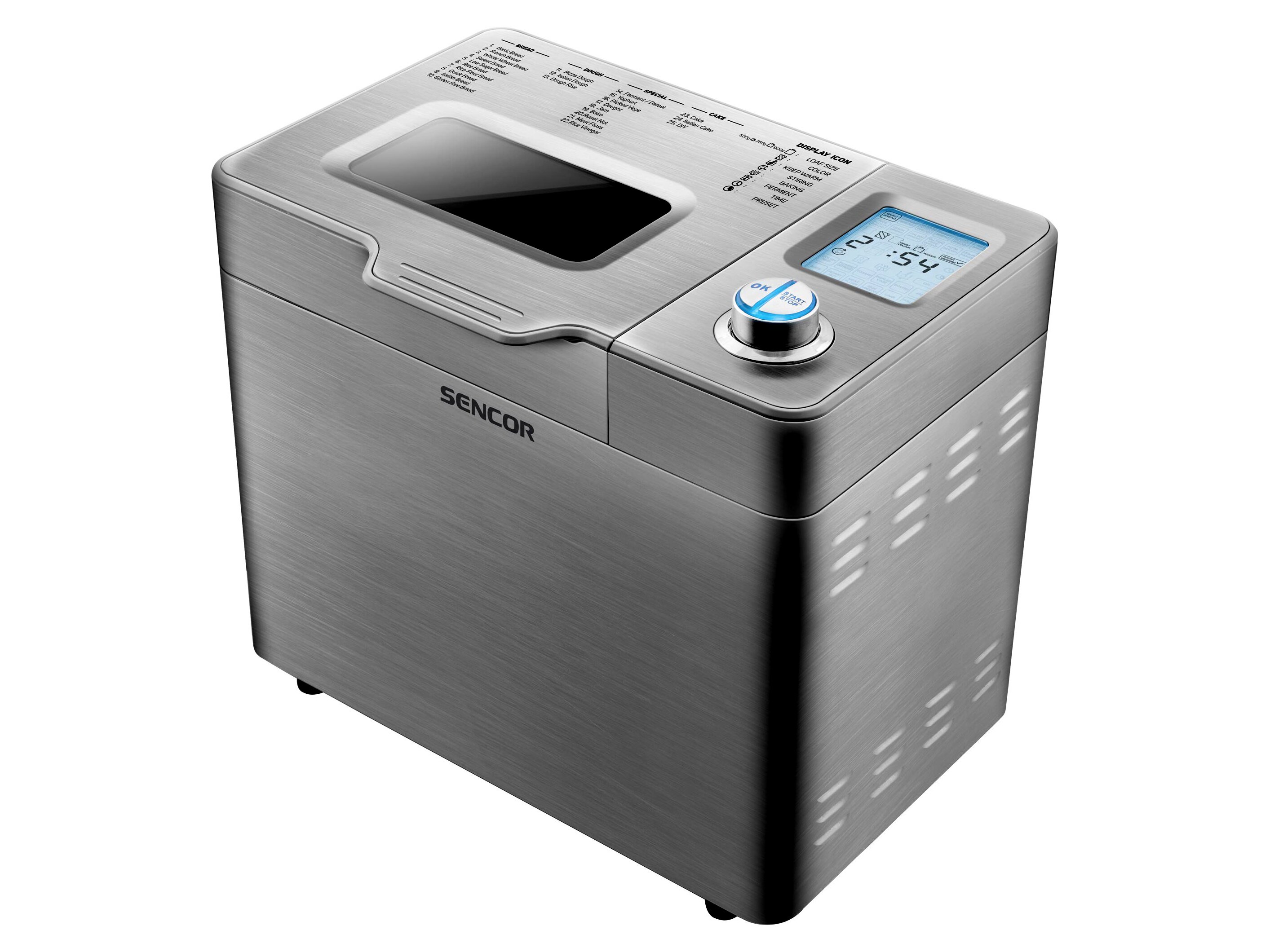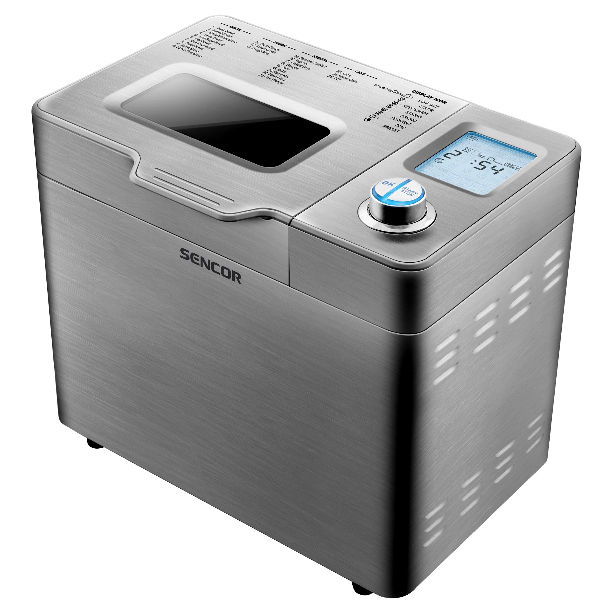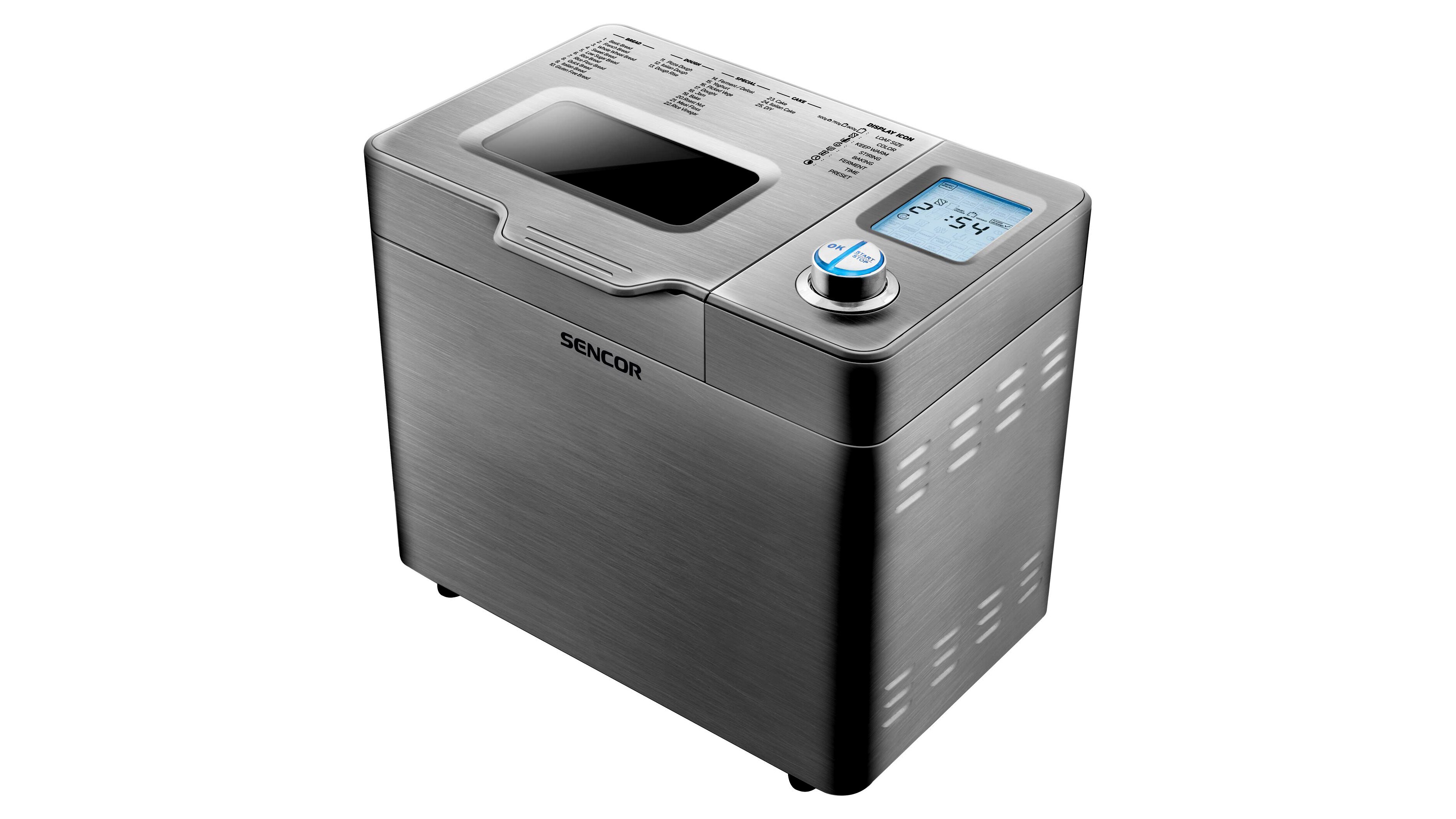 A Sencor SBR 2000SS kenyérsütő otthoni kenyér- és tésztakészítéshez készült készülék, amellyel különféle kenyerek, péksütemények, kelt tészták, illetve dzsemek és lekvárok is elkészíthetők. Az LCD kijelző és a betekintő ablak segít a folyamat követésében, a beállításokkal pedig a cipó mérete és a kéreg pirítottsága is a saját ízléshez igazítható.