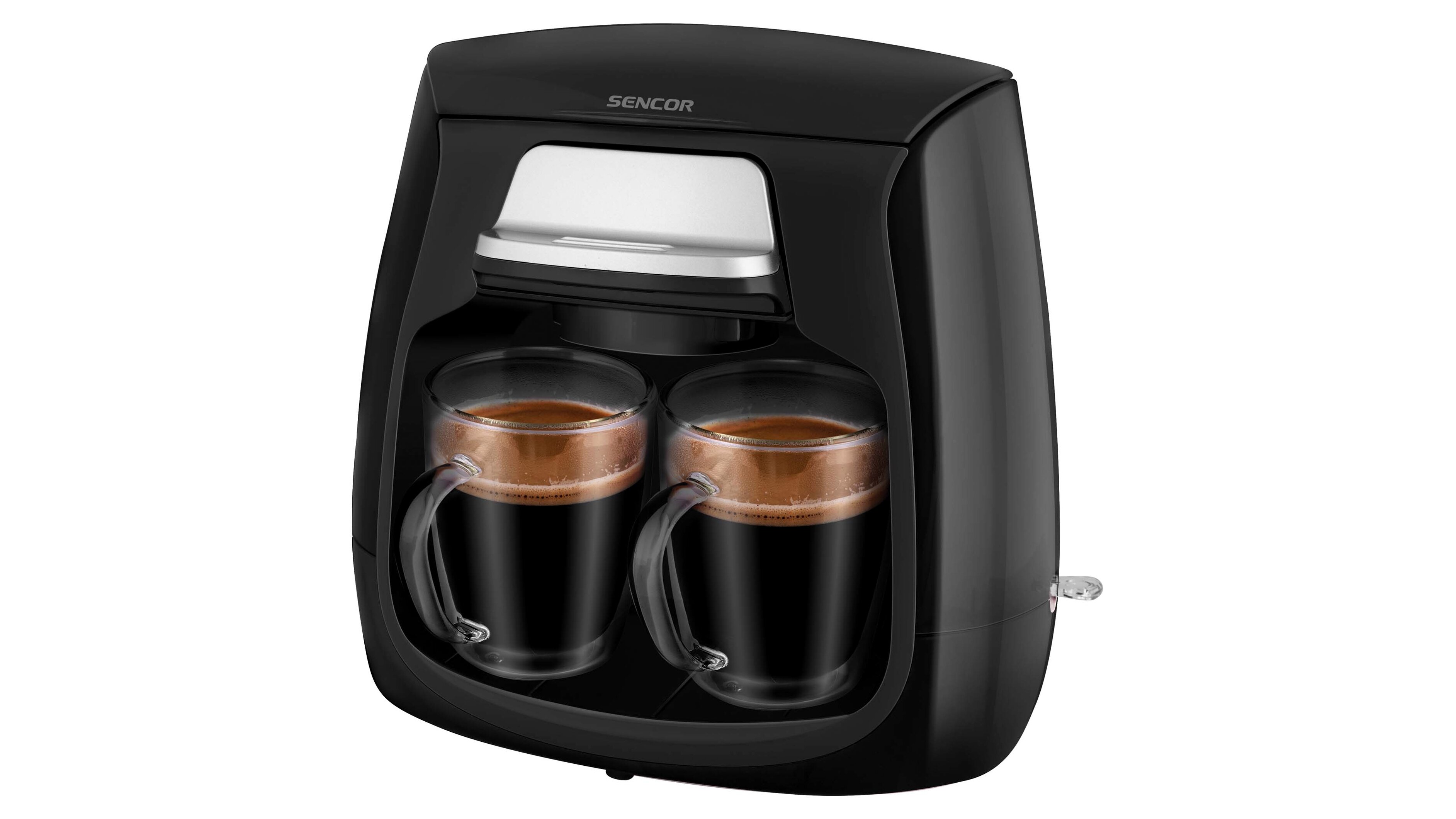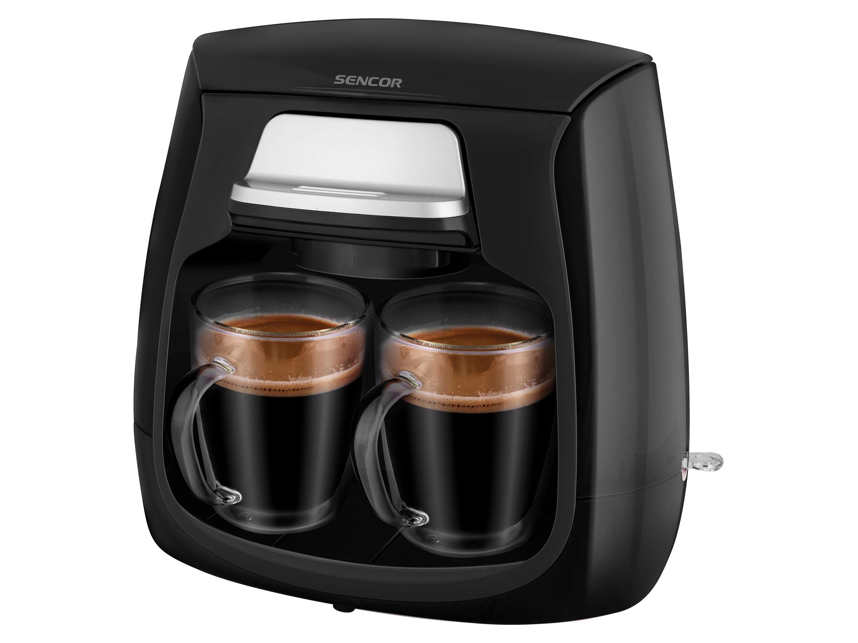 A Sencor SCE 2100BK egy kompakt, klasszikus filteres kávéfőző, amelyet kifejezetten 1–2 adag kávé gyors elkészítésére terveztek. A 0,3 literes víztartállyal és a két kifolyóval egyszerre két csészét/bögrét készíthetsz, a csomagban pedig 2 db üveg bögre is található.