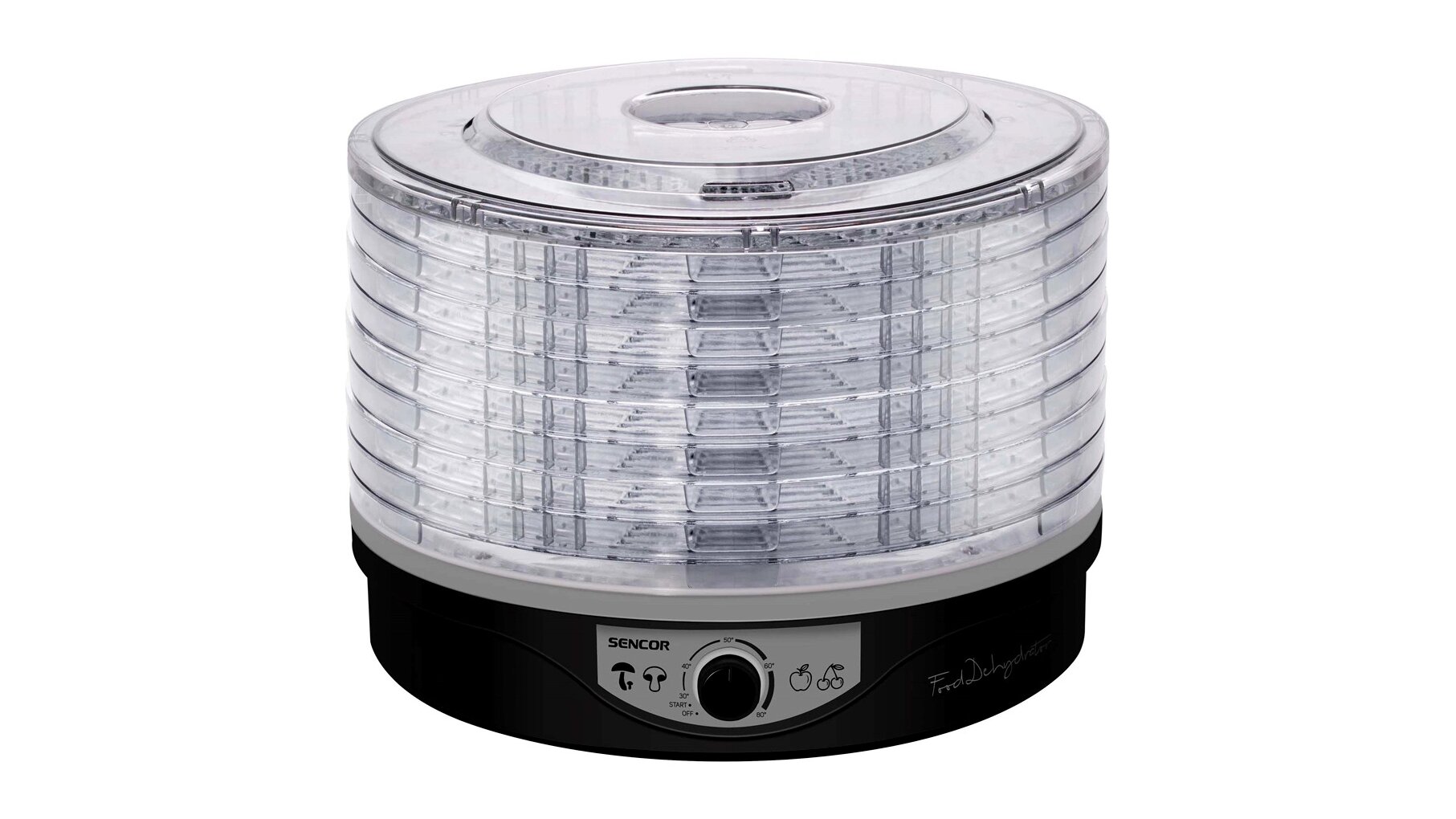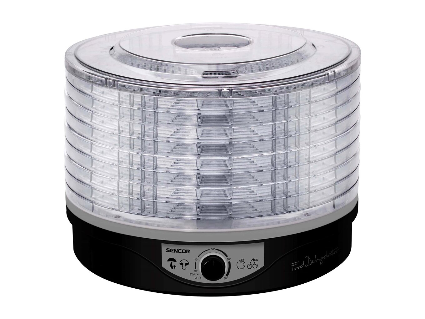 A Sencor SFD 3109BK elektromos aszaló otthoni élelmiszerszárításhoz készült: gyümölcsök, zöldségek, gombák, gyógynövények, húsok vagy akár halak kíméletes tartósítására. A 9 darab, nagy átmérőjű tálcán egyszerre több alapanyag is szárítható, a beépített ventilátor pedig segít az egyenletes hőelosztásban minden szinten.