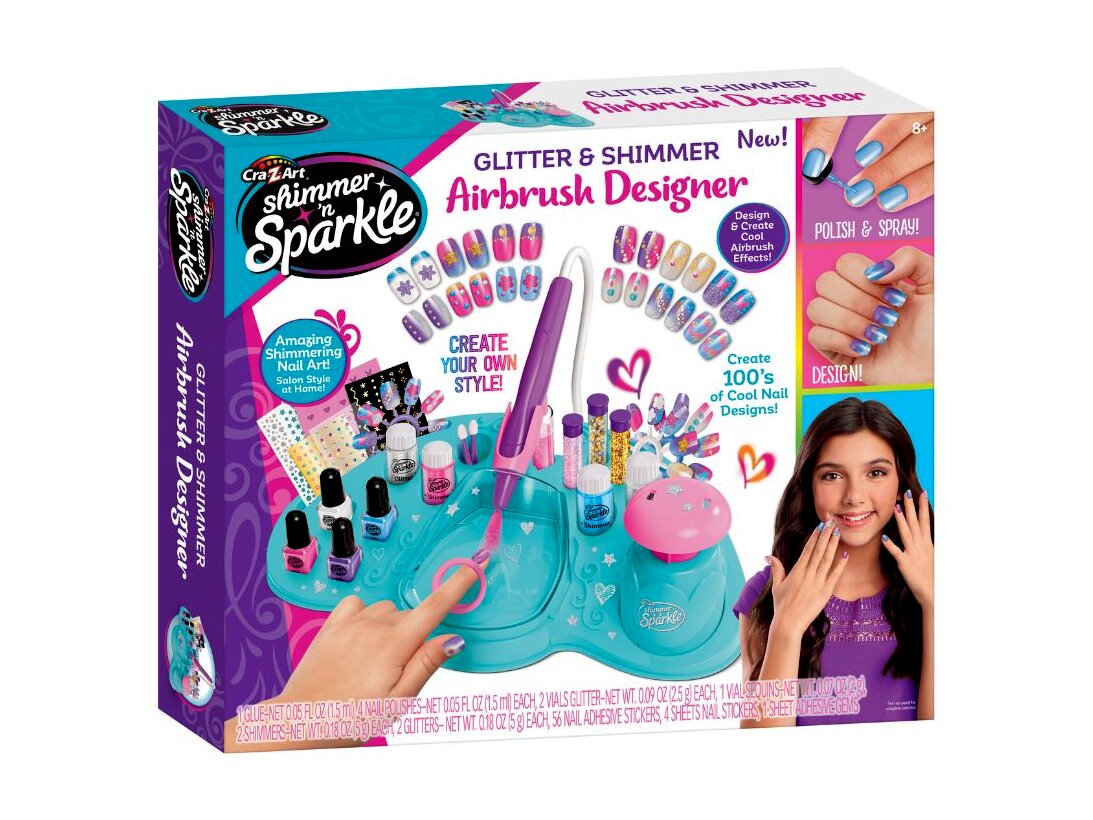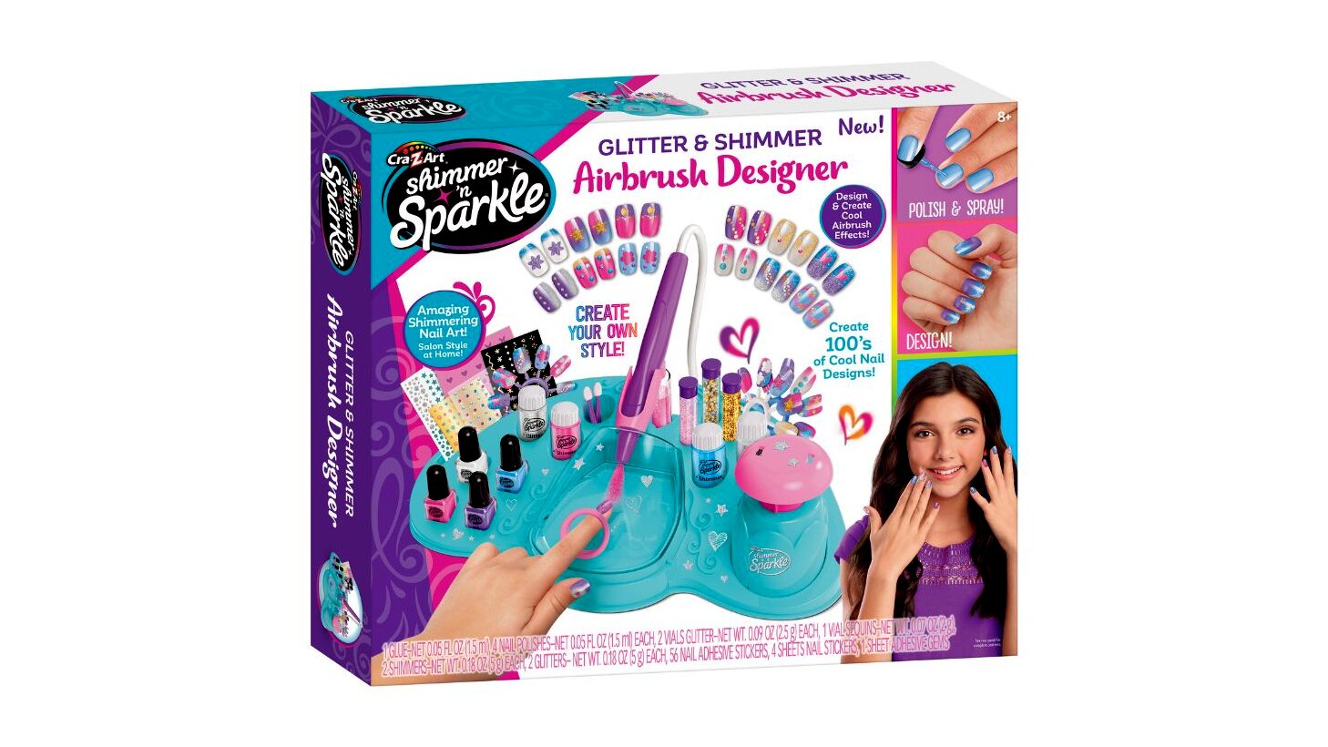 A Cra-Z-Art Shimmer 'n Sparkle Festékszórós manikűrszalonjával a jövő manikűrösei trendi, különleges és persze színes körmöket készíthetnek maguknak vagy a divatos megjelenésért rajongó barátnőiknek. A legcsillámosabb eredmény elérésének érdekében ráadásul egy nem mindennapi eszközzel, festékszóróval készíthetik el a körömkreációkat. A praktikus manikűrszalonban minden kiegészítőnek megvan a maga helye, így a különböző színű körömlakkok, a körömdíszítő matricák, a csillámok, flitterek és díszítőgyöngyök kényelmesen elférnek a nyílásokban.Az illusztrált, magyar nyelvű használati útmutató lépésről lépésre végigvezeti a kislányokat a körömdíszítés lépésein, és részletesen bemutatja a festékszóró használatát, valamint tisztán tartását.