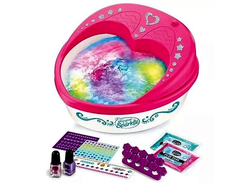 Fedezd fel a spa élményt otthon a Shimmer’n Sparkle 5 az 1-ben pedikűr spa készlettel, amely minden kis divatdiktátornak tökéletes választás. A készlet öt különleges funkcióval varázsolja el a gyerekeket, így a pedikűr sosem volt még ennyire szórakoztató és kreatív.