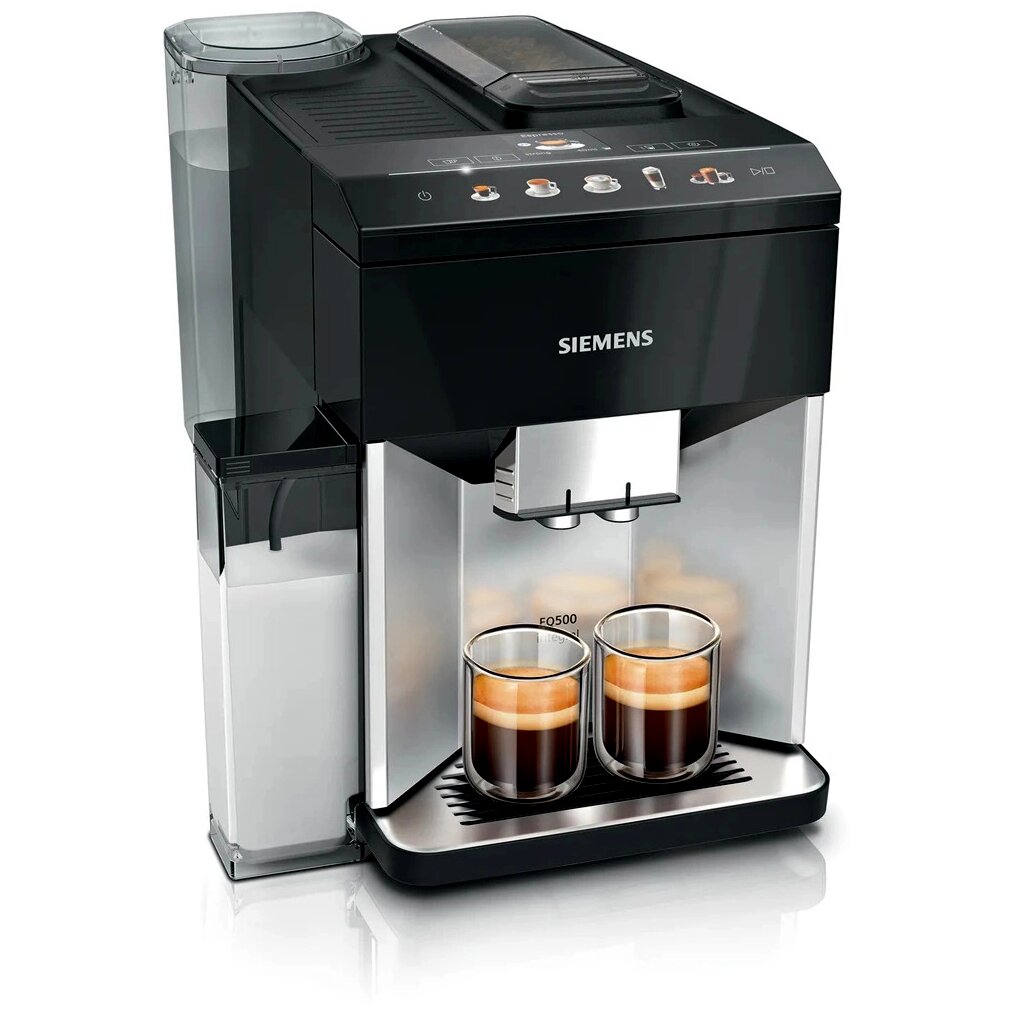 Automata kávéfőző EQ500 - 15 bar - integrált tejtartály - AromaIntense - aromaDouble Shot - intuitív coffeeSelect Display - kerámia őrlőmű - nemesacél előlap - inox/fekete