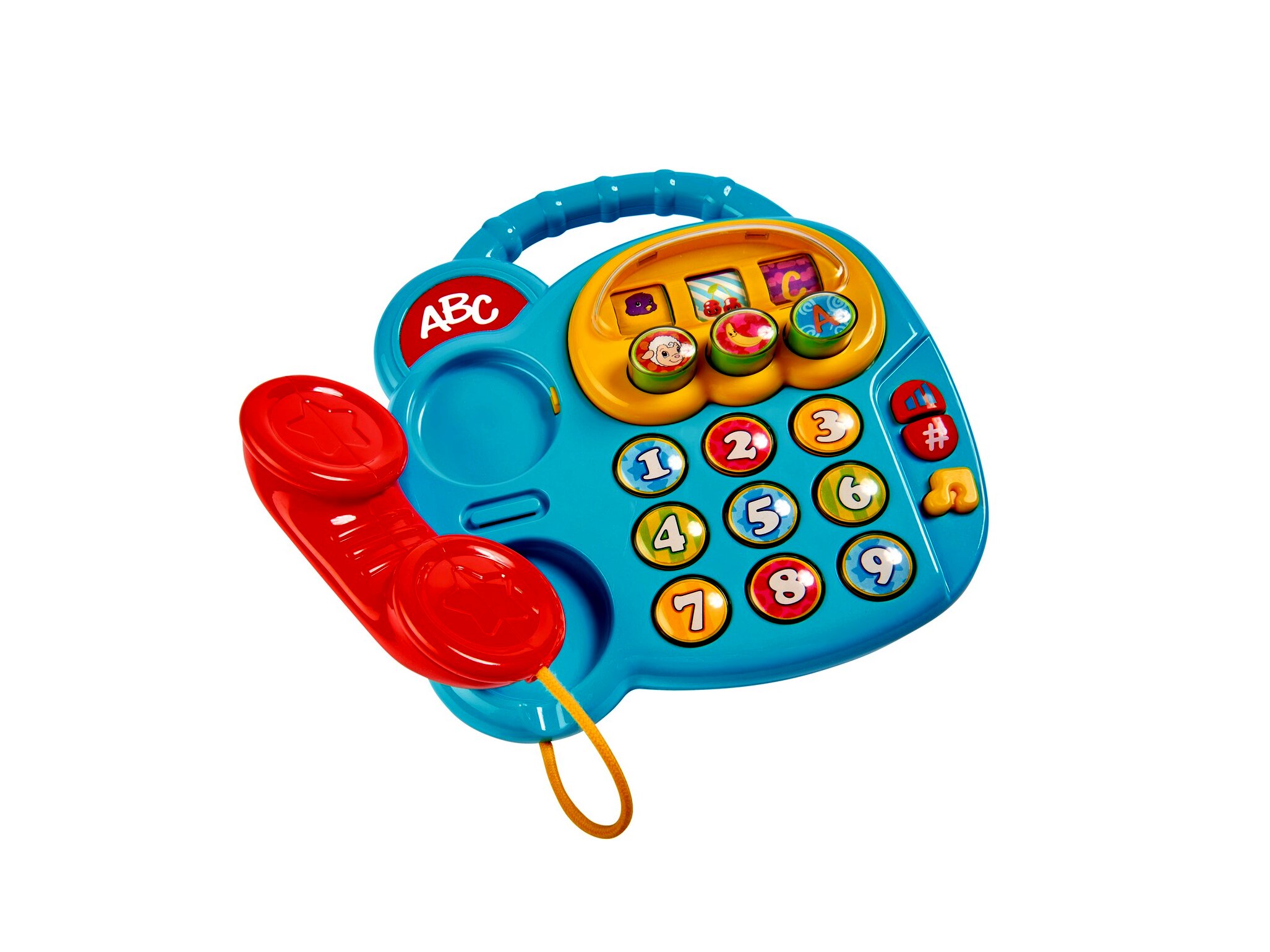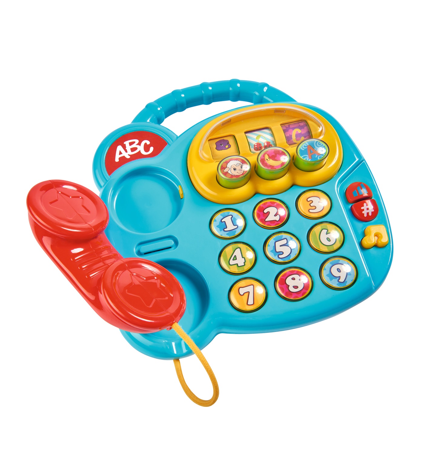 - Az ABC színes telefon nyomkodható gombokkal rendelkezik, ha a baba megnyomja a felső 3 gombot, kedves állatkás képek váltják egymást a telefonon