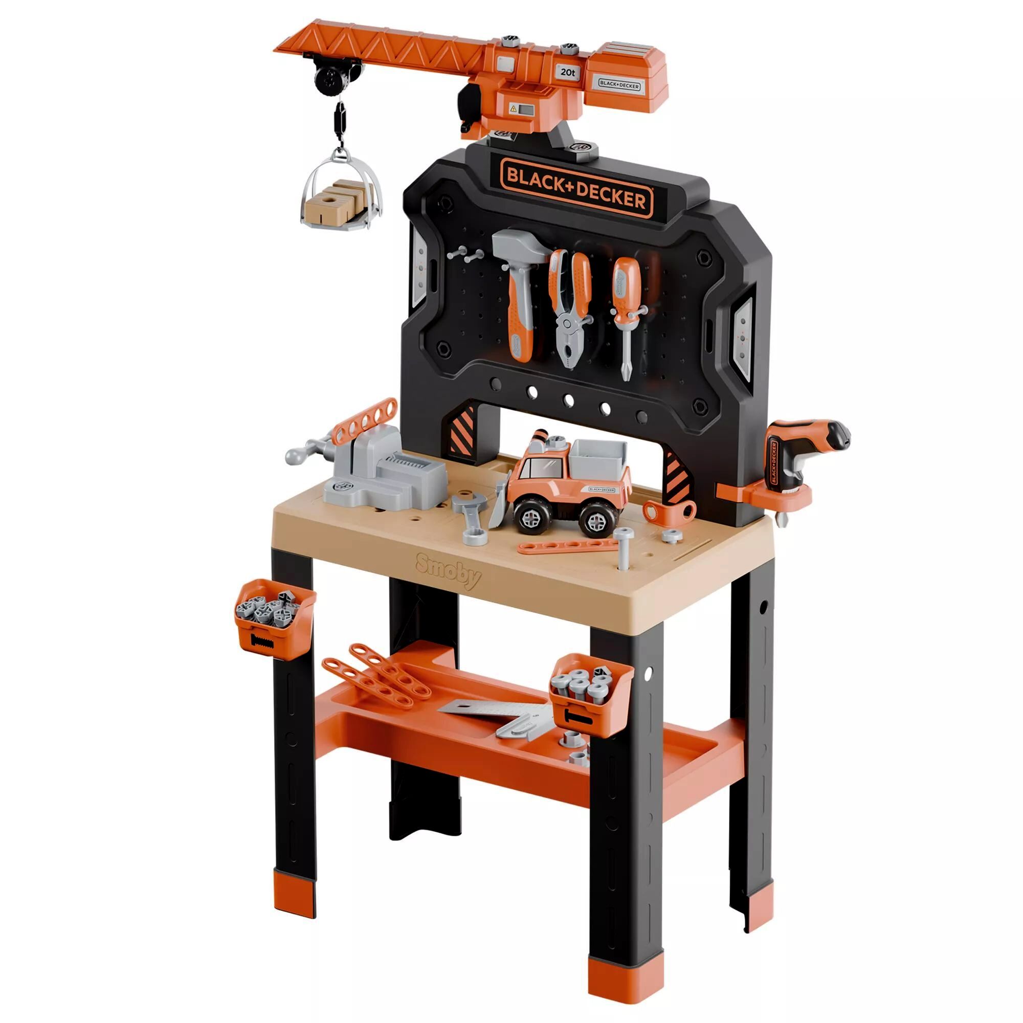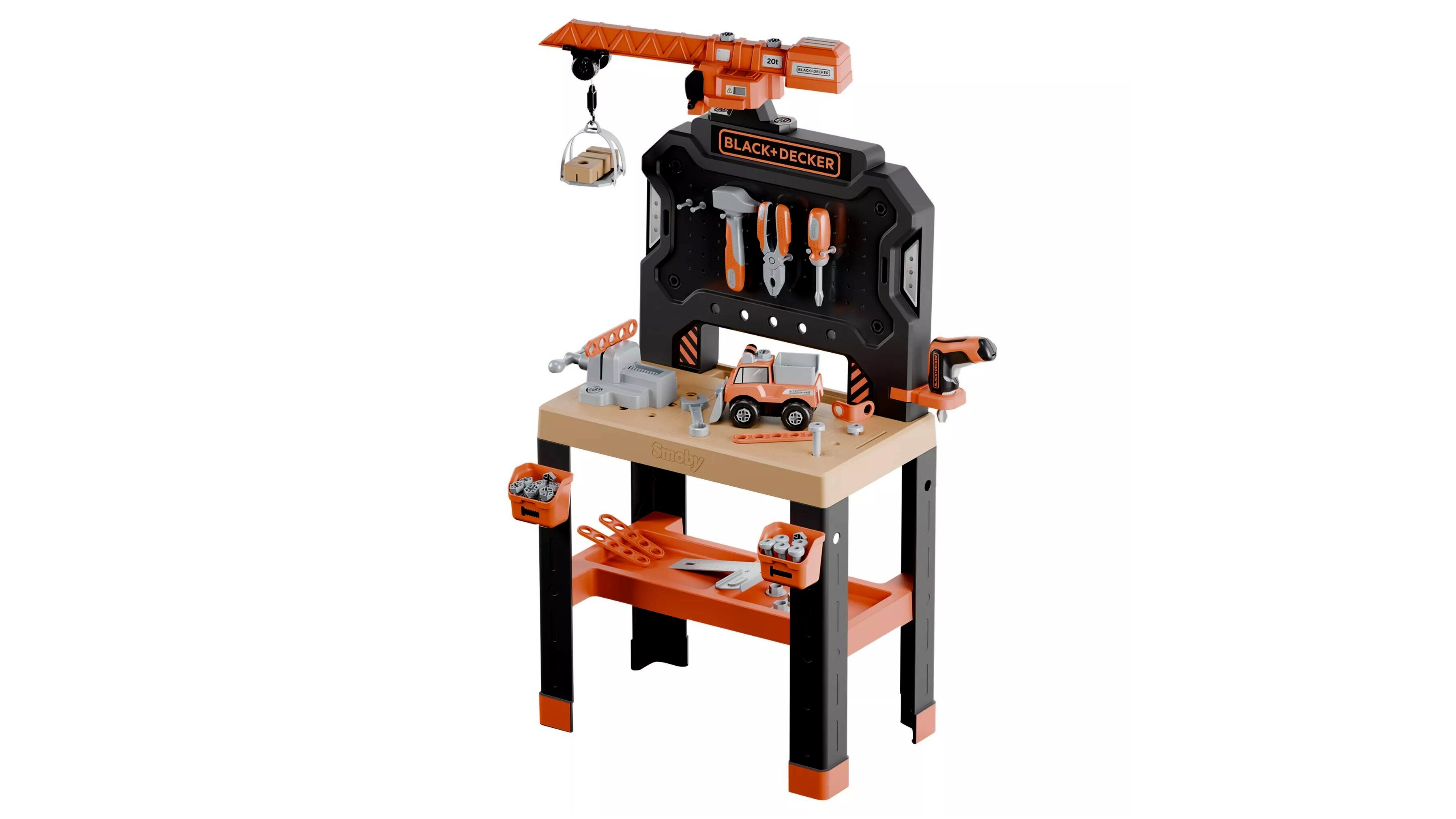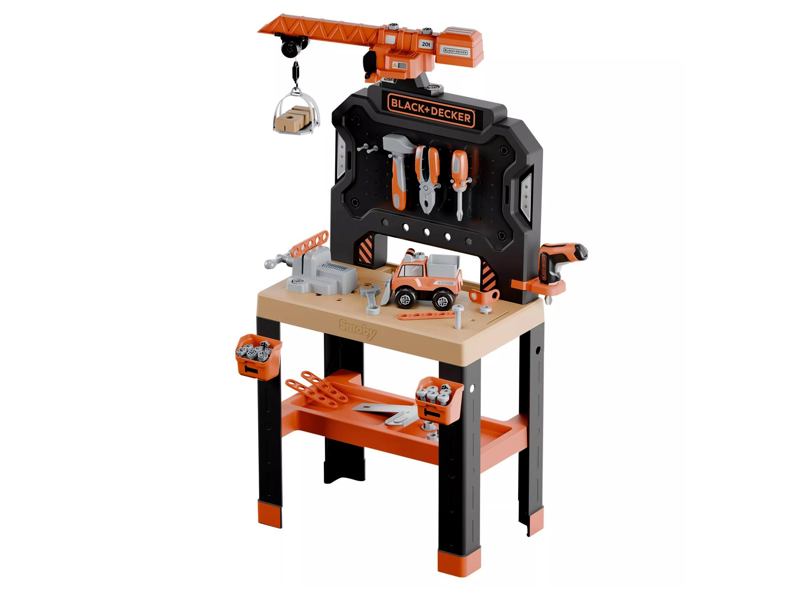 A Smoby: Black and Decker szerelőasztal daruval a kis barkácsmesterek álma! A szett rengeteg eszközt és kiegészítőt tartalmaz, amelyekkel a gyerekek kreatívan és biztonságosan fejleszthetik kézügyességüket.A szerelőasztal különlegessége a beépített daru, amely segít a nehezebb elemek mozgatásában, így a gyerekek kipróbálhatják magukat az építészet világában. Az asztal több tárolórekesszel is rendelkezik, ahová az eszközöket könnyedén el tudják pakolni játék után.