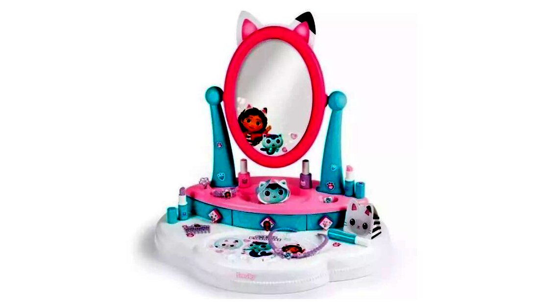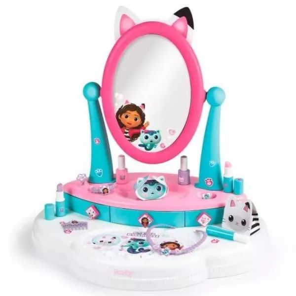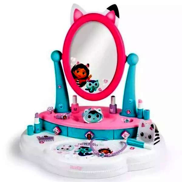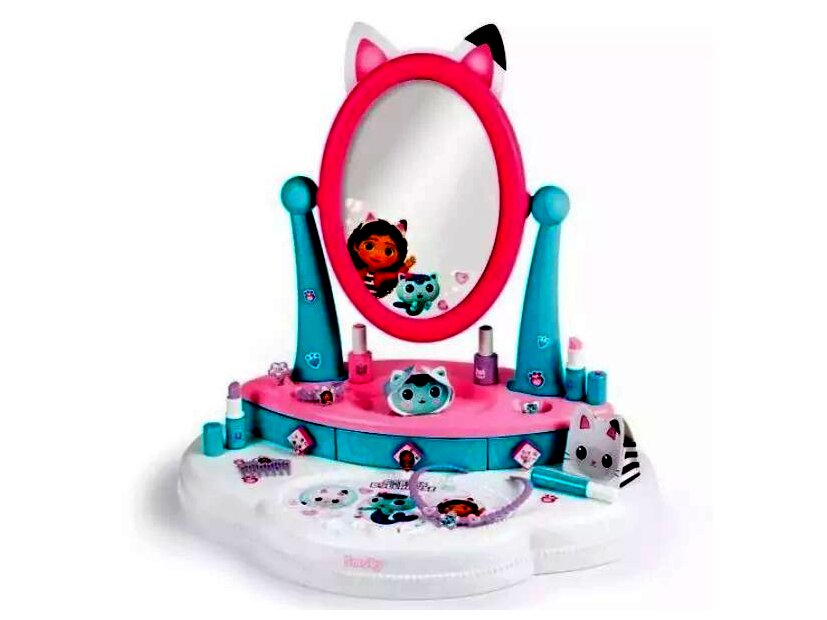 A gyerekek egy varázslatos világba csöppennek, ahol saját hajuk és sminkjük elkészítése mellett barátaikét is megálmodhatják a Gabi babaháza szépségszett fésülködőasztal.