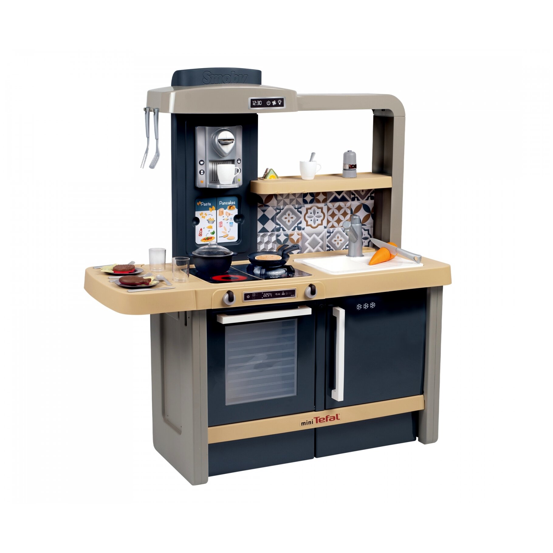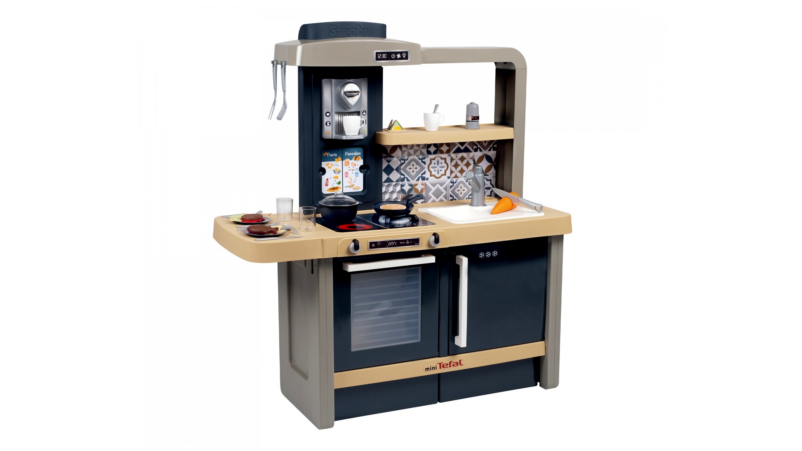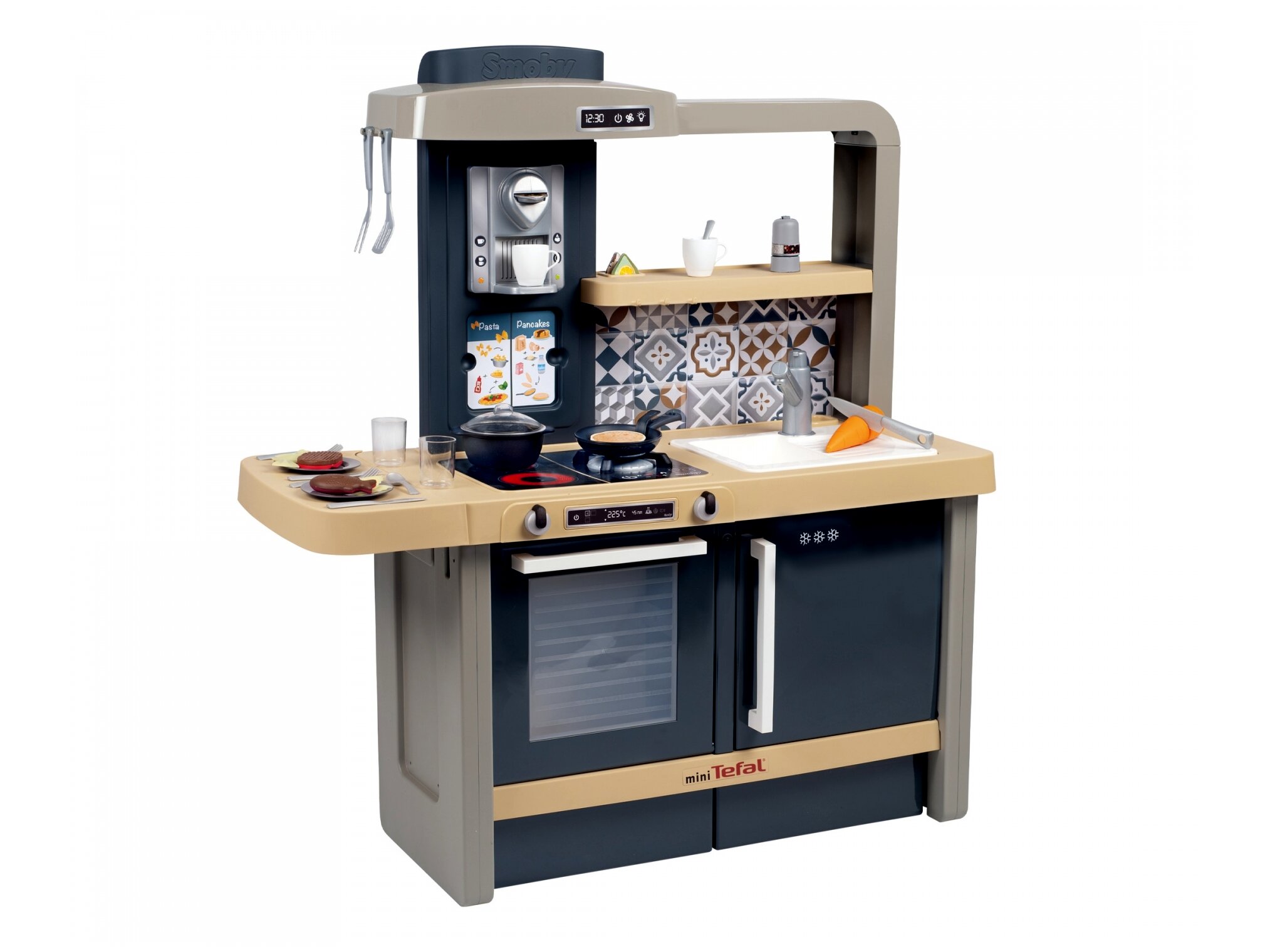 Minden apró séf álma egy jó felszerelt konyha, ebben pedig minden megtalálható, ami szükséges a legfinomabb játékételek elkészítéséhez. A konyha teljesen körbejárható, számos lehetőséget és szuper funkciókat kínál a gyerekeknek, ráadásul egyszerre akár többen is odaférnek. Beépített elektromos moduljának köszönhetően élethű "főzős hangokat" ad ki. Sütő, mosogató, főzőlap, hűtőszekrény, kávéfőző... Tényleg, mint egy igazi konyhában. A csomagban összesen 31 darab kiegészítő található.A játék különlegessége, hogy a konyhapult állítható, így a konyha együtt nő a gyerekekkel és minden életkorban beállítható a tökéletes magasság.