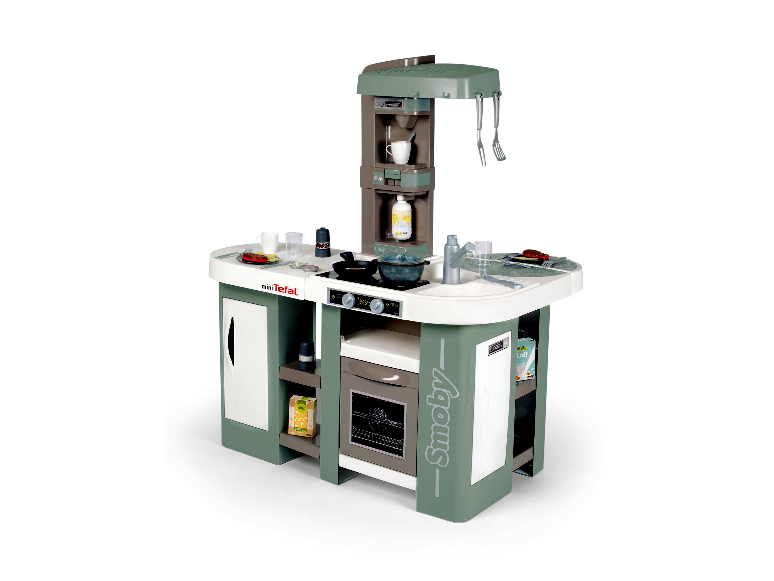 A Tefal Studio XL Bubble konyhával a gyerekek igazi mester szakácsokká válhatnak! A konyha minden apró részlete segítségükre lesz, hogy tökéletes ételeket készíthessenek. A konyha elektronikus, hangeffektekkel teszi még szórakoztatóbbá teszi a játékélményt. Feltehetik a tésztát főni, vagy sülni a husit, és hallgatják, hogy serceg! Elkészíthetnek egy ínycsiklandó kapszulás kávét, vagy szénsavas üdítőt a finom ebéd mellé, majd ha megették a finomságokat, elmosogathatják az edényeket. A sütő gombjai mechanikus hangot adnak - "kattannak", az ajtós szekrények nyithatóak.