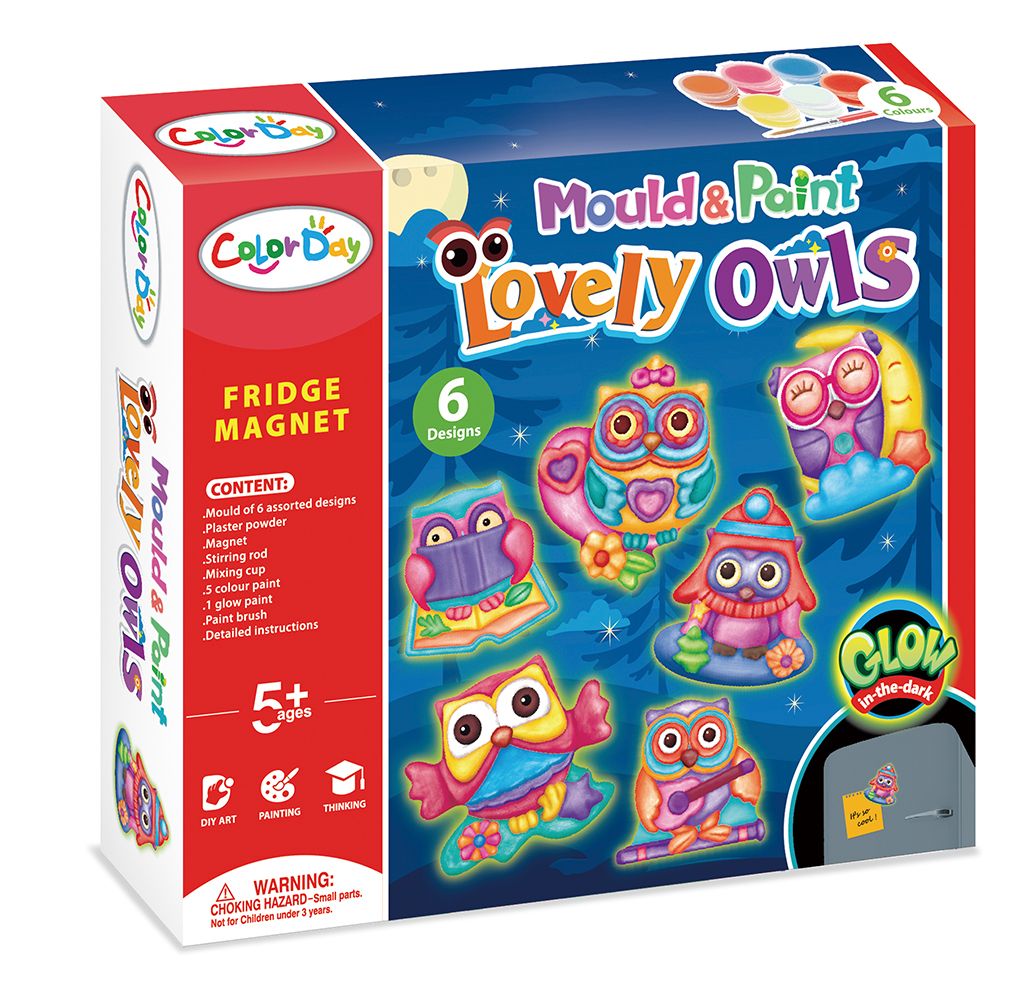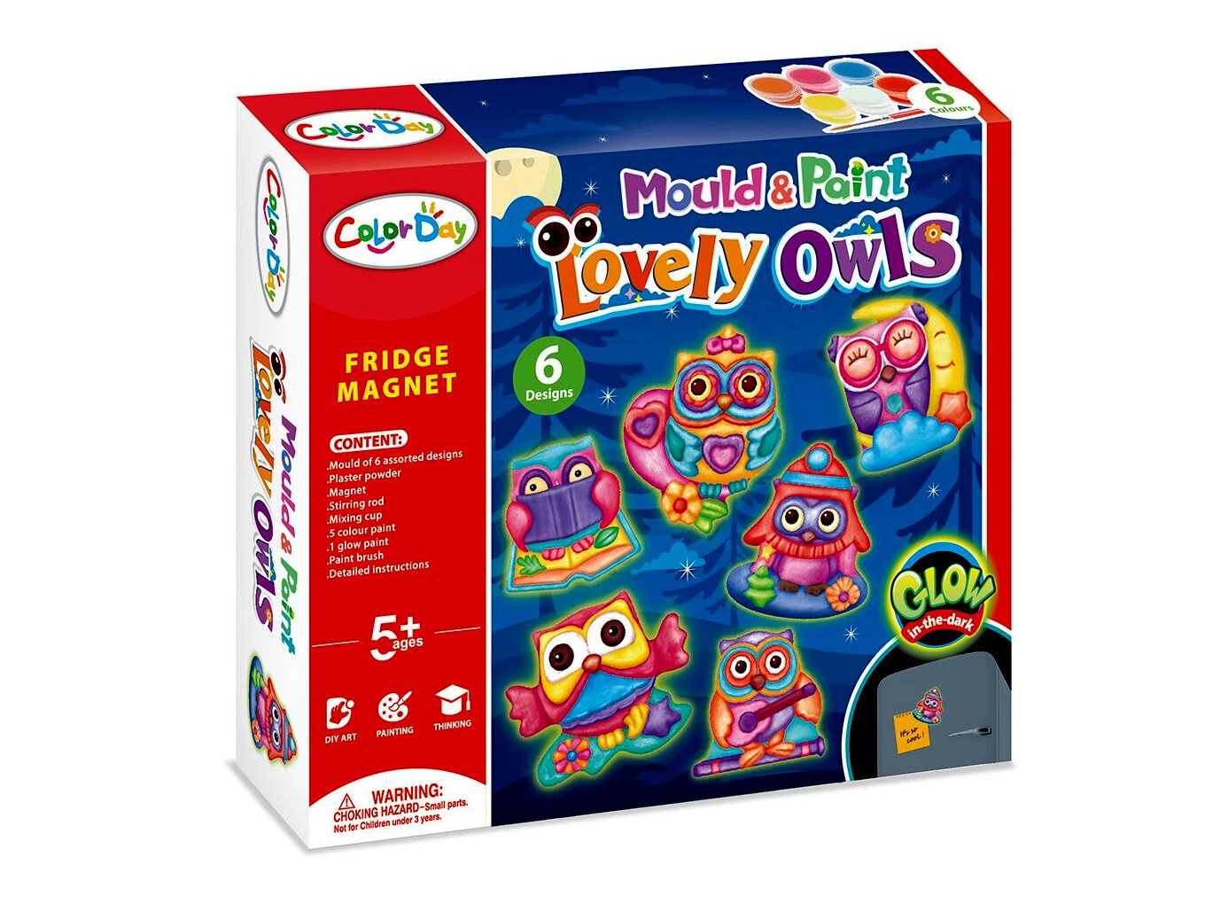 Sötétben világító hűtőmágneskészítő szett, Baglyok