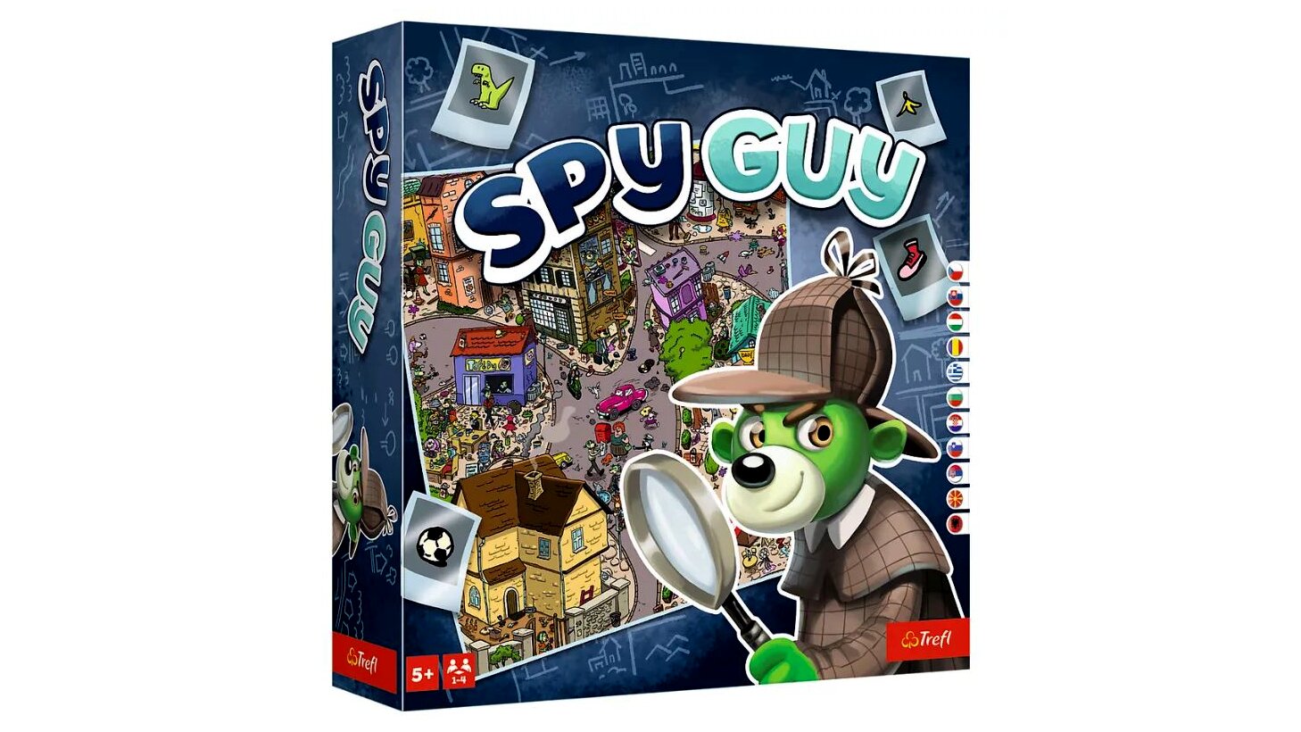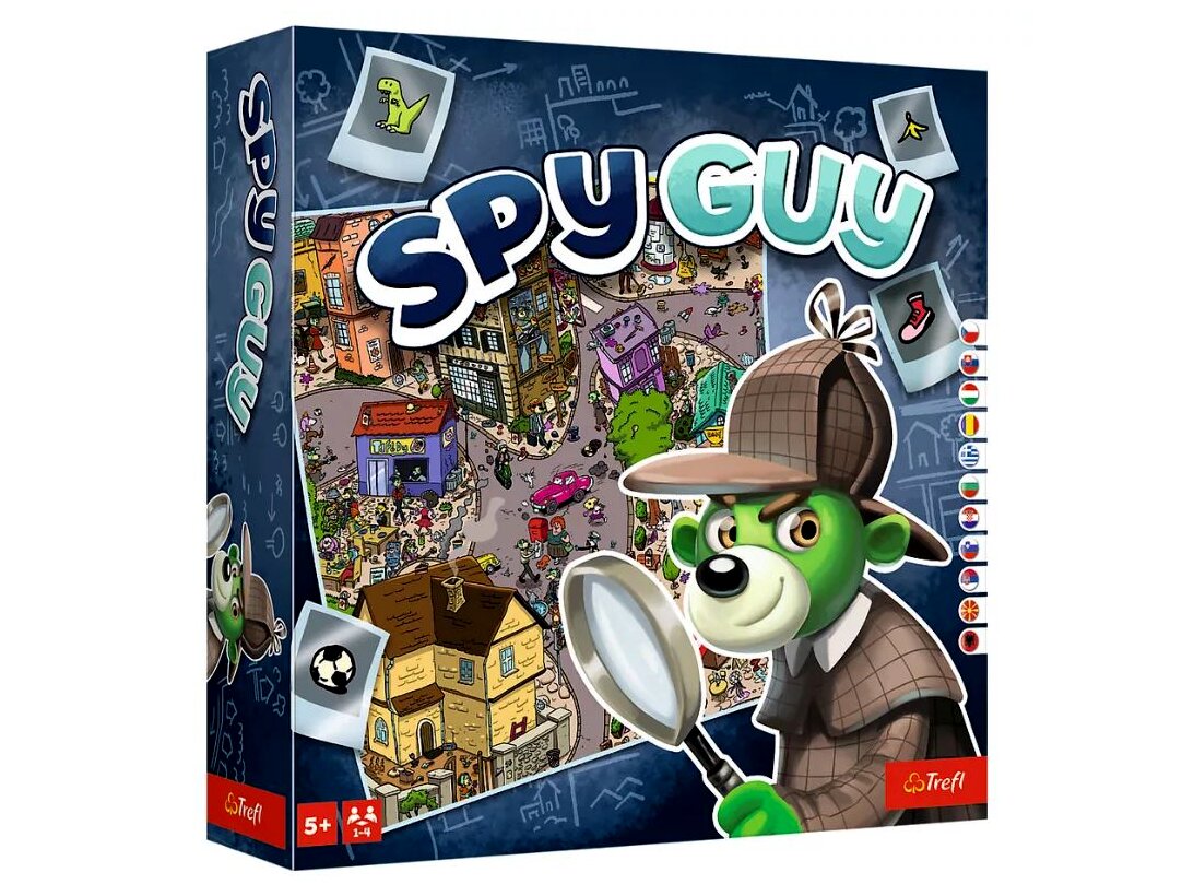 A Trefl Spy Guy társasjátékának alaptörténetében dr. Moritz félelemben tartja Trefliks városának boltosait, ugyanis fényes nappal, arcátlanul kirabolja az üzleteiket. A rendőrök tehetetlenek, így a gazfickó szabadon garázdálkodik a városban. Egyedül Spy Guy képes arra, hogy megtalálja dr. Moritz-ot, de persze nem egyedül - a játékosok segítségére is szüksége van! A játék során a játékosok közös erővel segítenek Spy Guynak, a rendre felügyelő szuperdetektívnek. A feladatuk, hogy elkapják dr. Moritzot, mielőtt a gazfickó elérné a kikötőt, és kereket oldana.A kooperatív társasjáték menete egyszerű: egyszer Spy Guy detektív, egyszer pedig dr. Moritz lép a táblán. Spy Guy körében egy nyomravezető kártya felcsapása után meg kell keresni a kártyán látható tárgyat a játéktábla több pontján, majd megjelölni - erre annyi idő áll rendelkezésre, amíg a homokóra homokszemei le nem peregnek. Spy Guy annyit léphet előre, ahány nyomjelölőt a játékosok a táblára helyeztek. Ezt követően dr. Moritz bábujával annyit kell előrelépni a táblán, ahány lábnyom szerepelt a nyomravezető kártyán. Ha dr. Moritz eléri a kikötőt, a játékosok veszítenek, ha Spy Guynak sikerül utolérnie és elfognia a tolvajt, a társaság nyer. Elő a sasszemekkel!