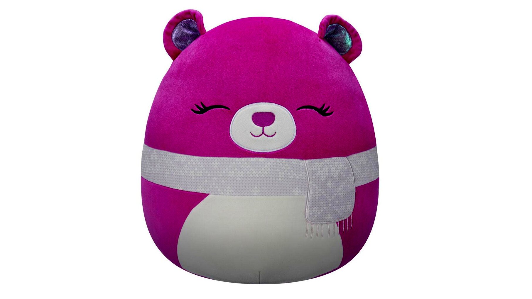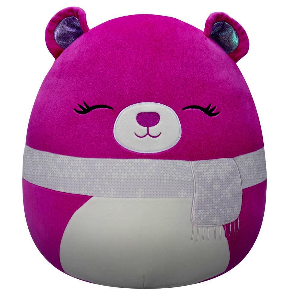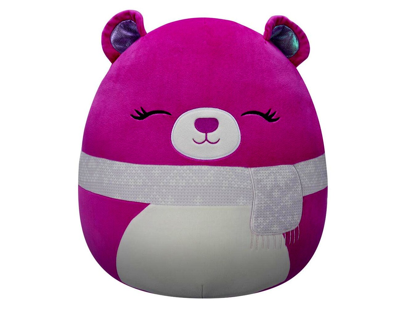 Squishmallows, Crisanta a lila medve csukott szemekkel és sállal, 13 cm