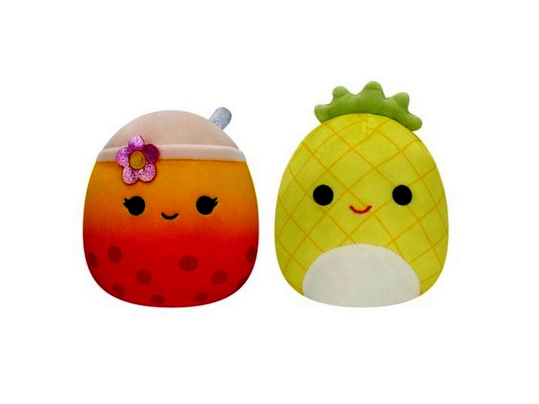 Squishmallows, Kifordítható 2 az 1-ben plüss, Bubble tea és Ananász