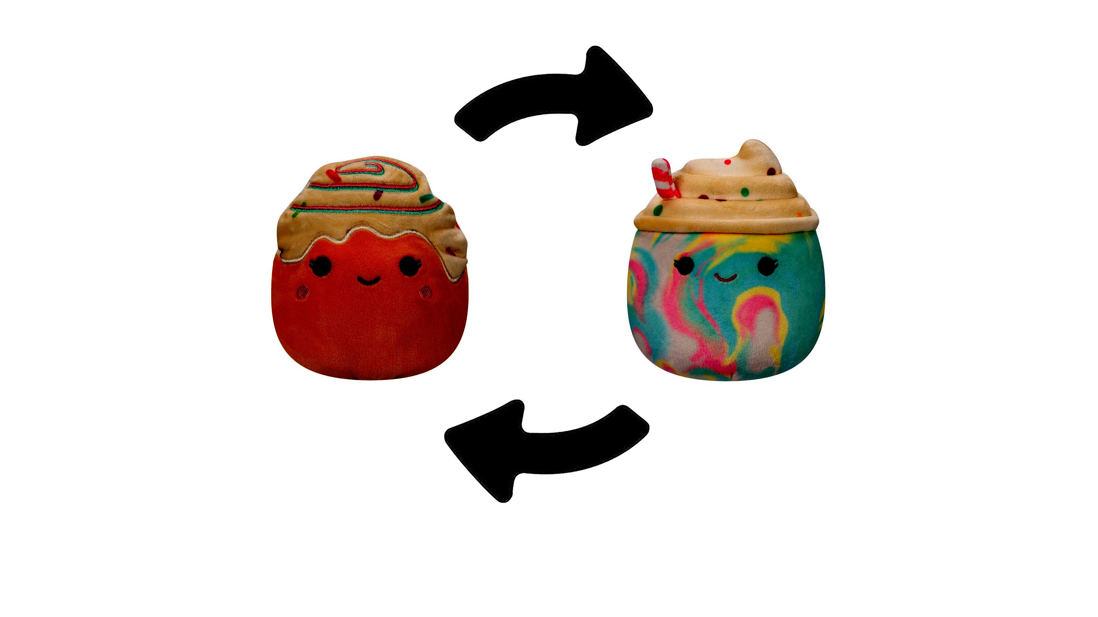 Squishmallows, Kifordítható 2 az 1-ben plüss, Kelen a szivárványos frappé és Rease a fahéjas csiga
