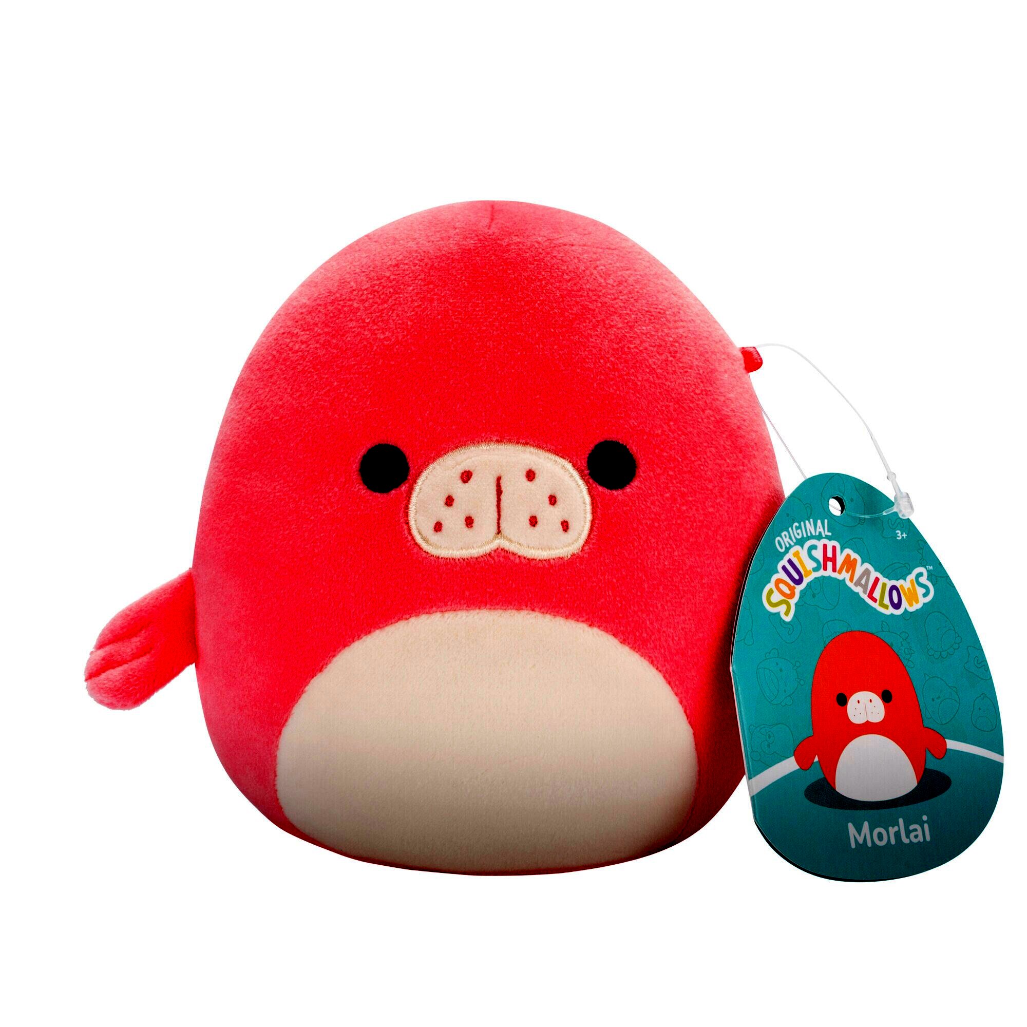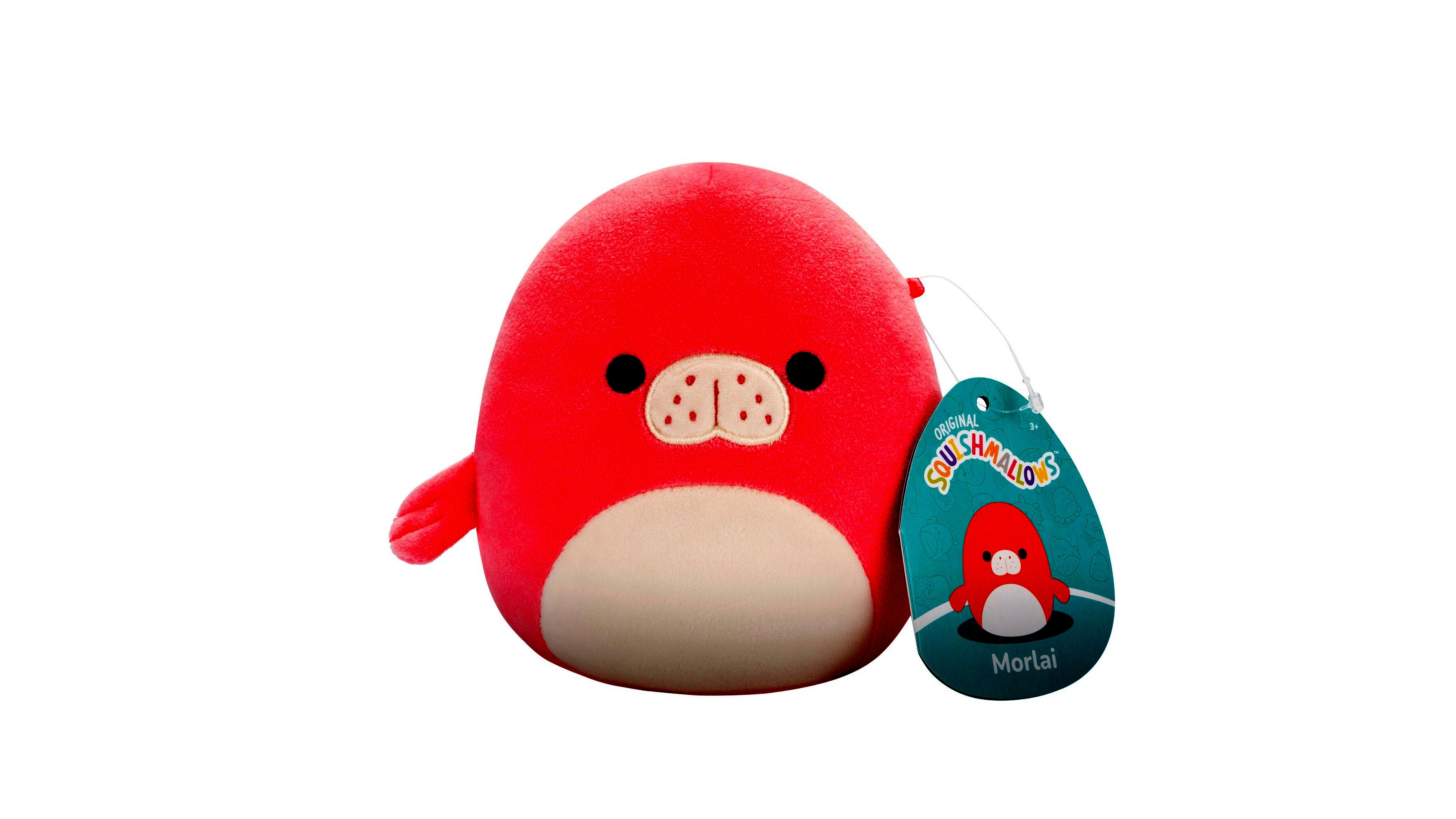 Squishmallows, Morlai a korall színű lamantin fehér hassal, 13 cm