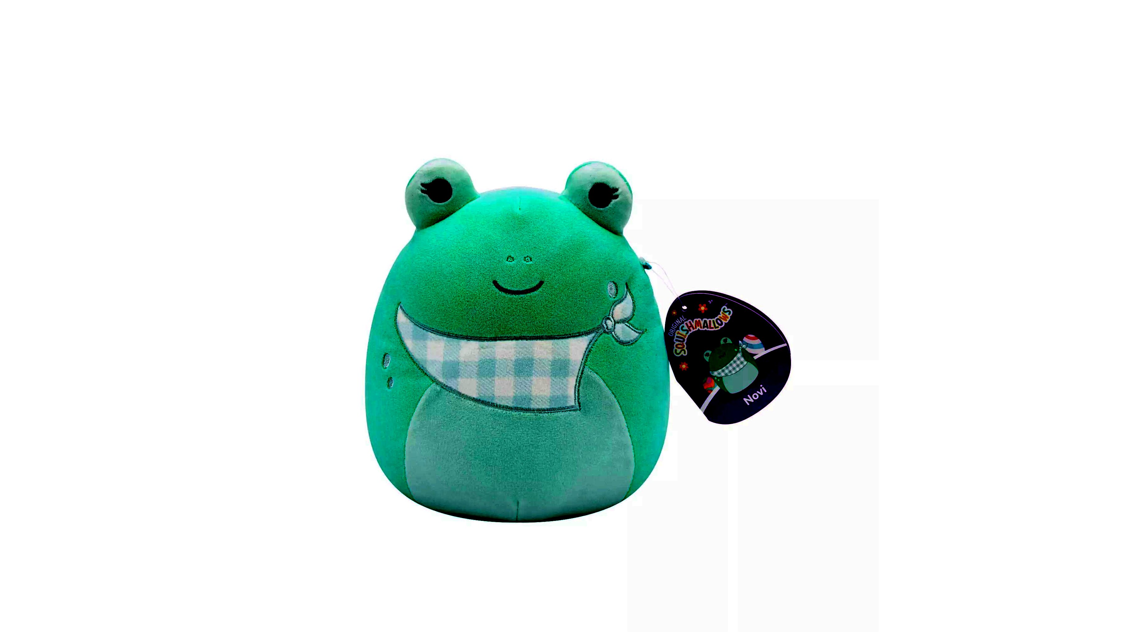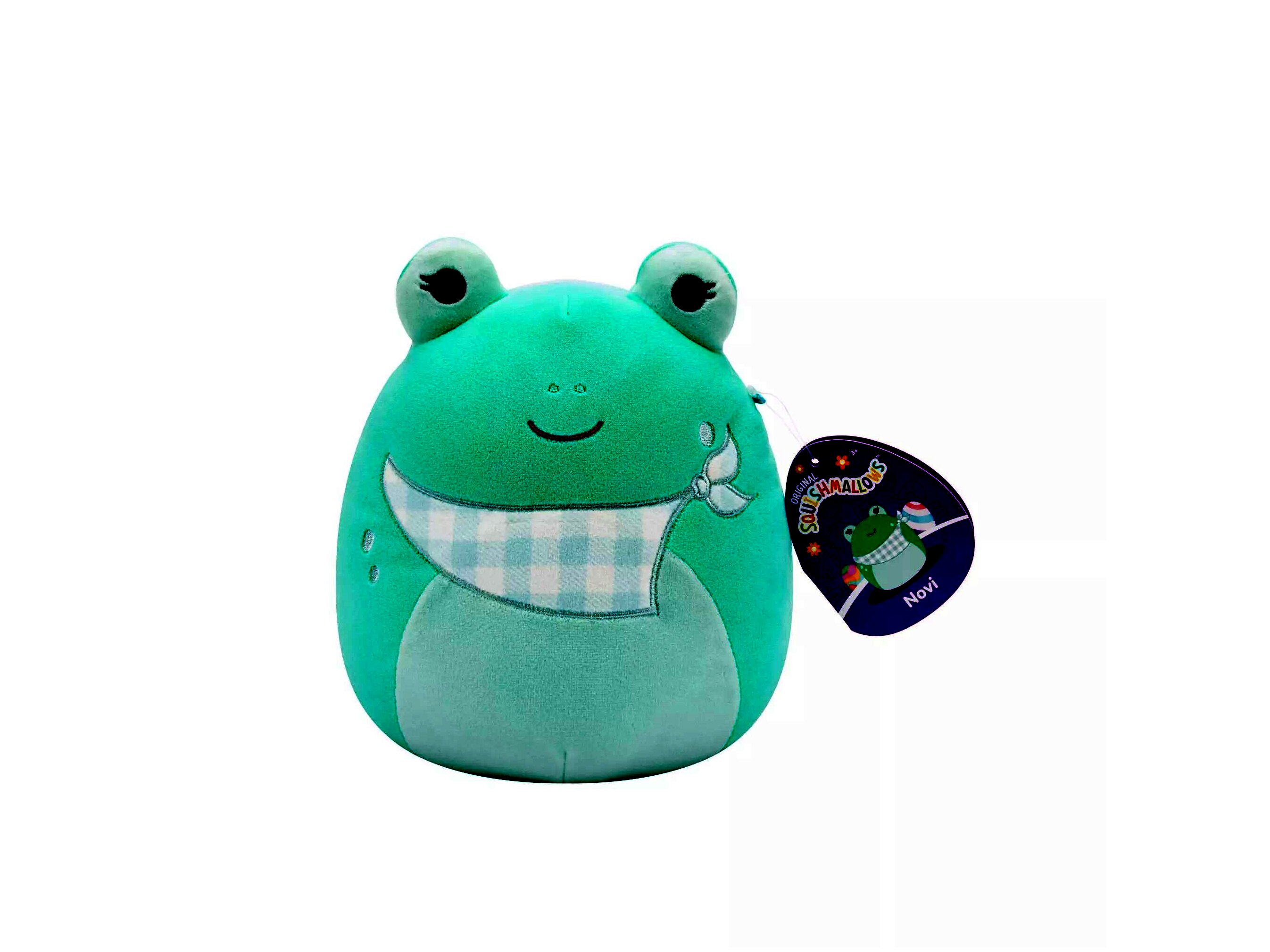 Squishmallows, Novi a zöldeskék béka tarka kendővel, 20 cm