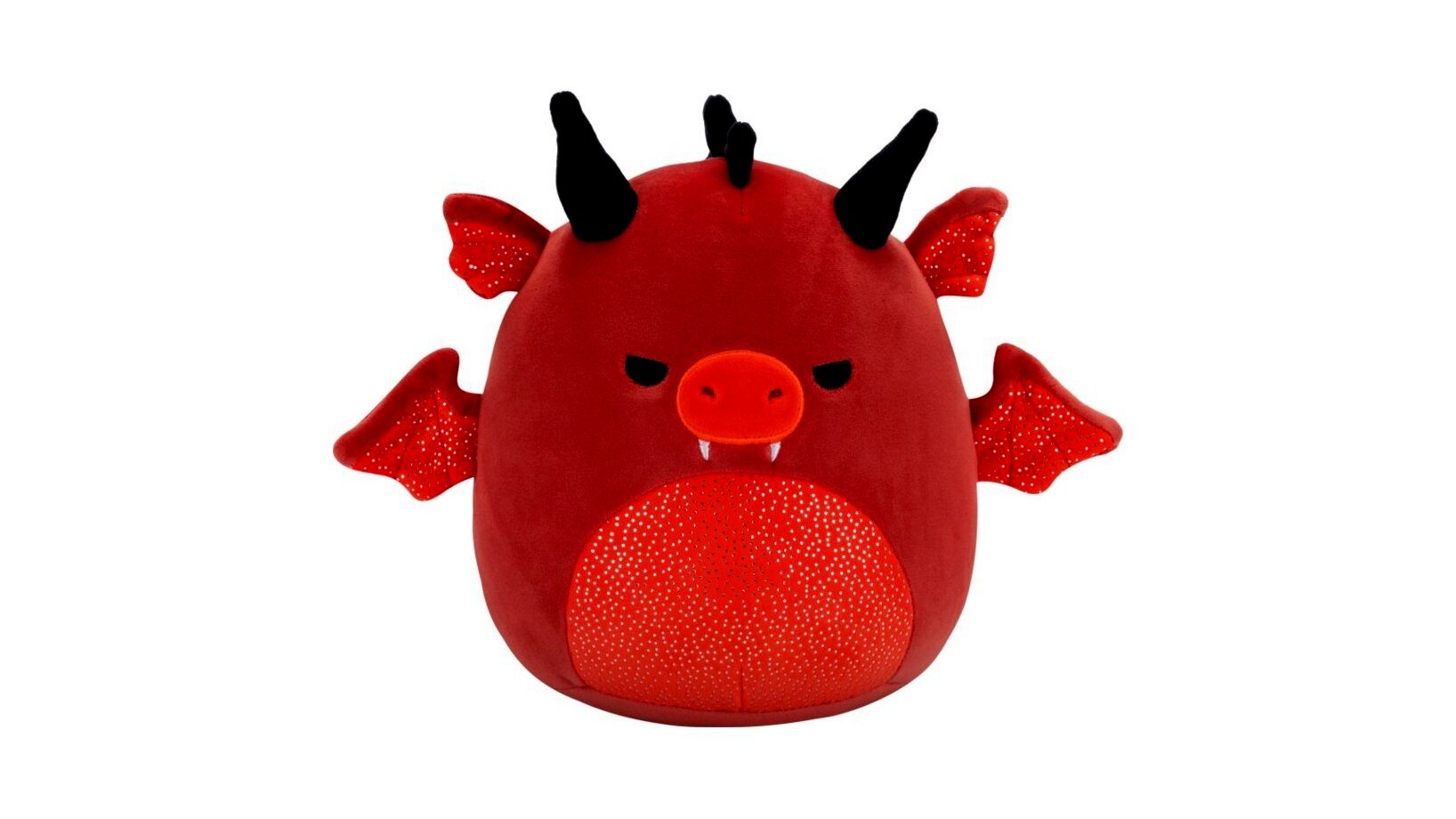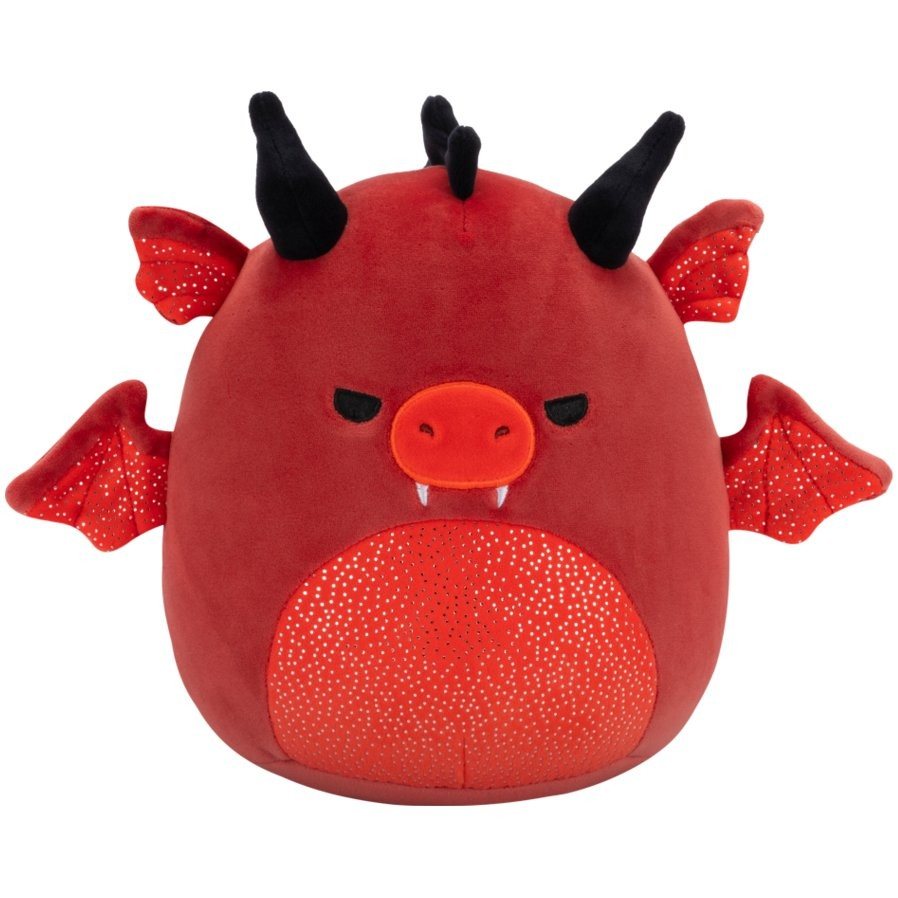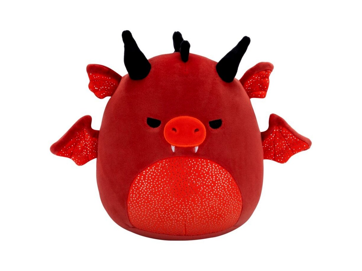 Squishmallows, Salami a piros sárkány, mérges szemekkel és csillogós hassal, 20 cm