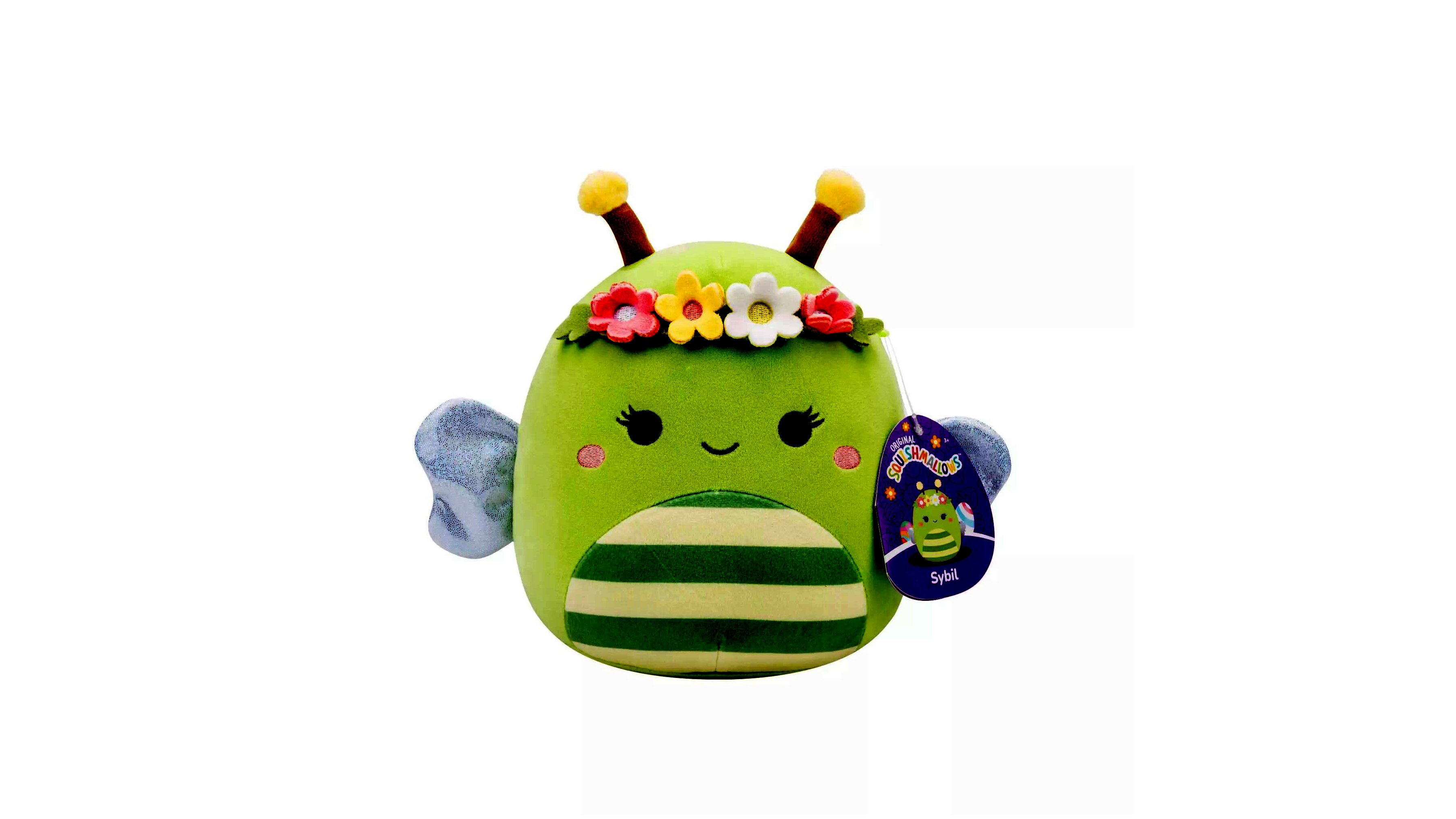 Squishmallows, Sybil a zöld méhecske virágkoronával, 20 cm