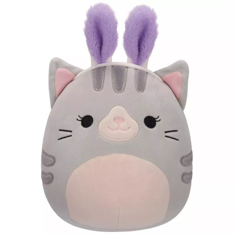 Squishmallows – Tally szürke cica plüss nyuszifülekkel, 20 cm