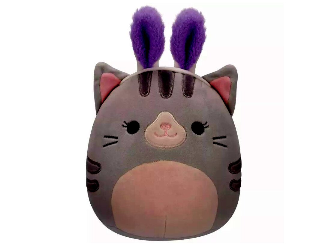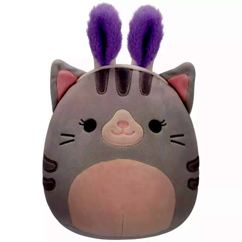 Squishmallows, Tally a szürke cica plüss nyuszifülekkel, 20 cm