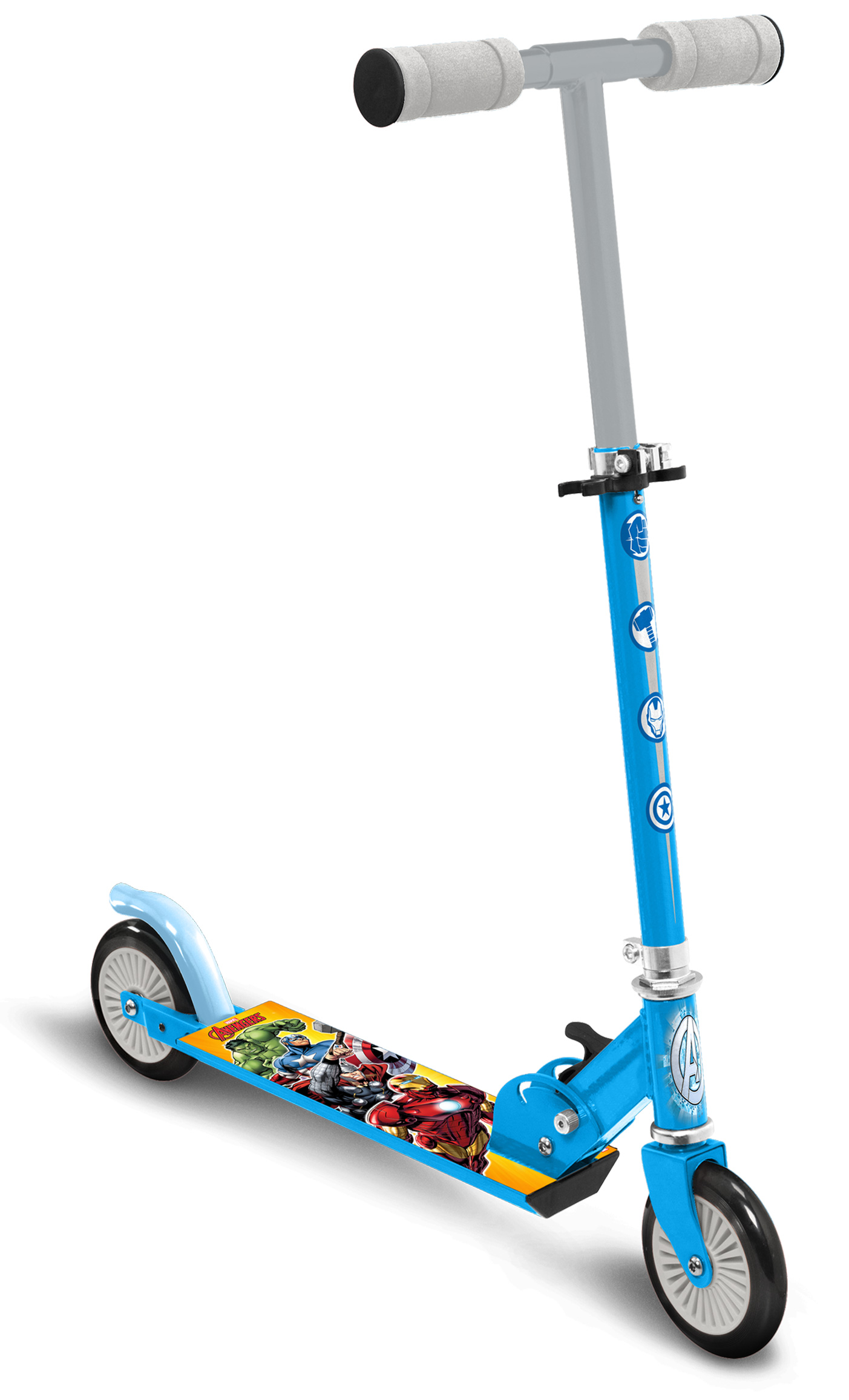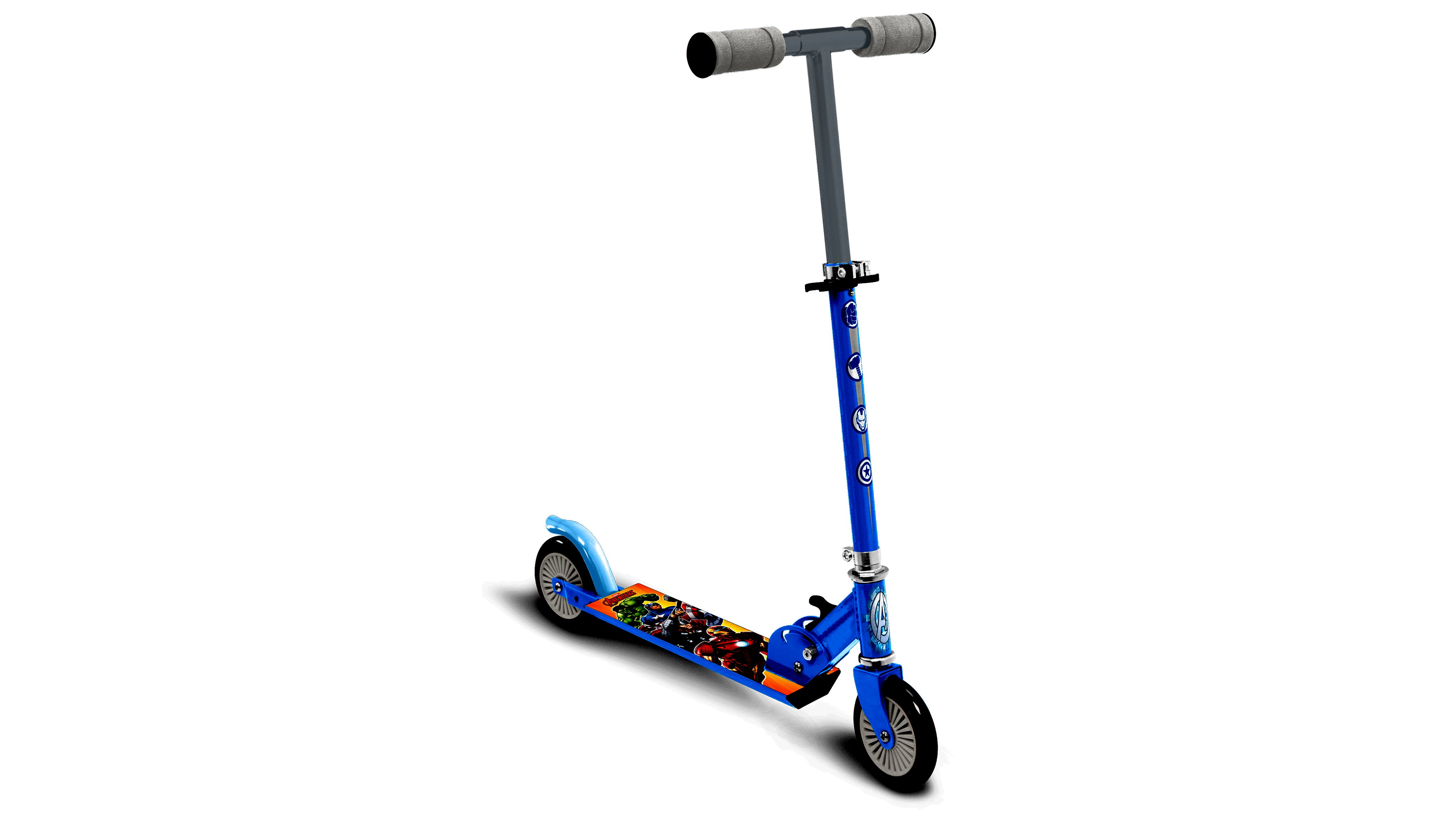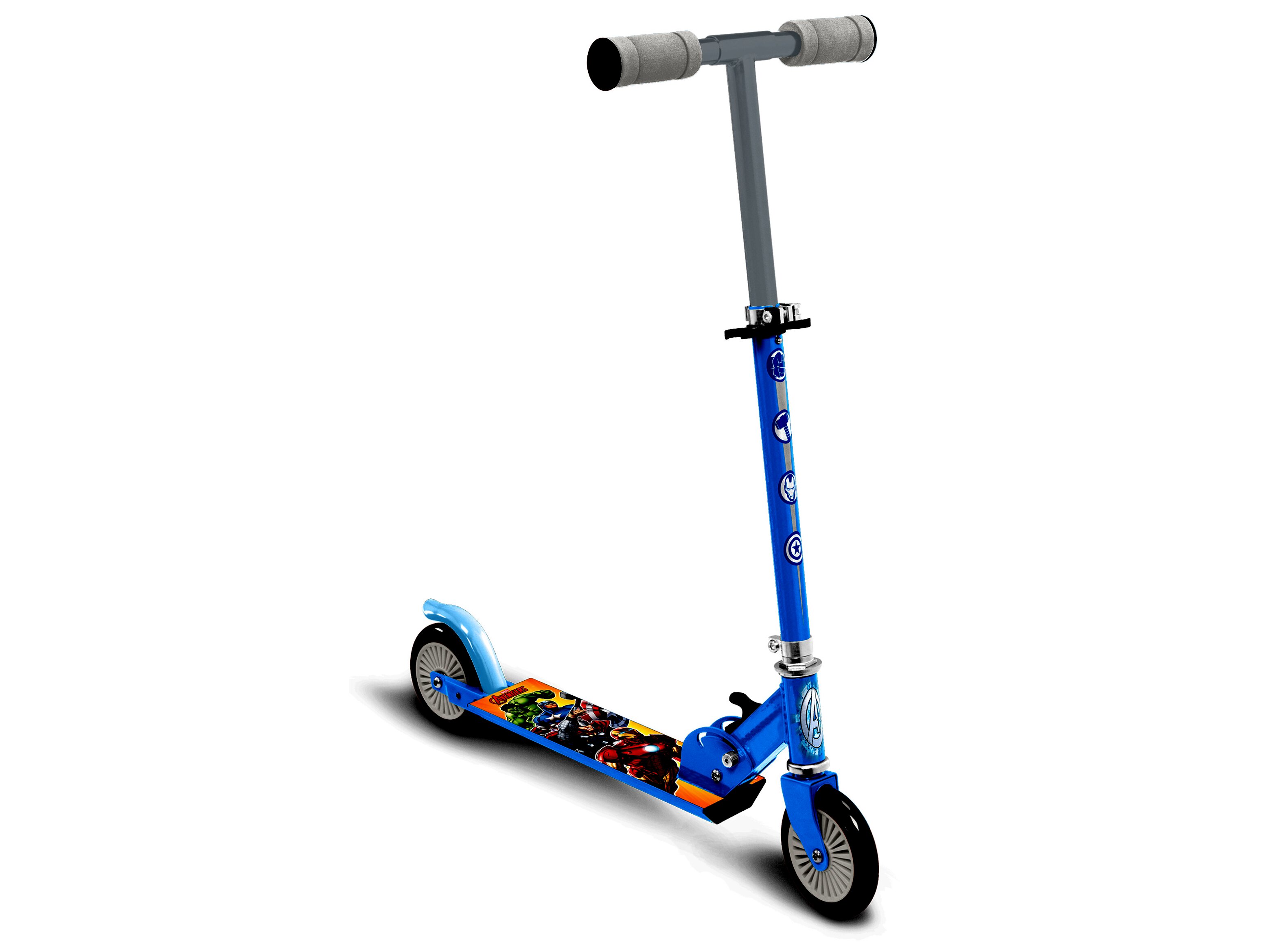 A Stamp Bosszúállók mintás összecsukható roller praktikus választás mindennapi guruláshoz és játékhoz. A csúszásgátló lábrészen Hulk, Vasember, Amerika kapitány és Thor grafikája látható, a lábfék pedig egyszerű, jól kontrollálható megállást tesz lehetővé.