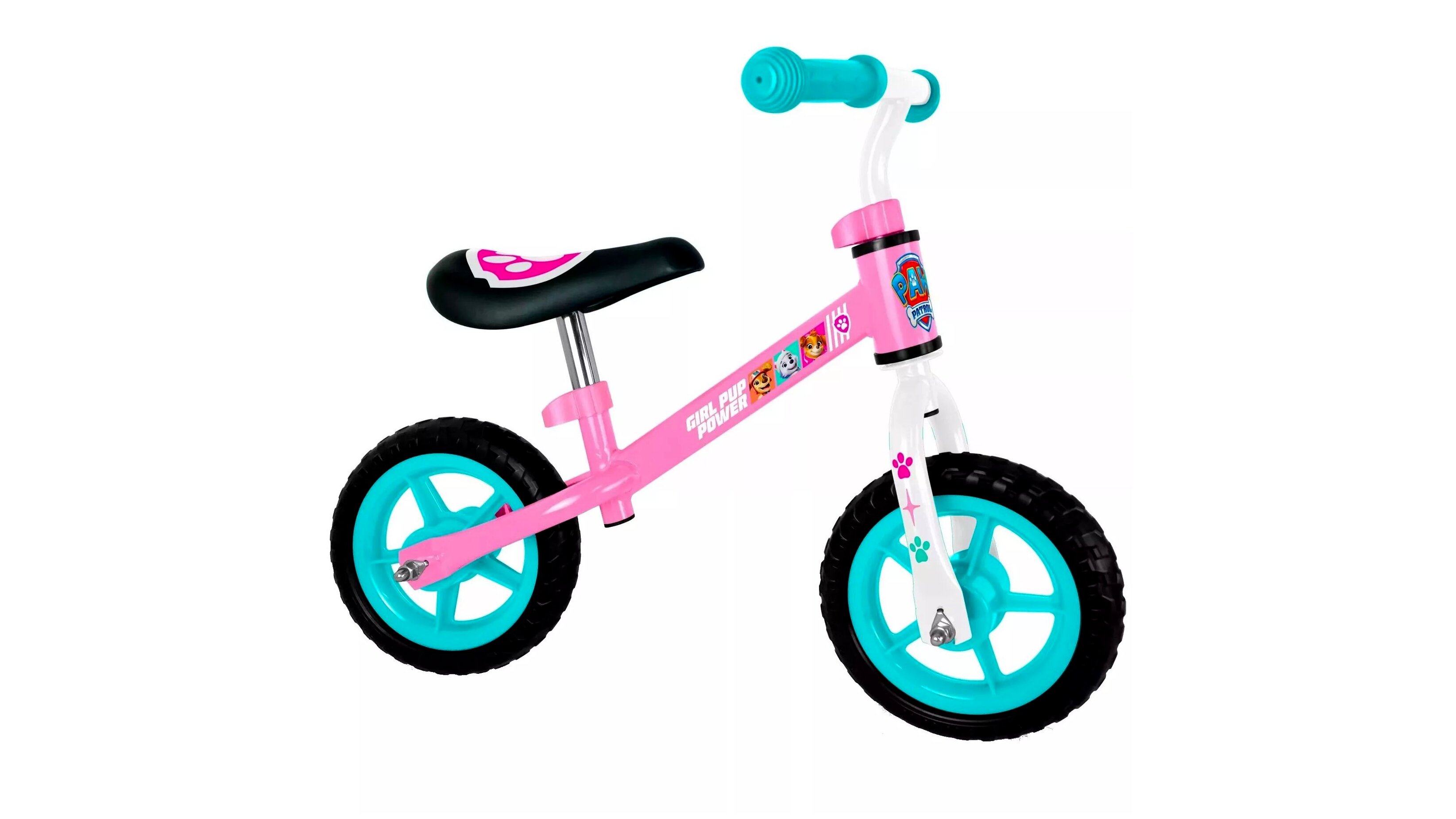 Ez a pink, Mancs őrjárat mintás Stamp futóbicikli jó választás azoknak a gyerekeknek, akik játékosan szeretnének felkészülni a kerékpározásra, miközben a kényelmes fogás és ülés a mindennapi használatot is megkönnyíti.