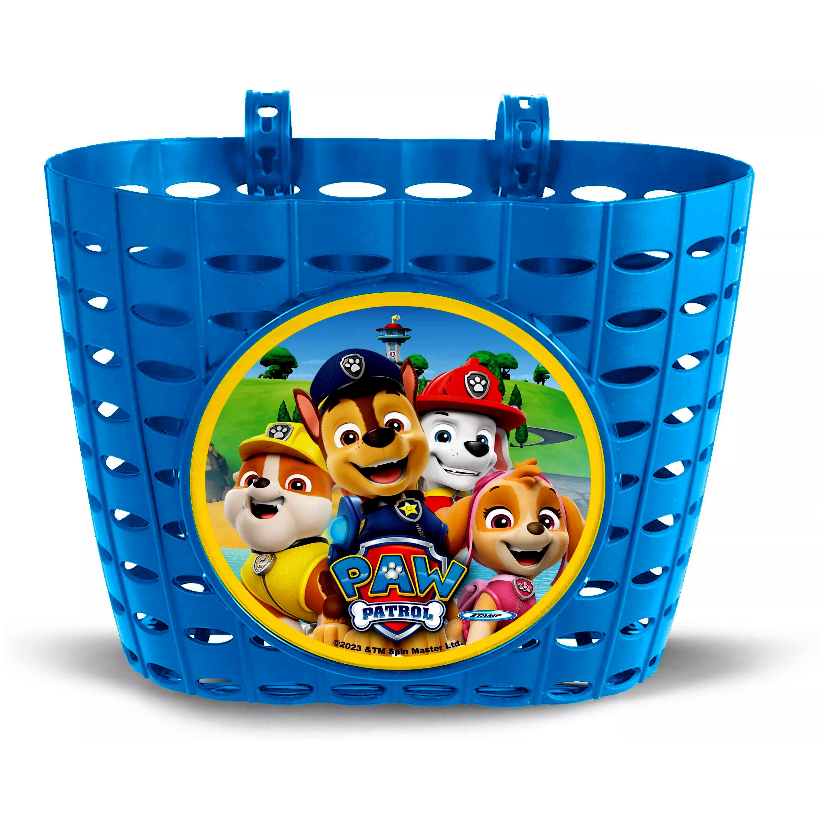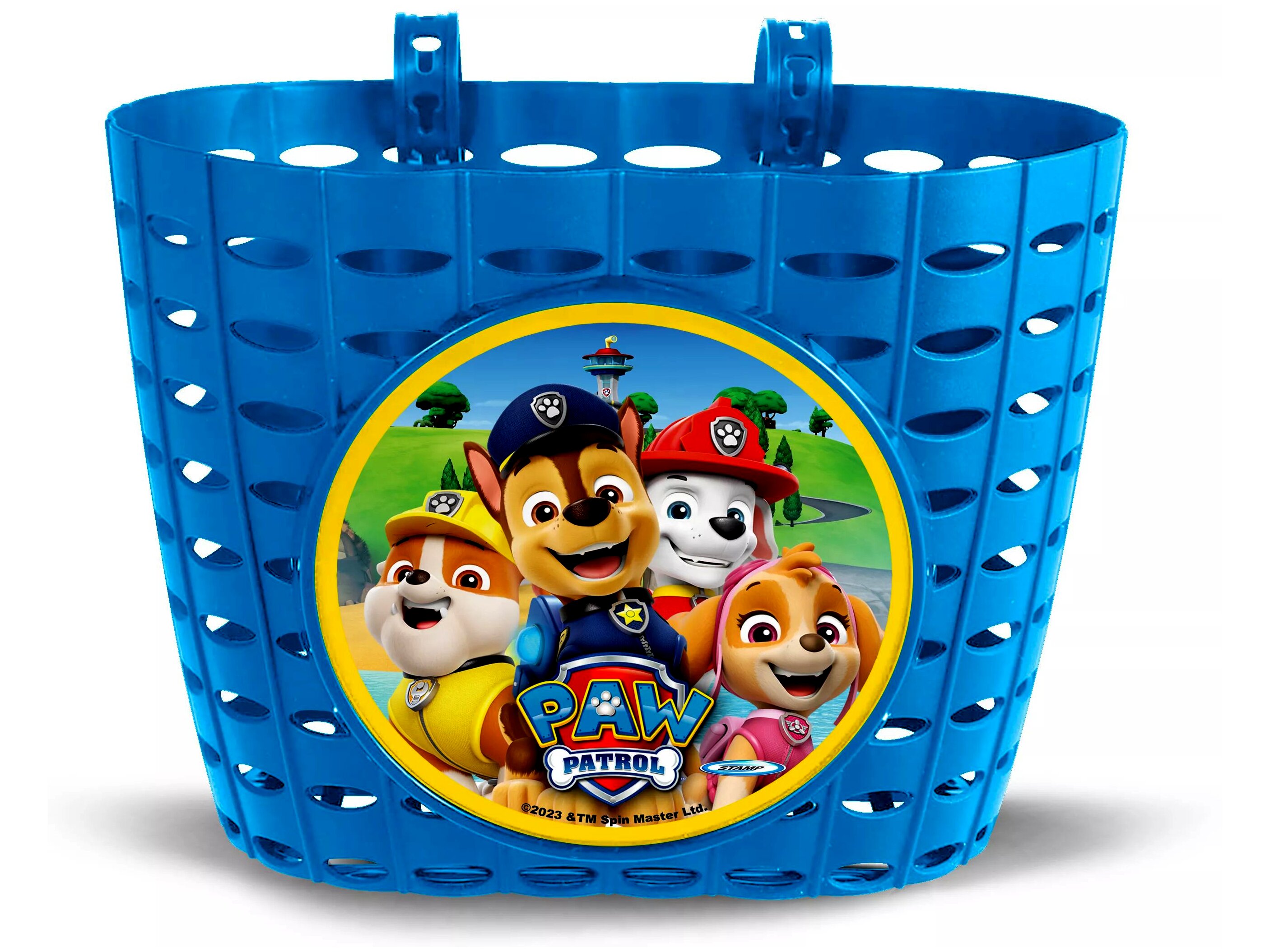 A Stamp Mancs őrjárat mintájú biciklikosár praktikus megoldás a gyerekeknek, ha a bringázás közben szeretnék magukkal vinni az apró kincseiket, kedvenc játékukat vagy más kis holmikat. Az állítható pánttal a legtöbb gyermekkerékpárra stabilan rögzíthető.