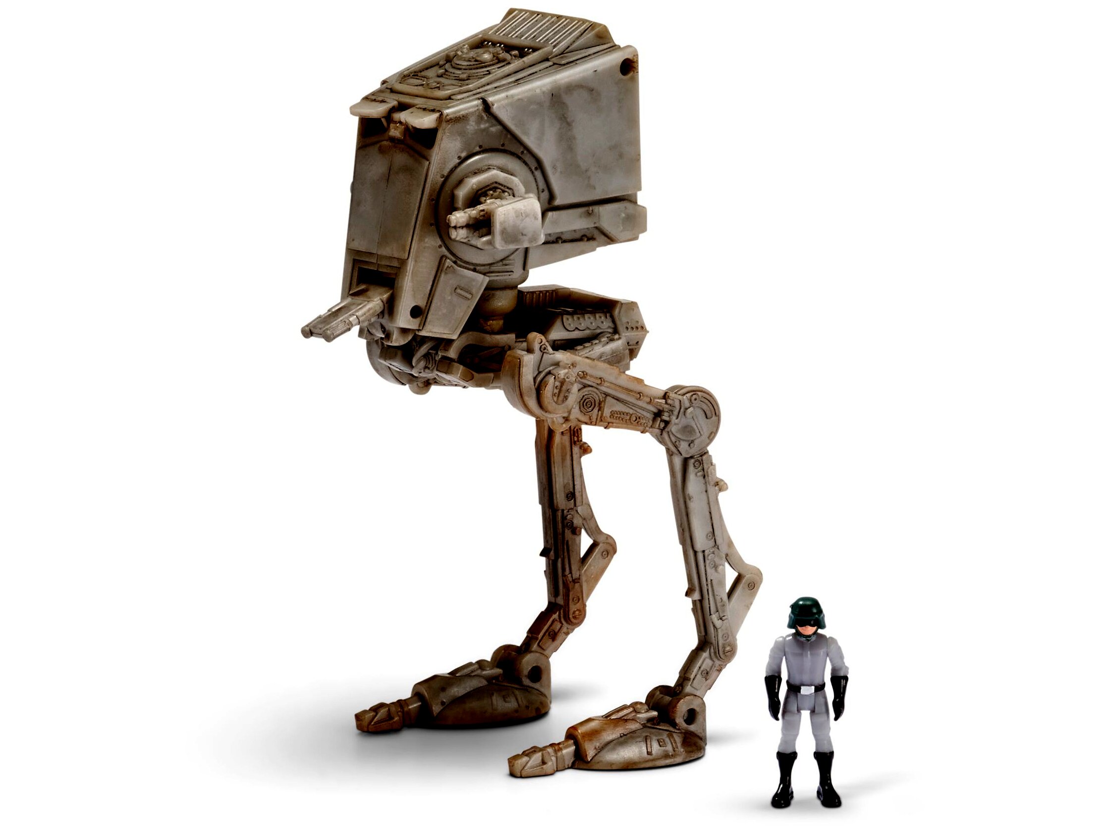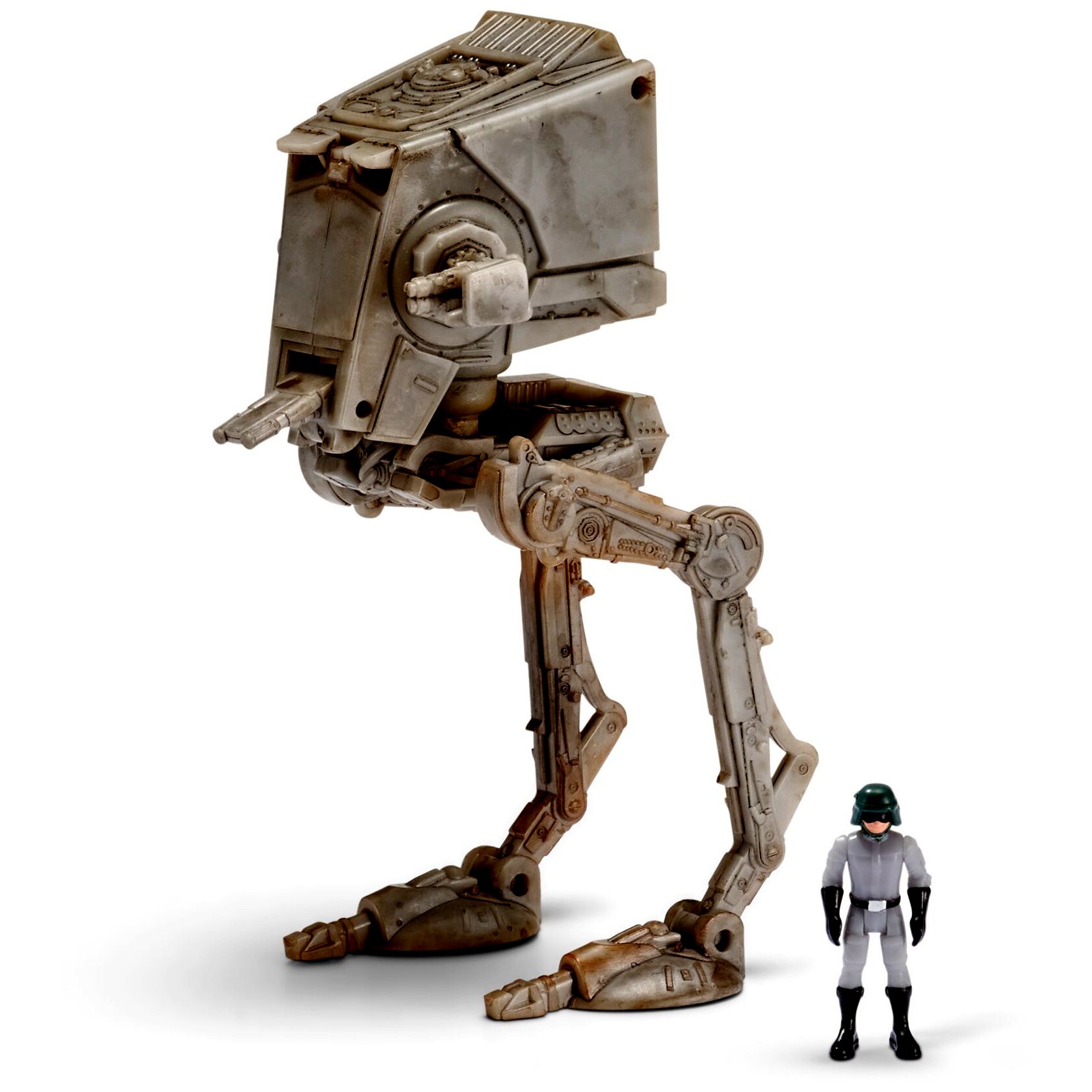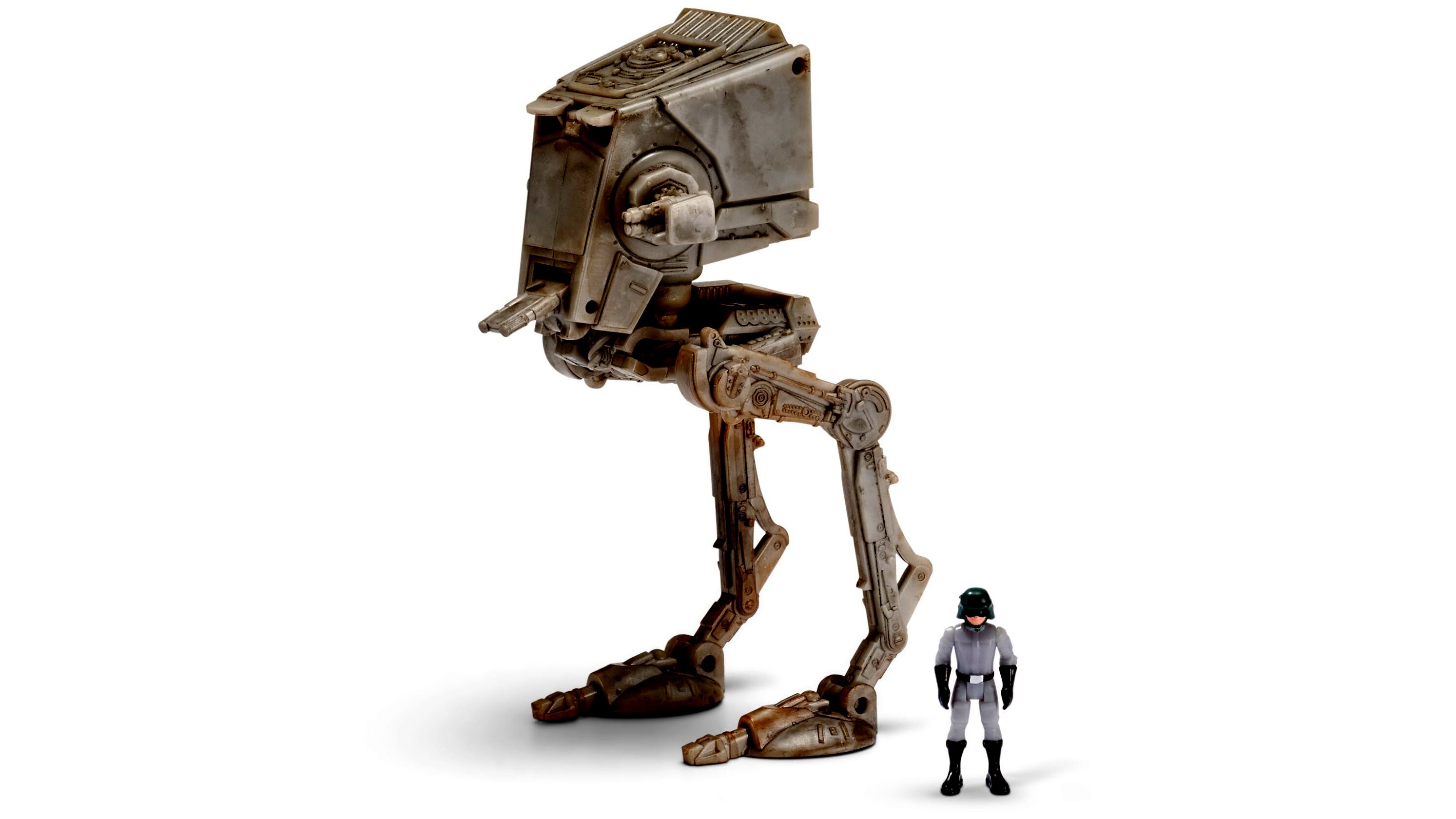 A jármű a csatához pozíciónálható ágyúkkal, aknavetővel, forgatható fejjel, nyitható pilótafülkével és csuklós lábakkal rendelkezik. Ezenkívül tartozik hozzá még egy 2,5 cm magas AT-ST Driver figura is.