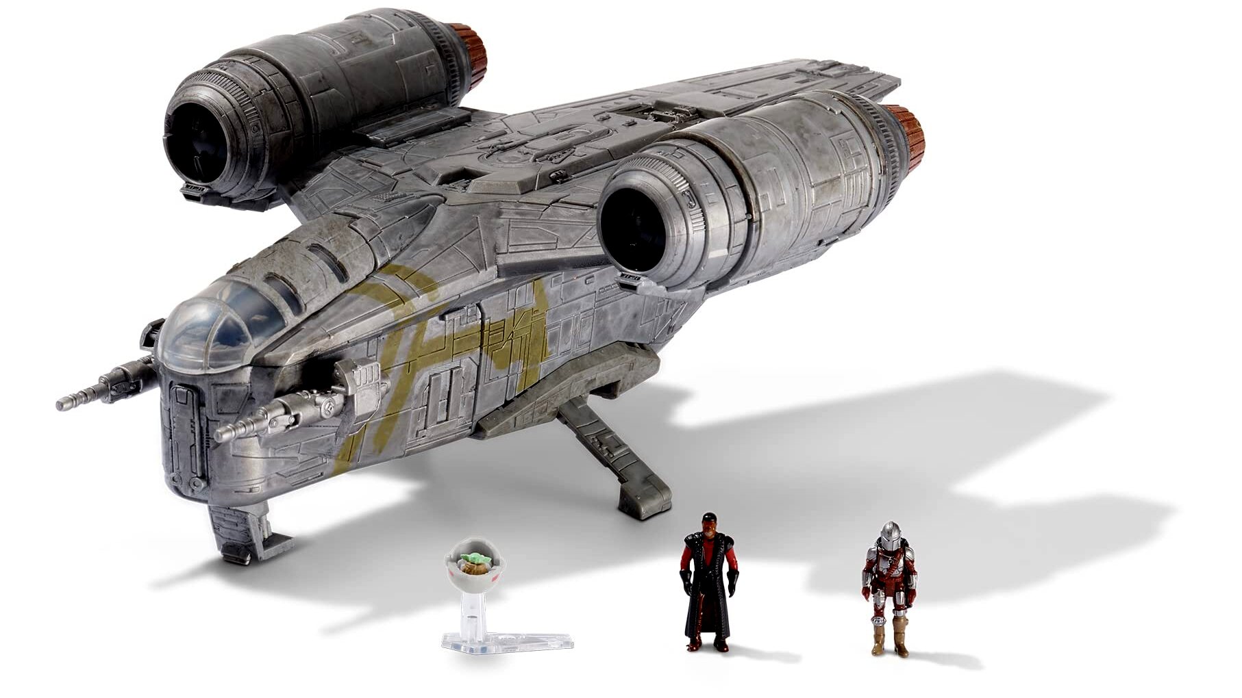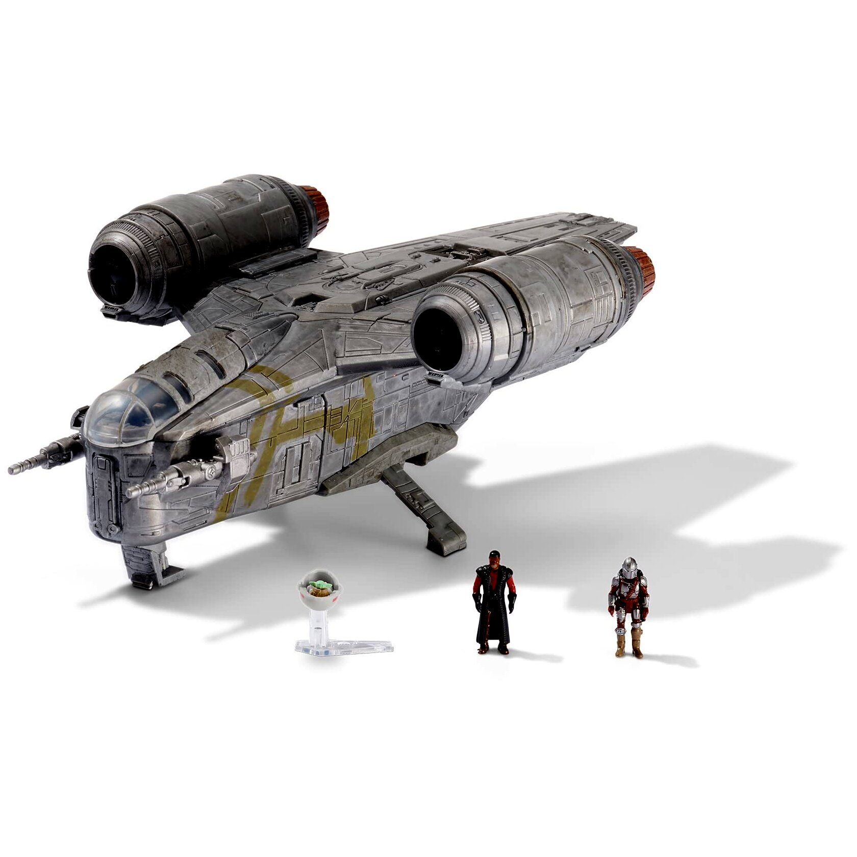 Star Wars, Csillagok háborúja Razor Crest csatahajó, Mandalorian, Greef Karga és Baby Yoda figurával