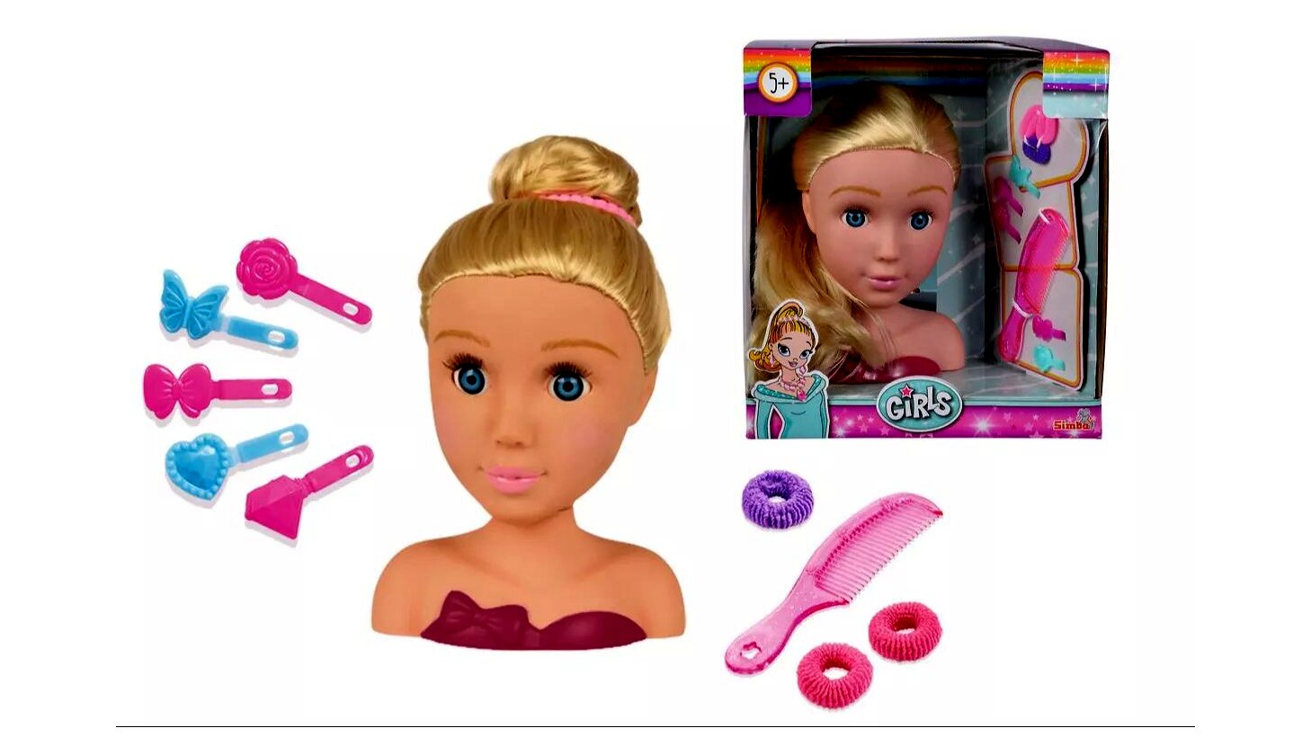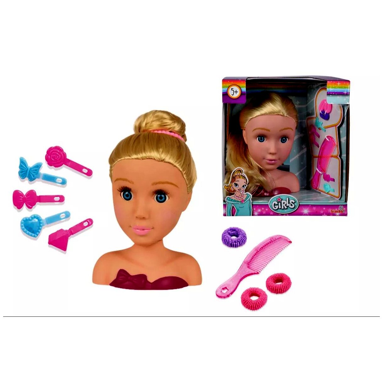 A Steffi Love kozmetikai babafej ideális választás a fiatal kozmetikusok és fodrászok számára, akik szeretnék kipróbálni és fejleszteni sminkelési és hajformázási képességeiket. A gyakorló babafejen a kislányok elsajátíthatják a sminkelés és hajformázás alapjait, miközben kreativitásukat is kibontakoztathatják.A babafej arca kifesthető, így a gyerekek gyakorolhatják a szem, száj és arc sminkelését. A hosszú, szőke haj könnyen fésülhető és formázható, lehetőséget adva különböző frizurák elkészítésére.
