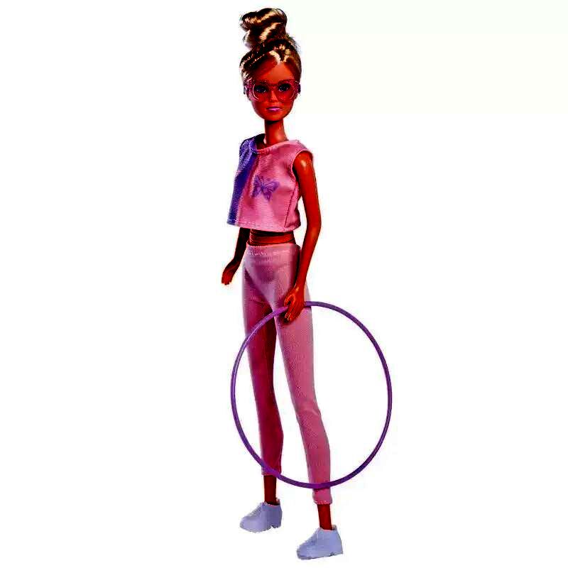 Steffi nem csak divatos de igazán sportos is, és nagyon szeret hula-hoop karikázni. Ez a baba egy csinos tornaszettben érkezik, kezében hula hoop karikával már készen is áll az edzésre. A derekára rácsatolható a hula-hoop karika, így fantasztikus karikázásba tud kezdeni. A trendi megjelenéséből nem maradhat ki a divatszemüveg, ami teljessé teszi a kinézetét.A játék lehetőséget teremt a szerepjátékra, amely során fejlődik a gyerekek képzelete, fantáziája, kreativitása és kommunikációja.