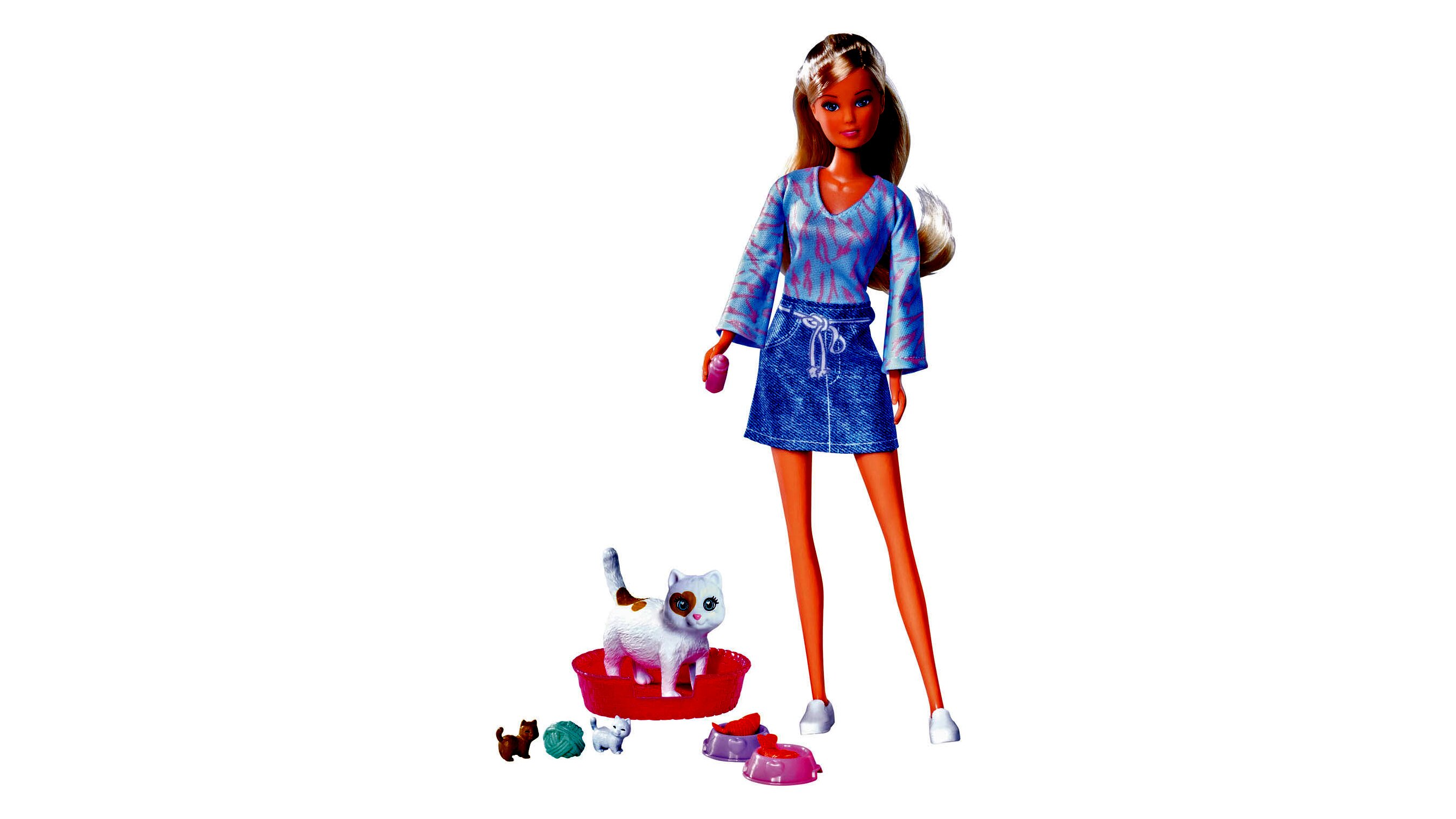 Steffi Love-nak feltűnt, hogy kiskedvence nem ment haza éjjel, azonban csak hetekkel később tudta meg, miért nem. Az állatorvos hamar kiderítette, hogy a cica anyai örömök elé néz, Steffi pedig határtalan örömmel fogadta a hírt. Be is vásárolt a hamarosan érkező kiscicáknak: a szettben található két etetőtál eledellel, cumisüveg, gombolyag és persze Steffi macskája, akinek pocakjában két pici cica lakik, hogy a gyerekek eljátszhassák az élet születésének csodáját. Cicakalandokra fel! Miaú!Steffi, mint mindig, divatos ruhát visel, és alig várja, hogy bővüljön a cicacsalád.