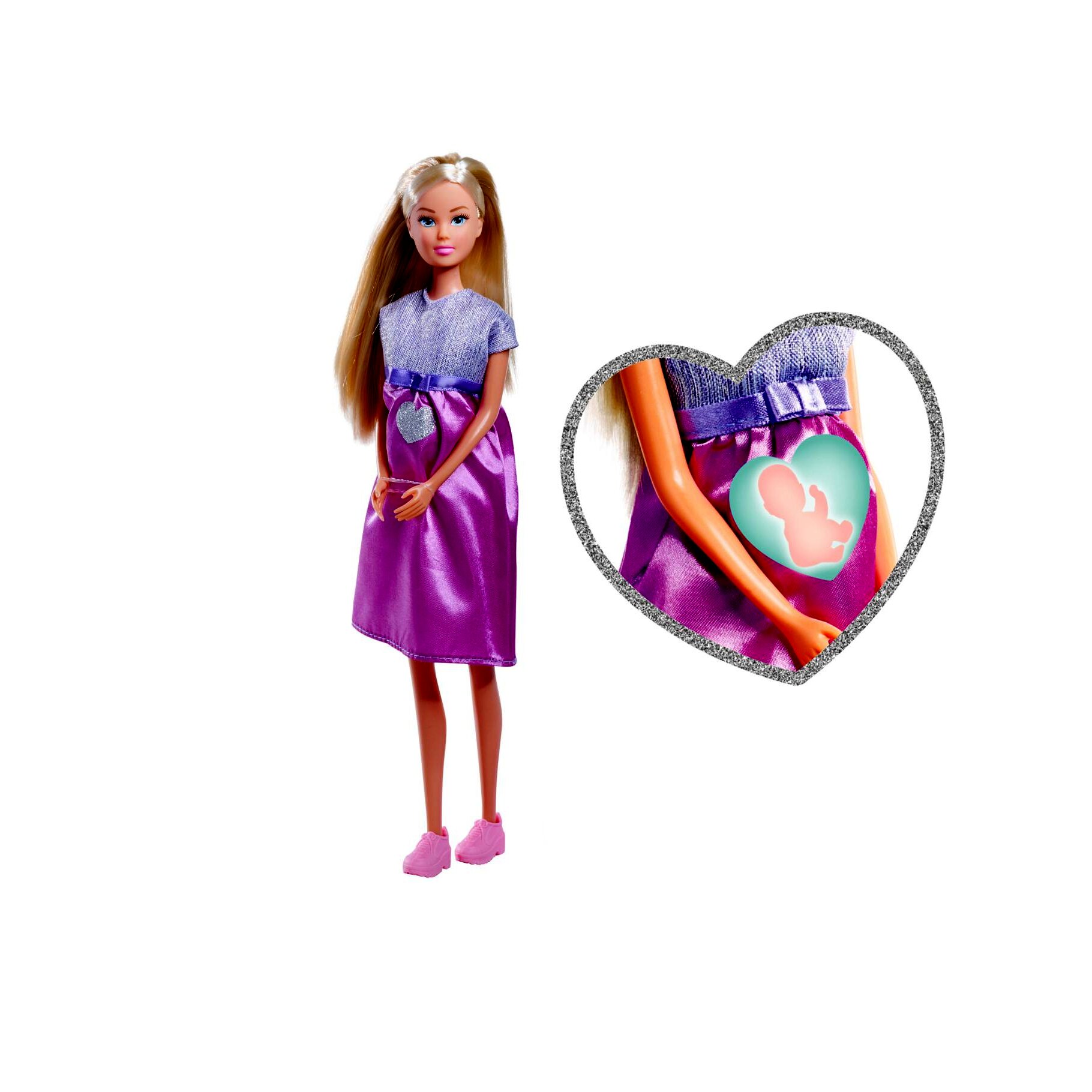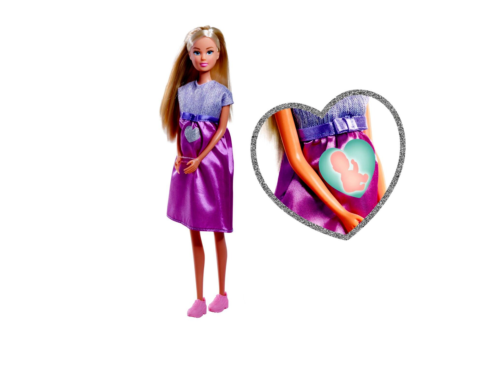 A Steffi Love terhes baba készlet egy 29 cm-es játékbaba és újszülött gondozásához kapcsolódó kiegészítők együttese. A levehető pocak segítségével a „babaszületés” eljátszható, a mindennapi gondoskodást pedig a mellékelt apró kellékek teszik változatossá.